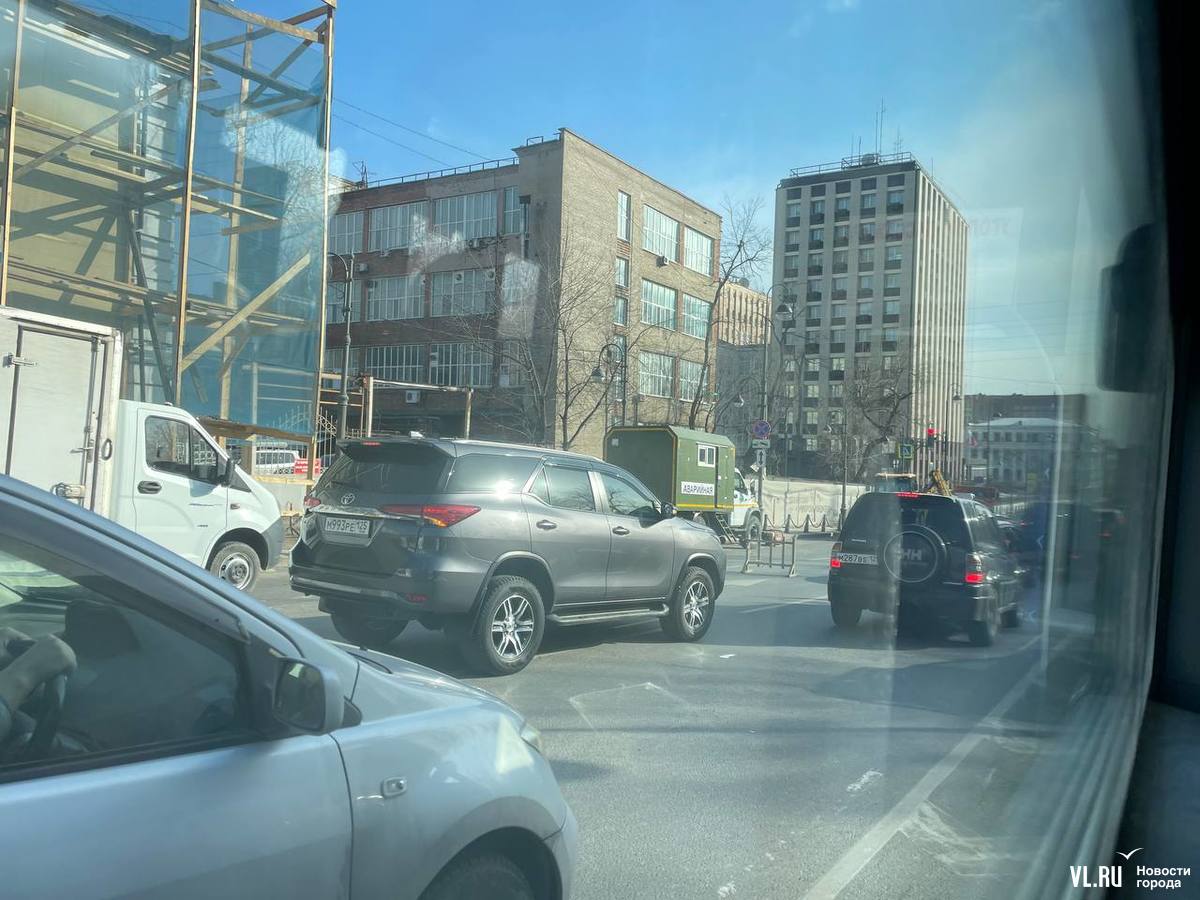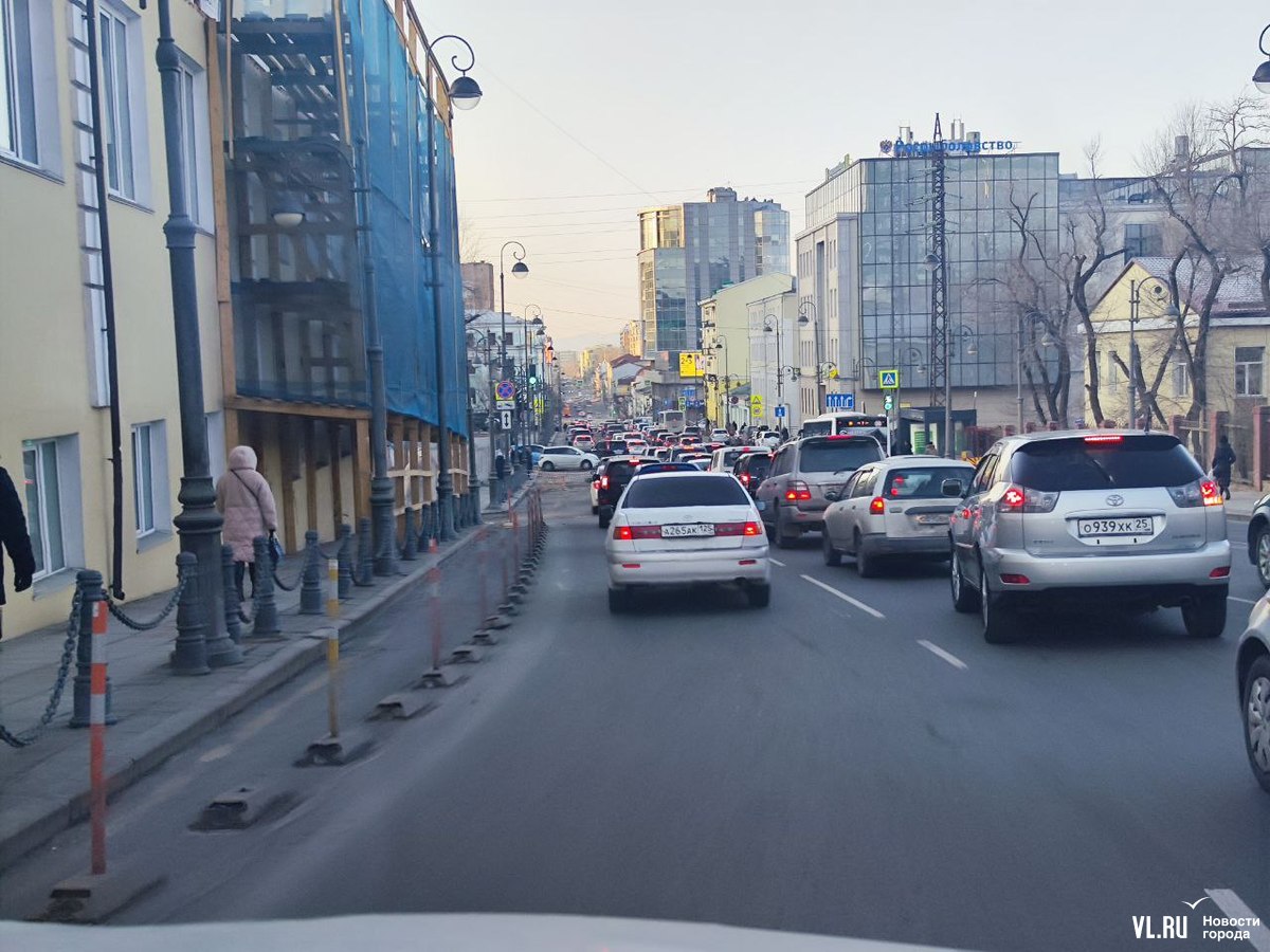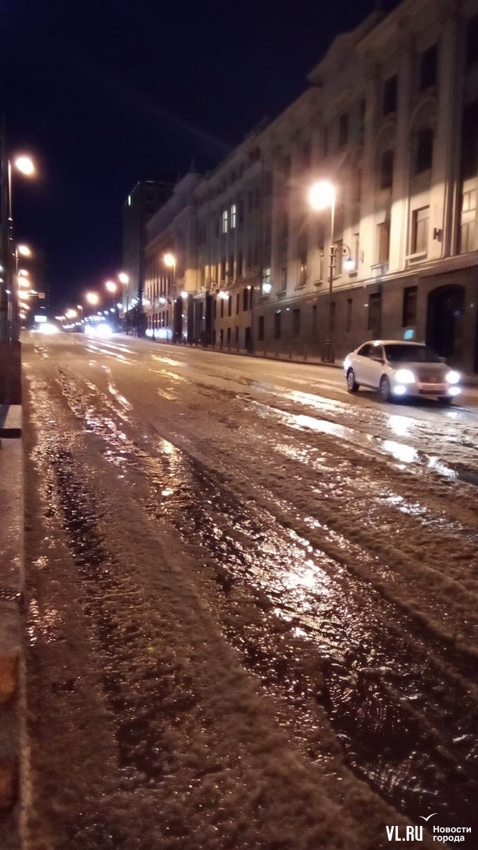 Ещё ночью вода залила всю Алеутскую от «Крайбольницы» практически до Семёновской. С утра службы убирали последствия прорыва, сгребая ледяную кашу спецтехникой. А ближе к вечеру крайнюю левую полосу возле остановки «Краевая больница» на Алеутской заняла аварийная бригада водоканала. Там работает экскаватор, который вскрывает проезжую часть возле несостоявшегося сквера Приморских кондитеров. Из-за этого даже в воскресный вечер собралась пробка от Покровского парка.