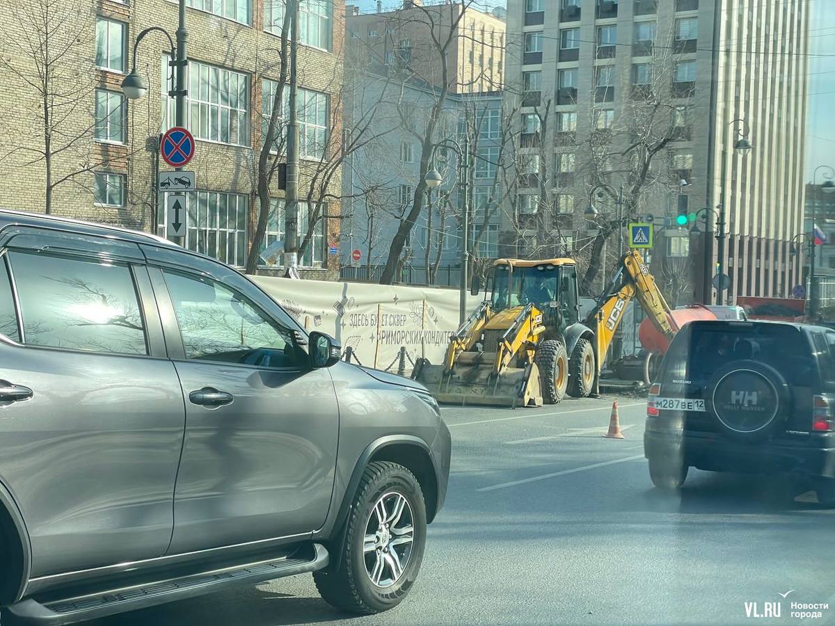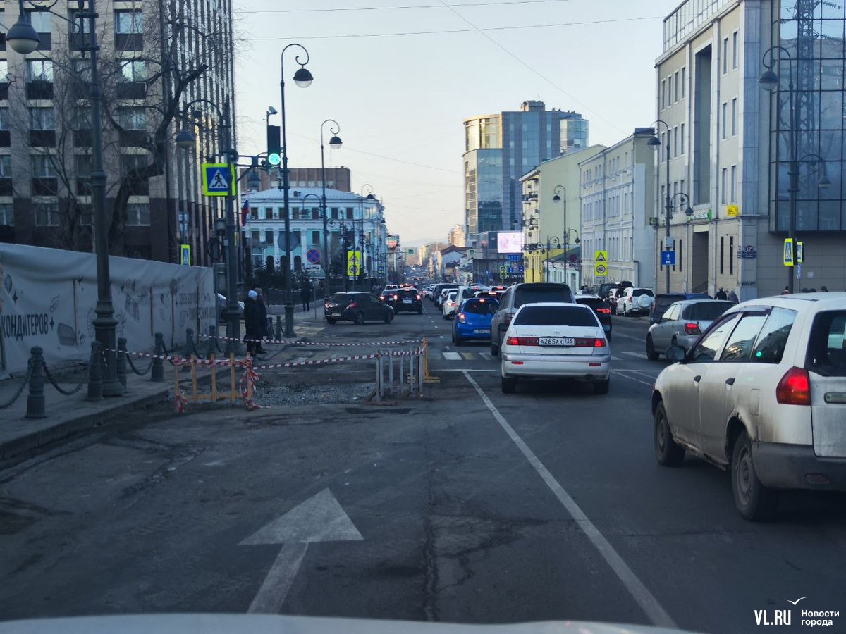 С раннего утра как минимум в 20 домах в центре Владивостока отсутствует водоснабжение. На Алеутской ночью произошла авария на сетях водоканала. С утра тяжёлая техника убирала последствия прорыва с проезжей части, а после обеда рабочие начали вскрывать асфальт у несостоявшегося сквера Приморских кондитеров. В понедельник движение здесь может быть осложнено.