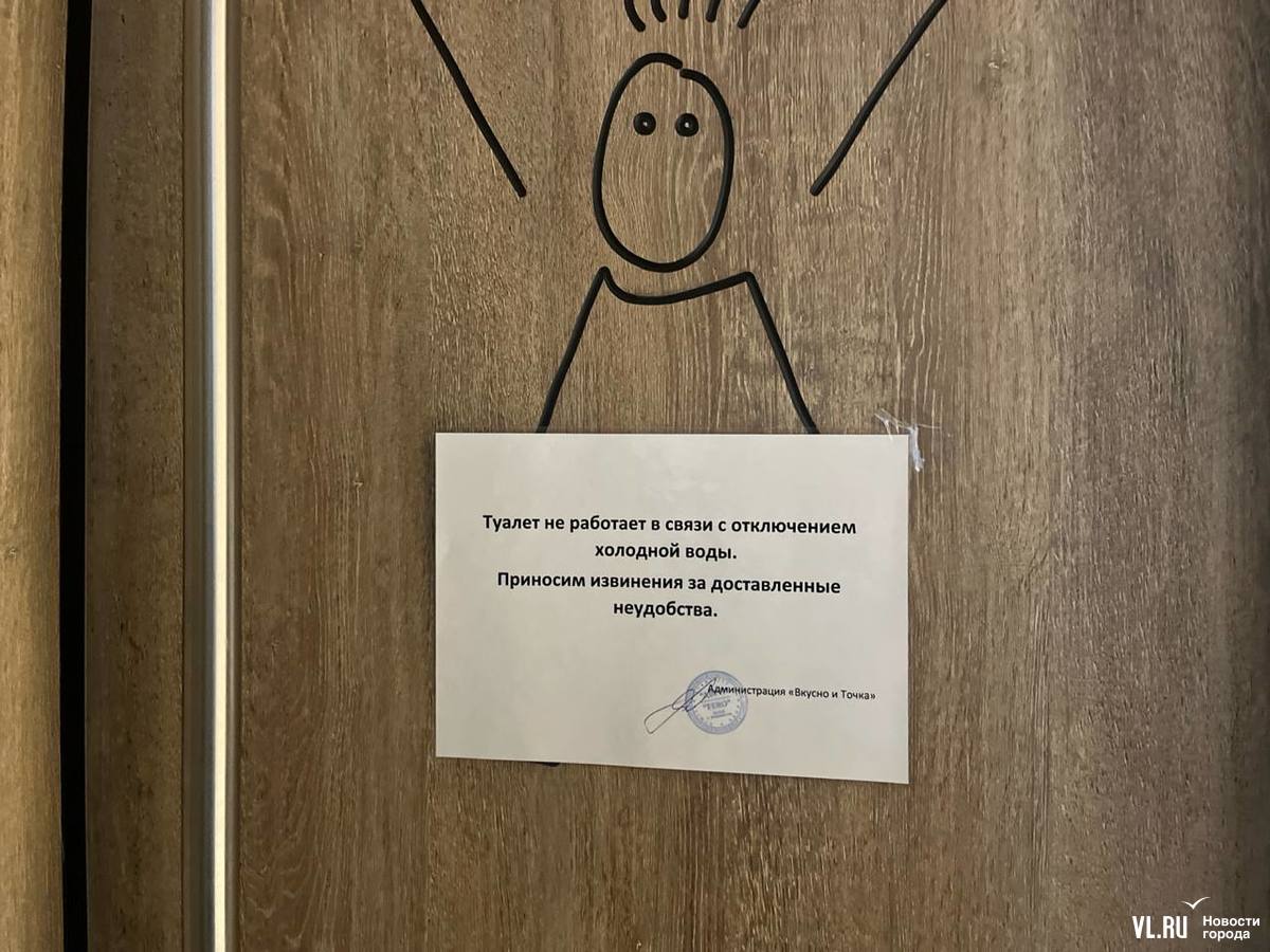 Центр Владивостока сегодня без воды. В «Малом ГУМе» и «Клевер Хаусе» не работают фуд-корты и уборные. Кафе запаслись водой и готовят еду, но санузлы для посетителей закрыты. Водный комплекс «Акватория» сегодня тоже не принимает гостей. При этом в общественных туалетах холодная вода есть.