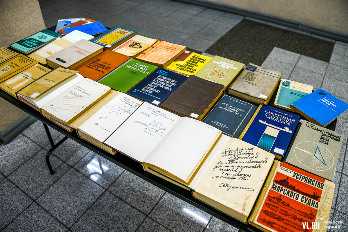 В состав экспонатов включили ещё и книги, среди которых есть очень редкие экземпляры, в обычный день их не полистать. Например, книги с дарственной надписью от первой в мире женщины – капитана дальнего плавания Анны Щетининой. «А ещё это учебники, написанные выпускниками, которые впоследствии стали преподавателями университета, хранящиеся в фонде музея. А также воспоминания курсантов о буднях в вузе, написанные как профессионалами-историками, так и выпускниками, – здесь каждый желающий может прочитать о быте моряков 20 лет назад (отличий было немного). А кроме того, и посмотреть видео о кругосветном путешествии учебного парусника МГУ «Надежда», регатах и событиях из истории», – говорит Марина Каменева про выставку.