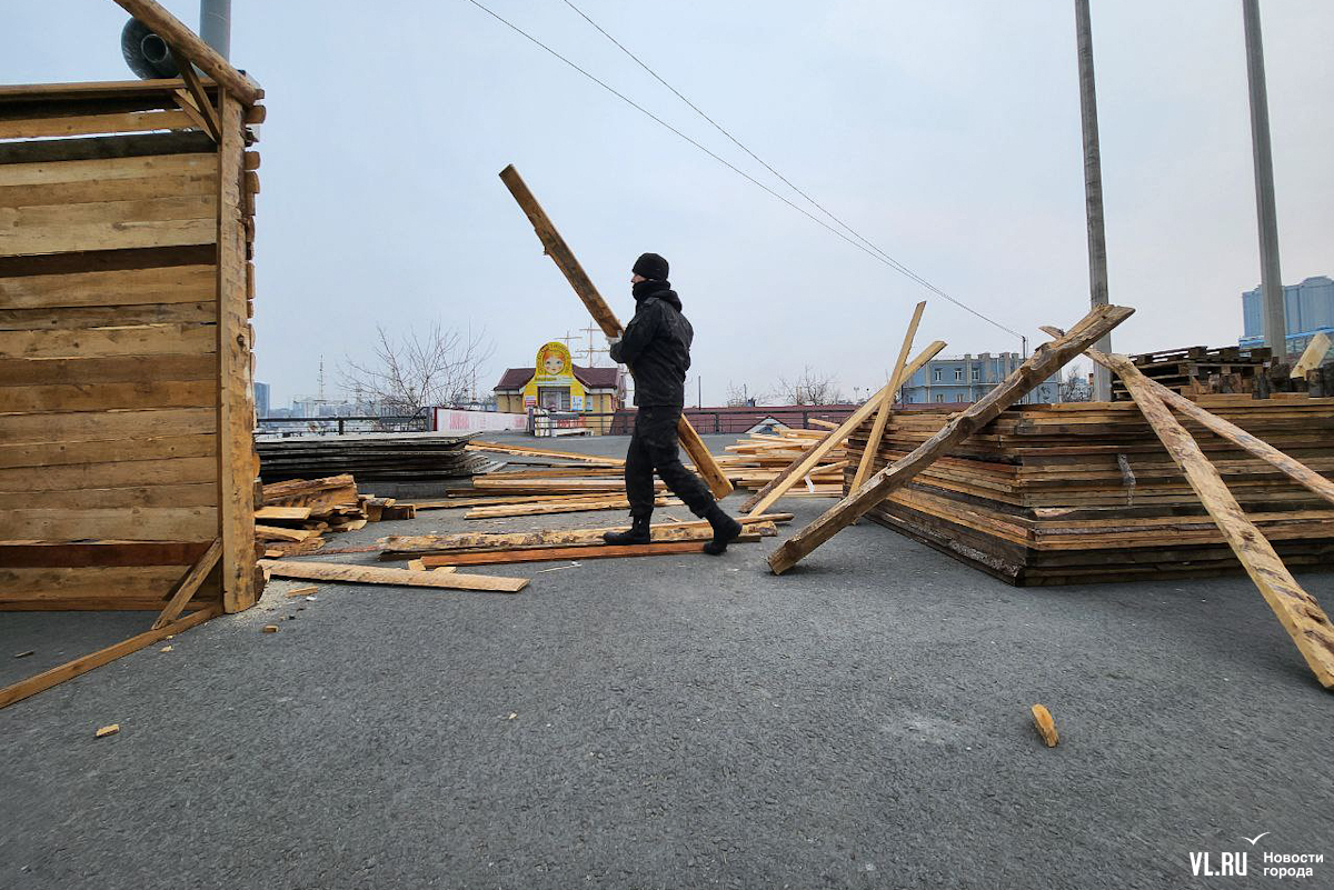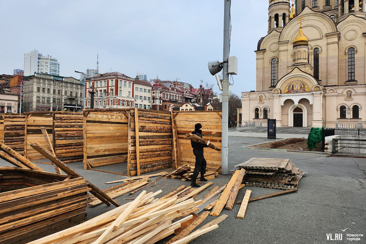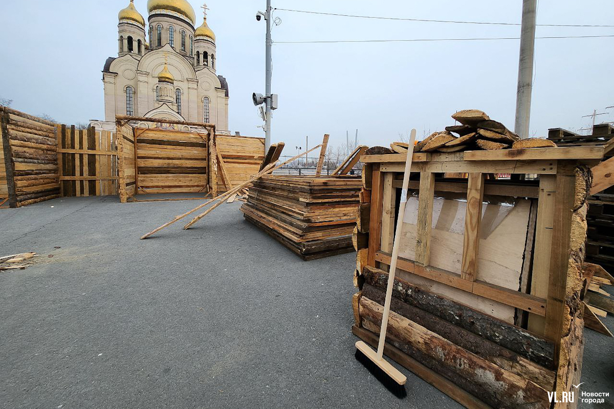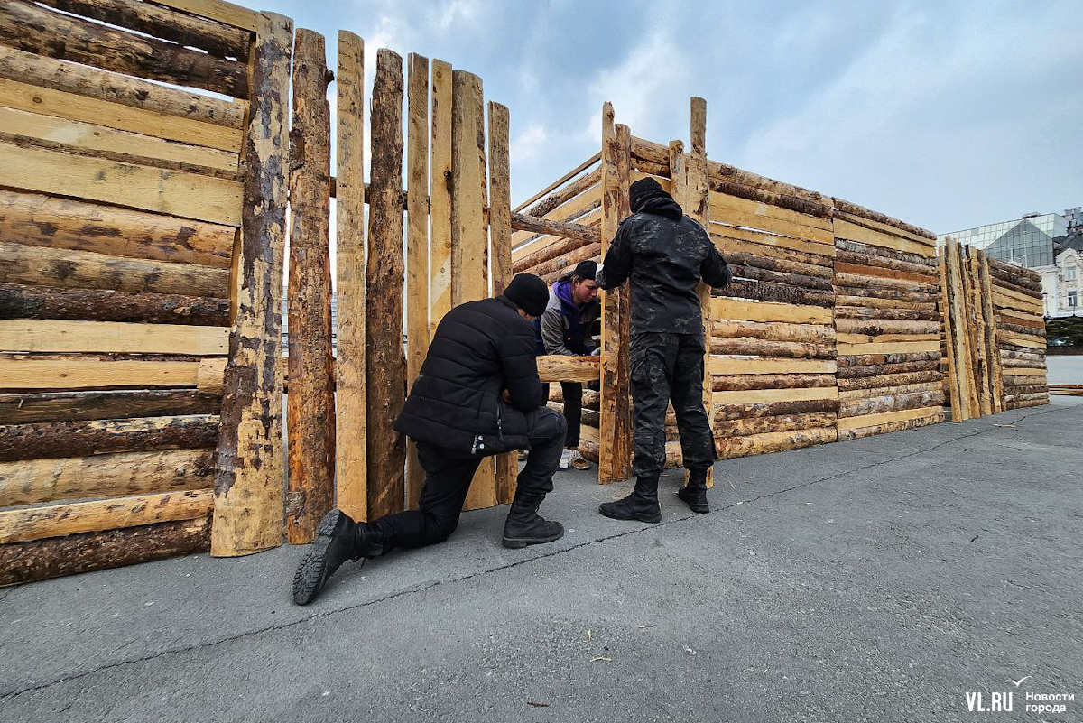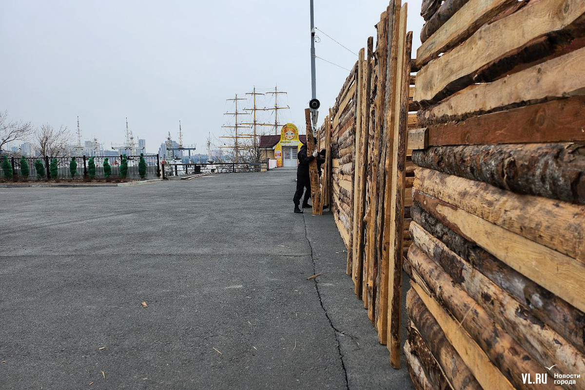 Празднование Масленицы запланировано в различных районах Владивостока, но основные гулянья развернутся на центральной площади 17 марта – сегодня здесь уже строят терема-избушки из досок и горбыля. Работы пока находятся в начальной стадии. Домики появляются по периметру будущей праздничной площадки, где развернутся мастер-классы, весёлые забавы, будут выпекать блины и сжигать чучело.