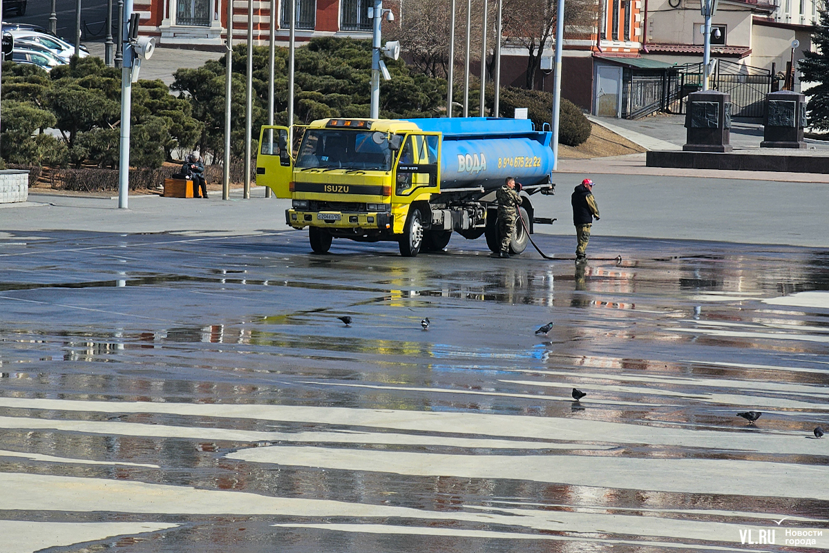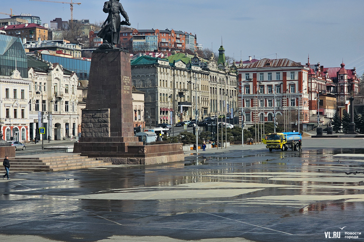 Ранее в пресс-службе администрации Владивостока уточняли, что на центральной площади асфальт имеет пористую структуру, поэтому полностью убрать песок невозможно без применения воды. Для этого ждали установления благоприятной погоды.
