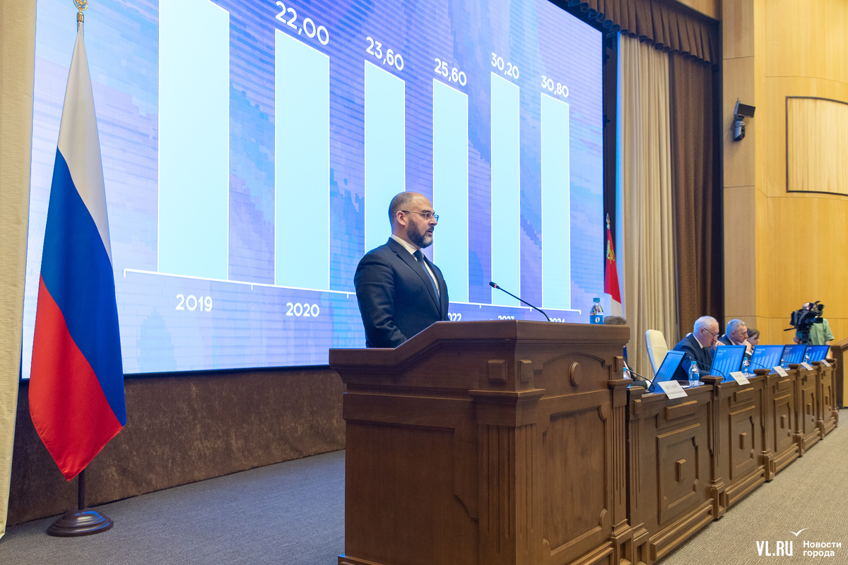 10:23: В декабре прошлого года бюджет Владивостока превысил 30 млрд рублей, напоминает Шестаков. А бюджет этого года уже сейчас побил рекорд и составил 30,7 млрд рублей.