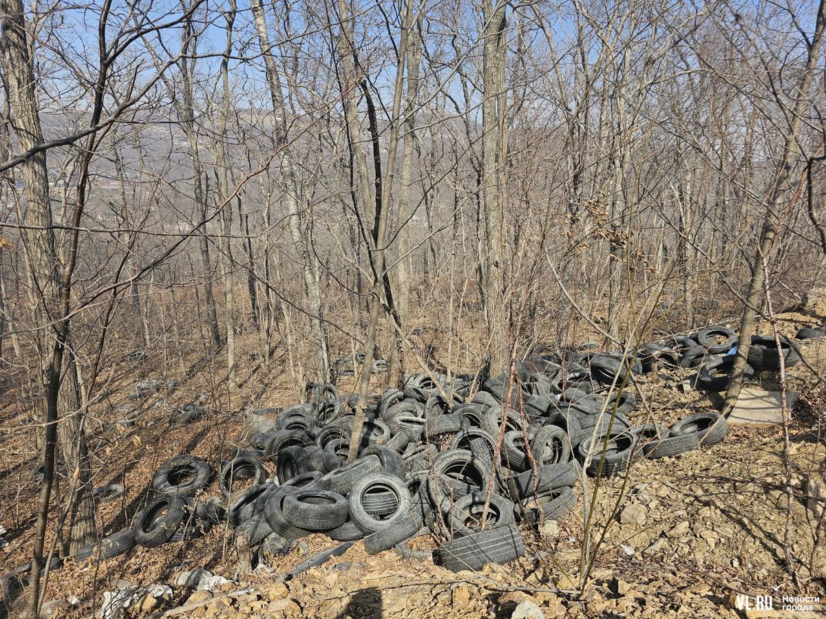 Днём в пятницу, 15 марта, жители Владивостока увидели сильный дым в районе остановки «Дальхимпром» – на сопке выше дороги горит лес. Прибывшие на место пожарные обнаружили огромную свалку автомобильных покрышек, часть которых уже сгорела. Пожар частично потушили, машины поехали заправляться водой. В лесу ещё очень много шин.