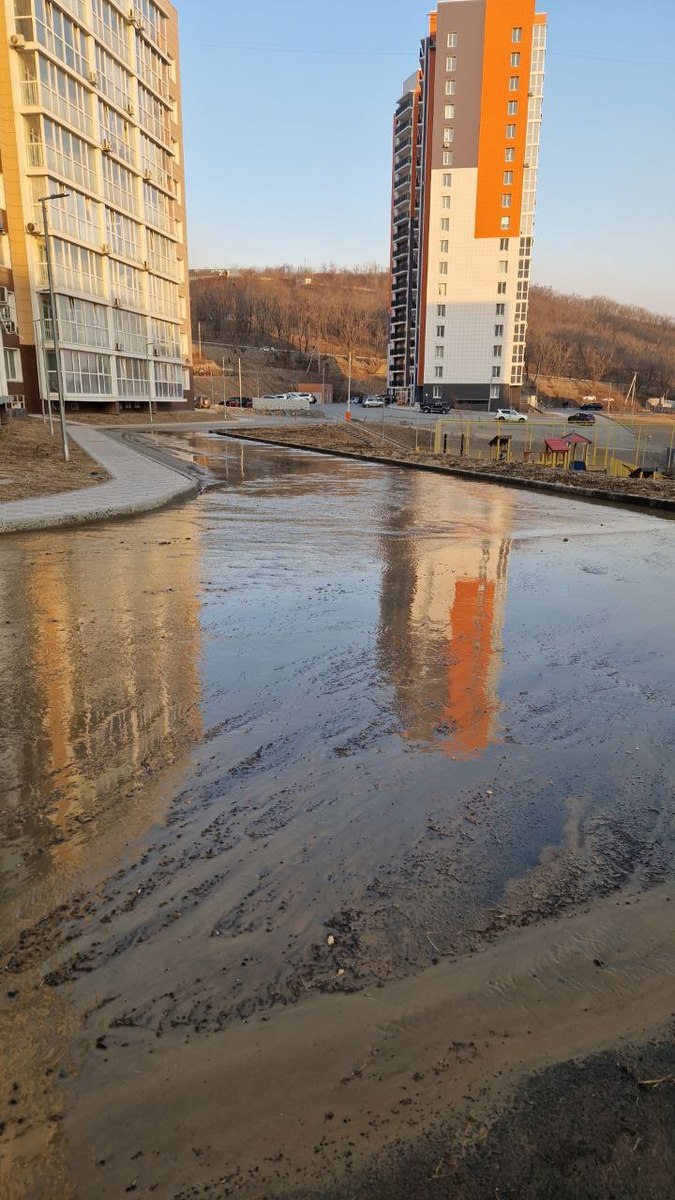 «Произошёл прорыв на линии водопровода. Сети не на балансе у Примводоканала. Аварийная бригада перекрыла линию. Но у нас нет схем по расположению проведённых сетей. Пробуем связаться с застройщиком», – сообщили редакции Новостей VL.ru в Примводоканале.
