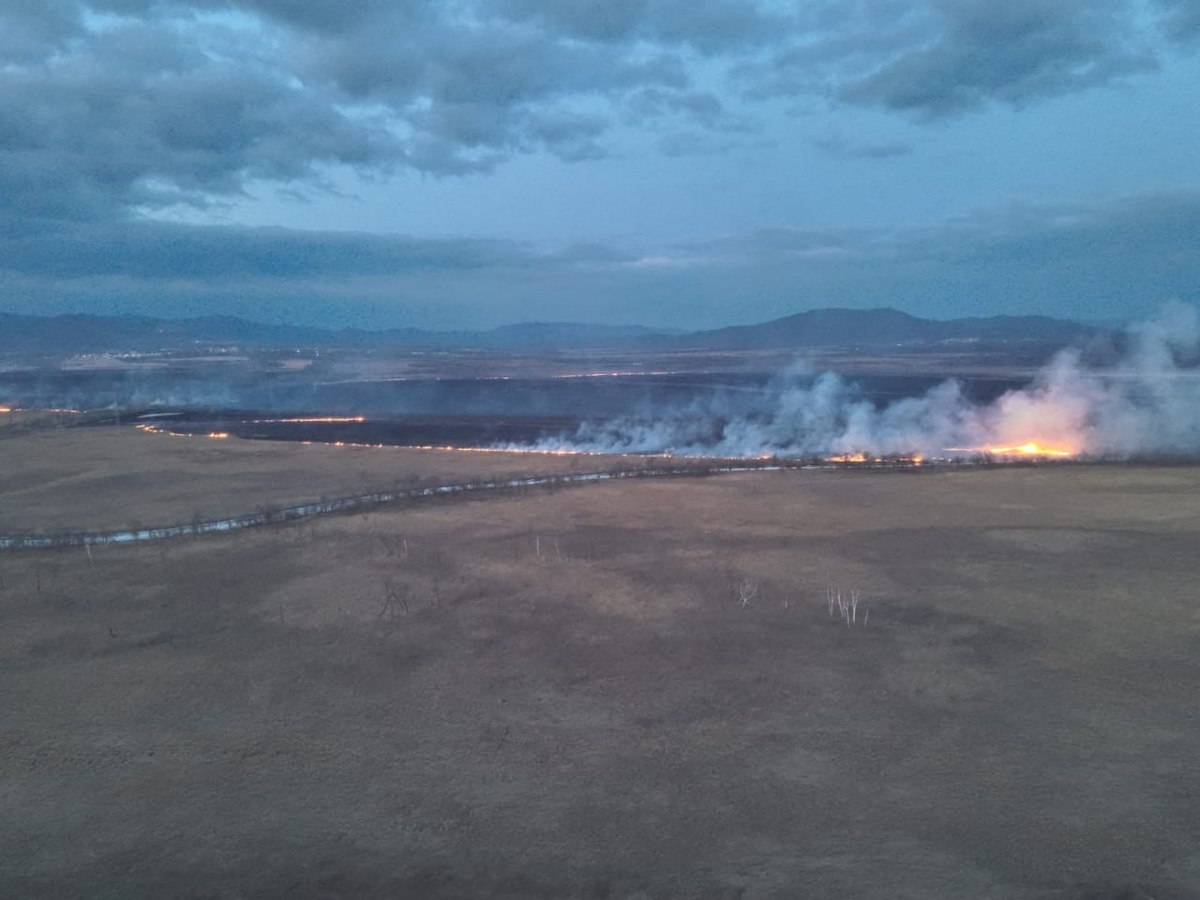 Славянка в Хасанском округе горит со вчерашнего дня. Пал фронтом 15 километров прошёл недалеко от гостиничного комплекса «Тёплое море». А на мысе Гамова сгорели служебные помещения и дом семьи смотрителей маяка.