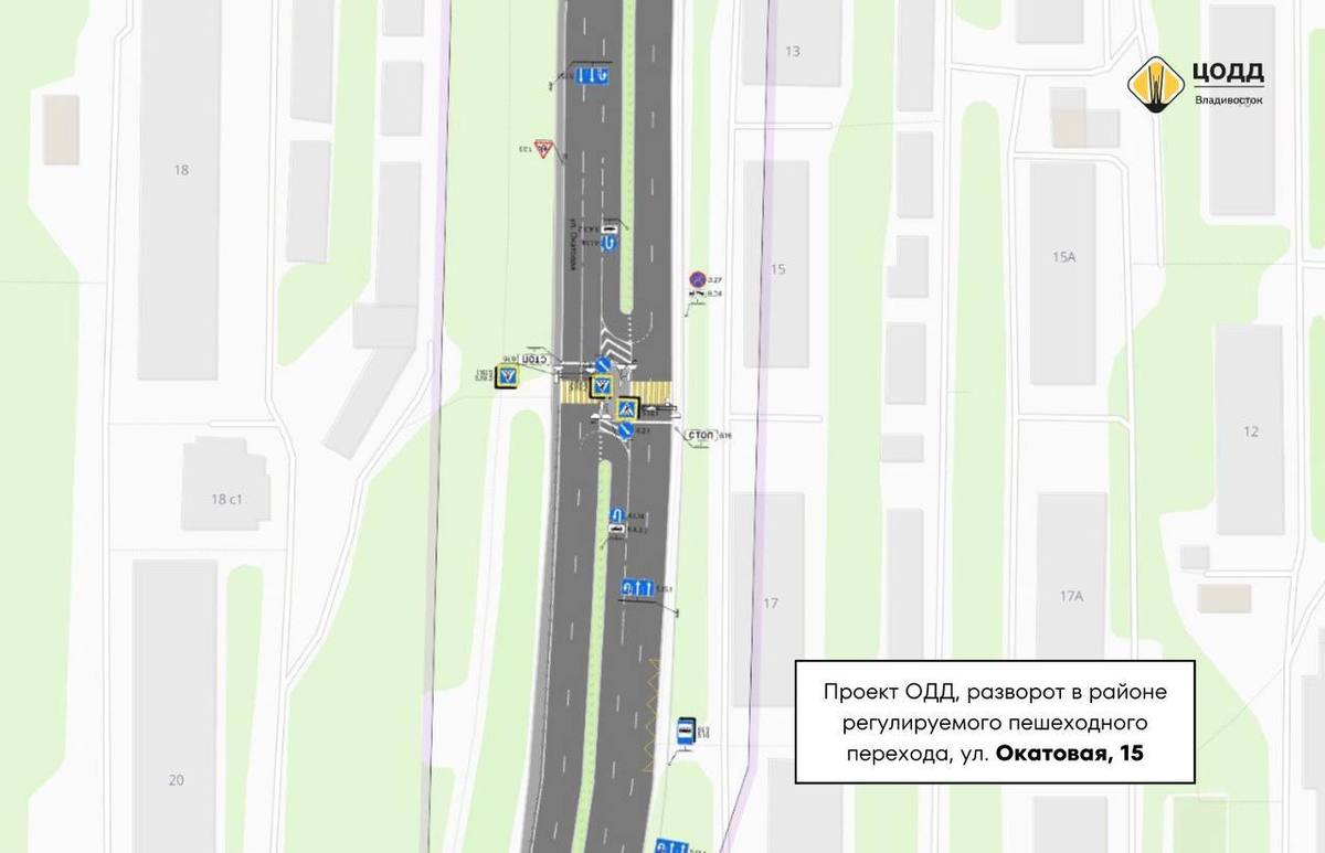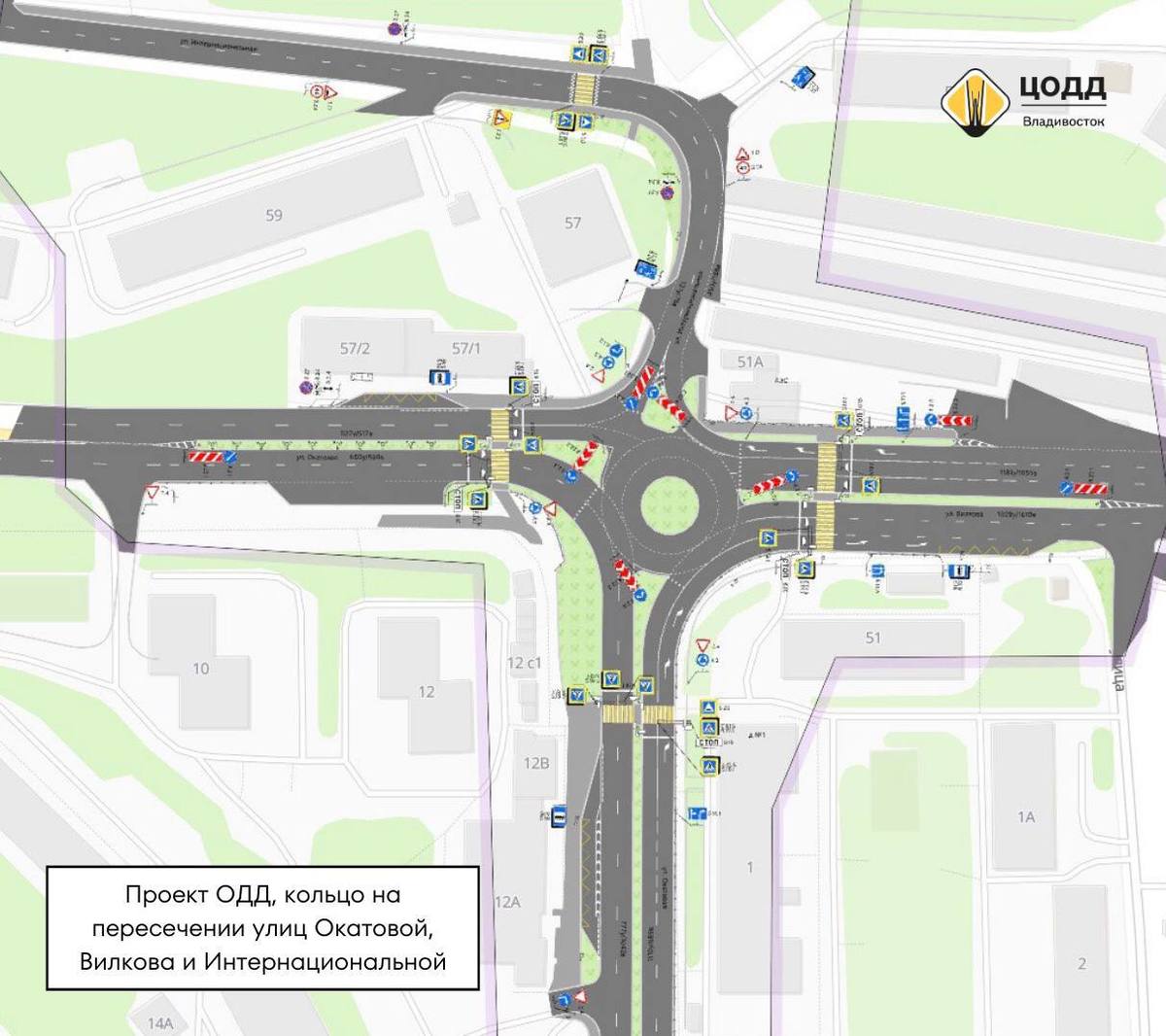 Центр организации дорожного движения Владивостока разрабатывает новый проект организации дорожного движения для улицы Окатовой. Изменения запланированы в трёх местах: съезд с Окатовой на Олега Кошевого перенесут и оборудуют выделенными полосами, на кольце Запорожской перенесут остановку, сделают островки безопасности и установят светофоры для пешеходов, а на съезде на Интернациональную перенесут переход и сделают тротуар.