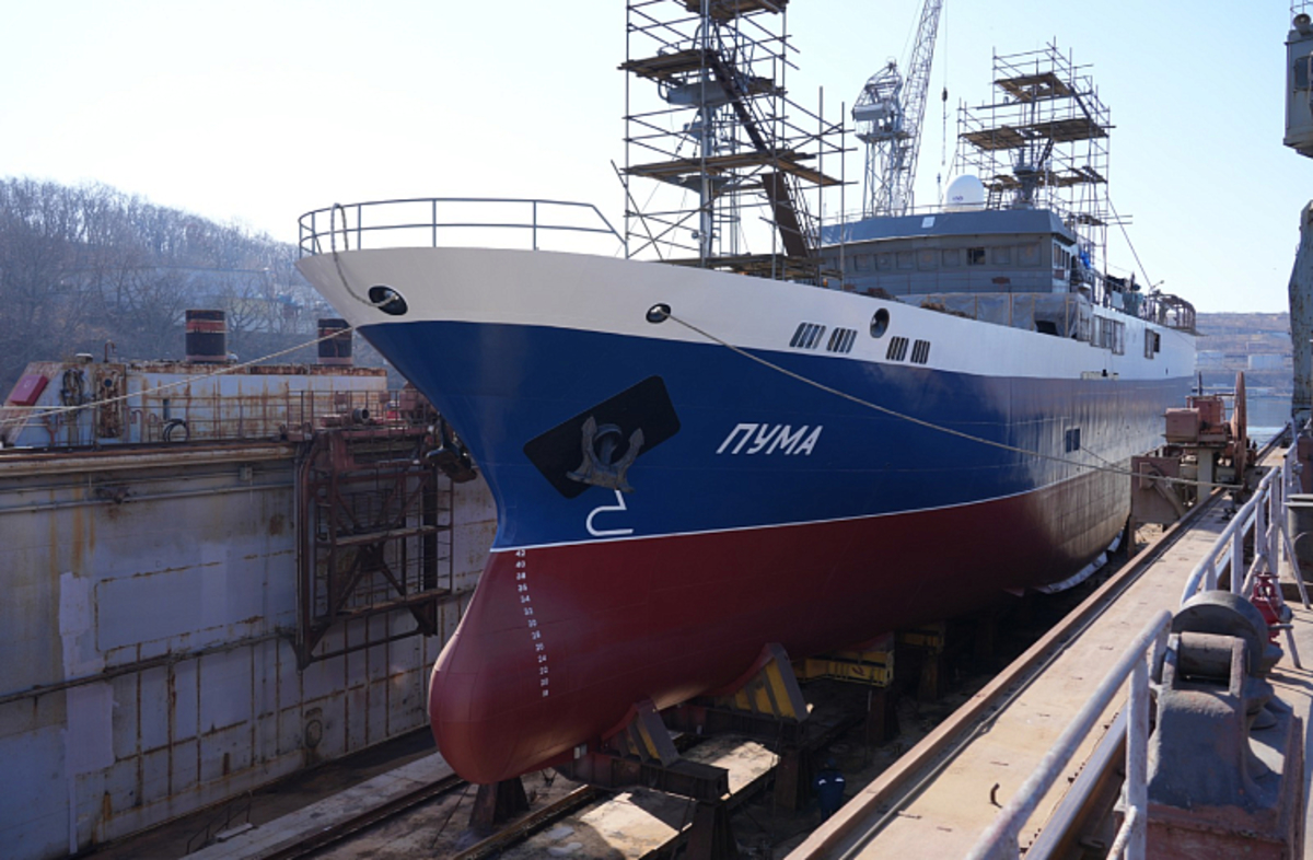 Краболовное судно «Пума», которое строится по заказу приморской компании «Восход», спустили на воду во Владивостоке на АО «Восточная верфь» в среду, 27 марта. Судно должно войти в строй летом.