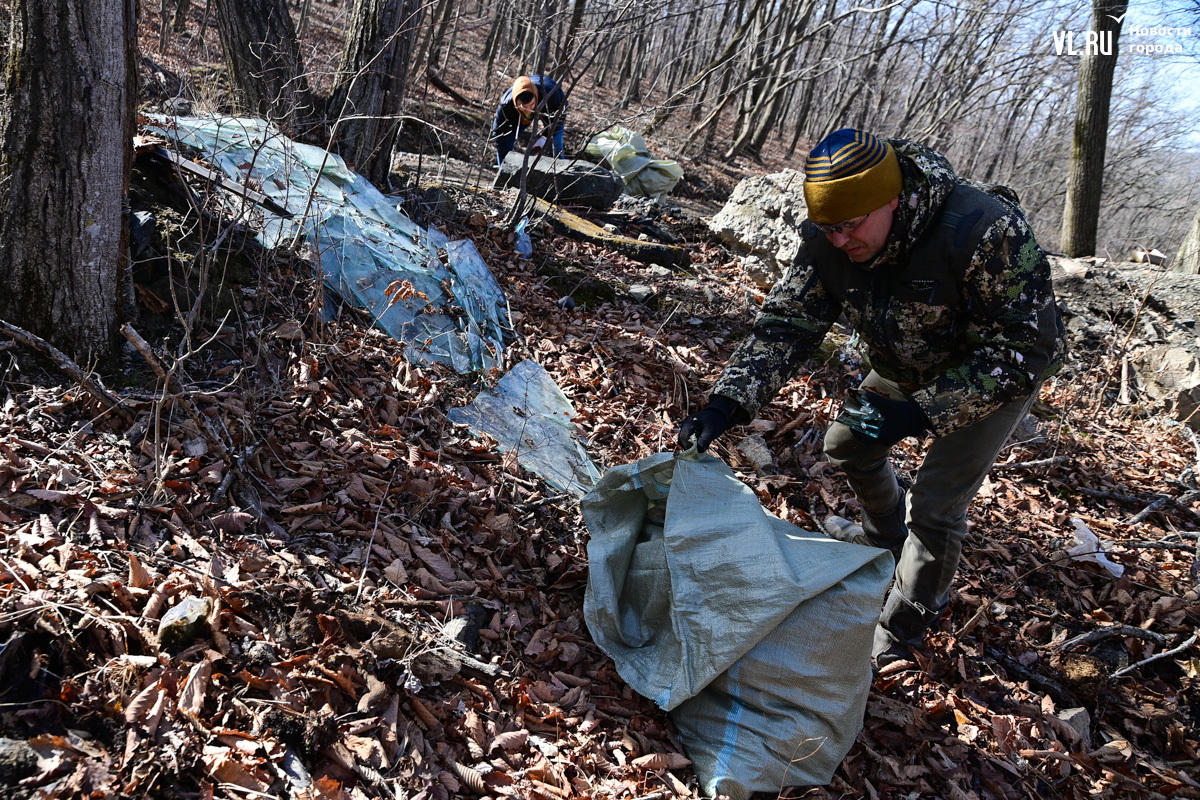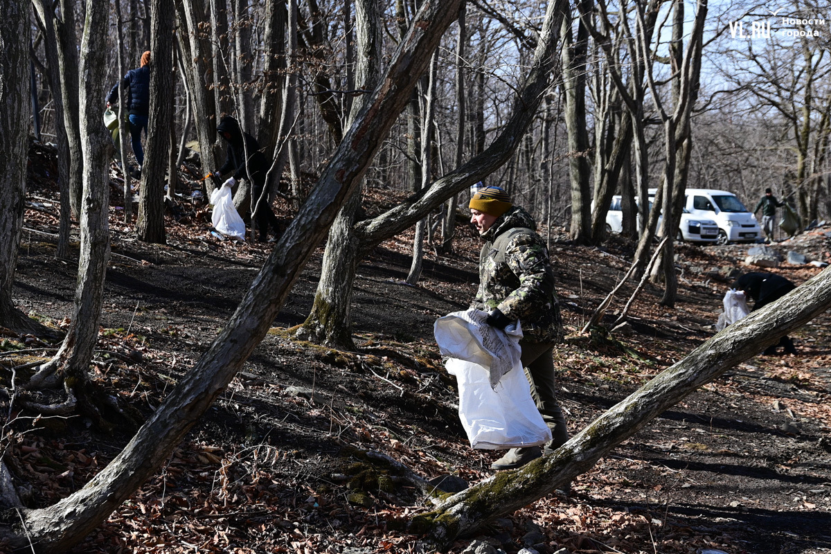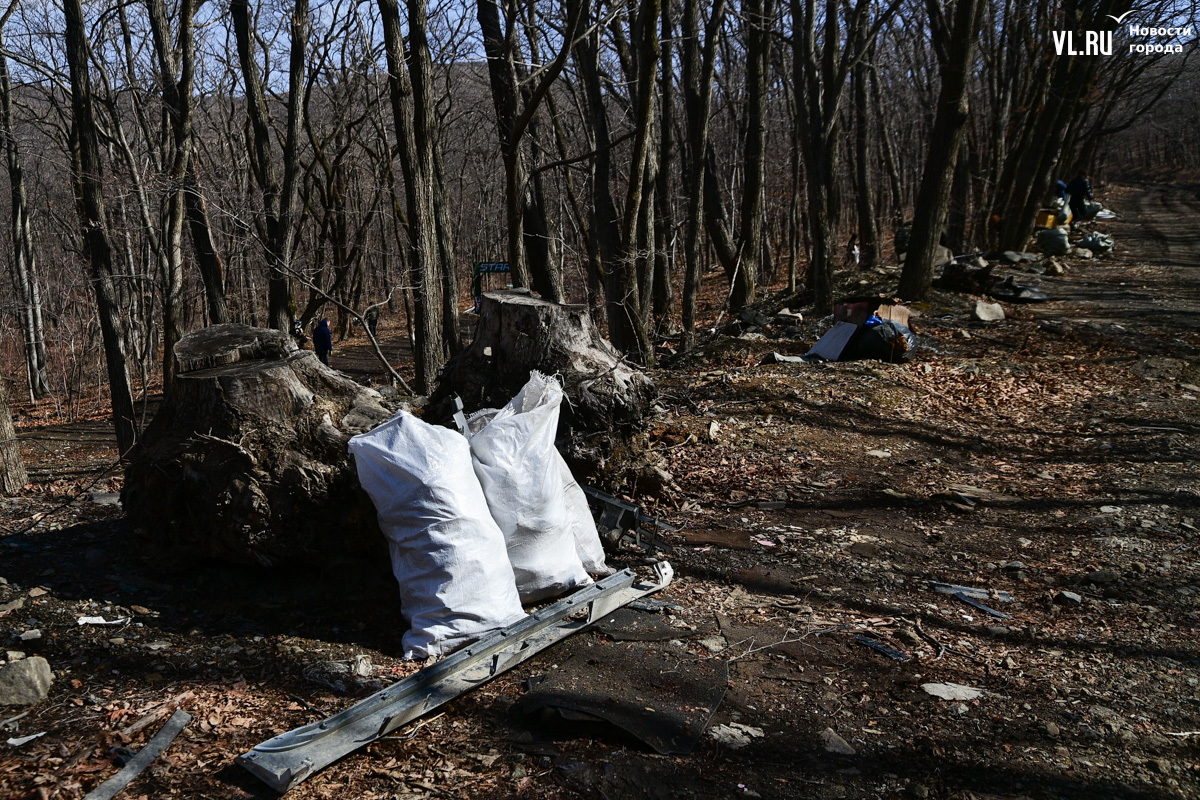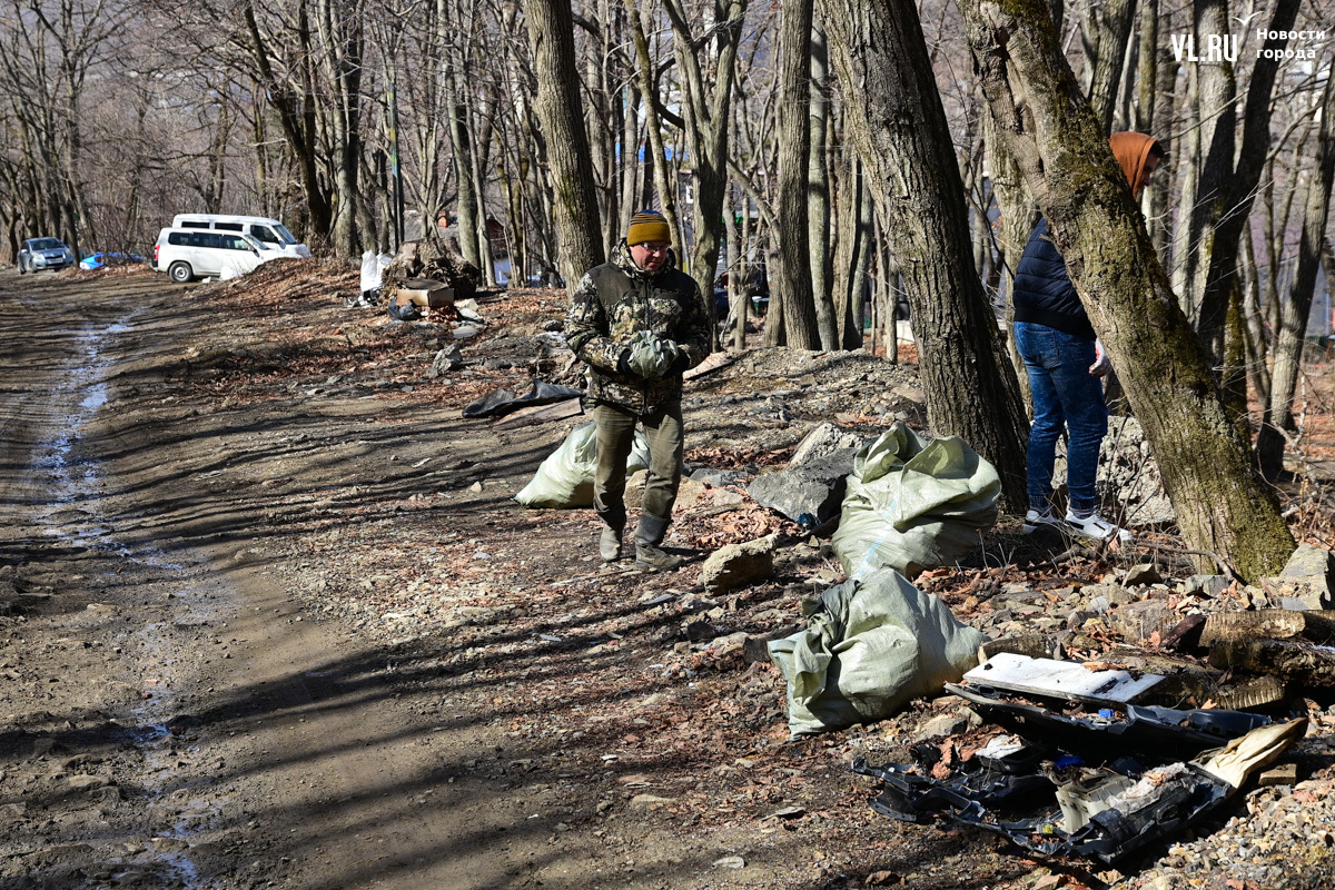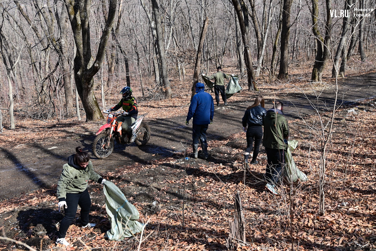 Во Владивостоке начинается сезон субботников. Первый провели эндуристы из спортивного клуба в районе улицы Просёлочной. По этому лесу они ездят сами и катают туристов, поэтому в первую очередь заинтересованы в чистоте и наводят порядок минимум два раза в год. Но, помимо них, этой дорогой пользуются все, кто едет в сторону фортов, и грузовики, которые свозят сюда строительные отходы. Сегодня за ними вывезли около 40 мешков мусора и полный кузов крупногабаритного хлама.