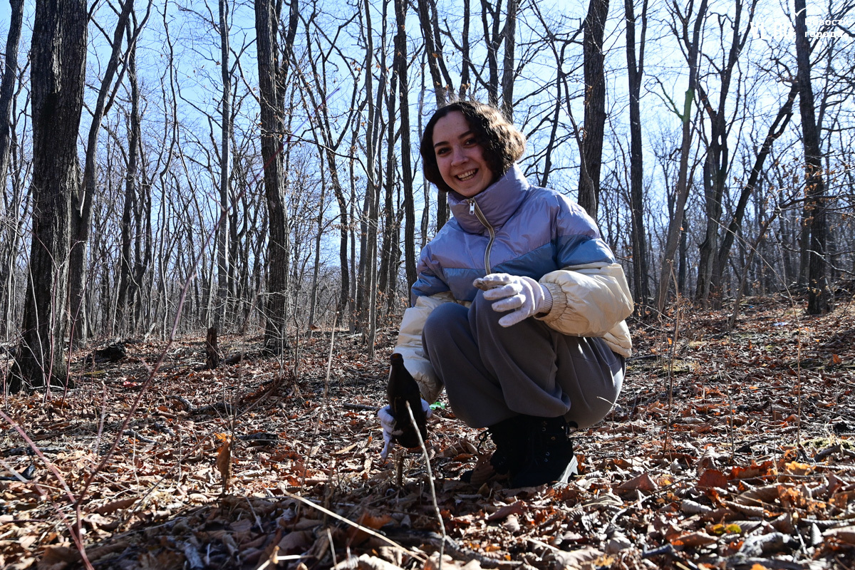 К сегодняшней уборке присоединились 19 человек. Помогать приехали даже из Артёма и Уссурийска, которые хоть и бывают здесь нечасто, но не смогли остаться в стороне. Организаторы выдали всем перчатки с мешками и разделили участников субботника на три направления. Обработавшись спреем от клещей, все разошлись по лесу.