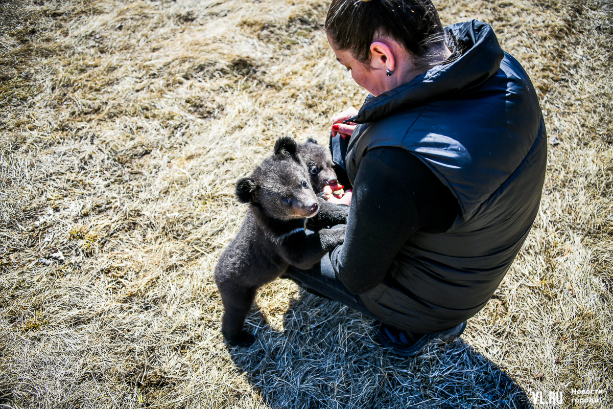 С малышами работает Ольга, волонтёр. Ухаживает за ними одна – животное должно знать одного человека, ну максимум двух. Те ходят за ней гуськом, как за мамой. У медведей в этом возрасте есть реакция следования. Они будут идти за человеком, как ходят за медведицей – это на уровне инстинктов.