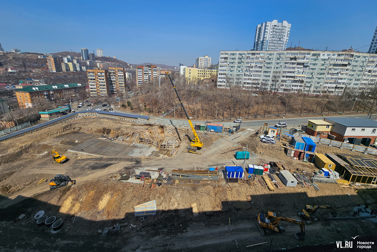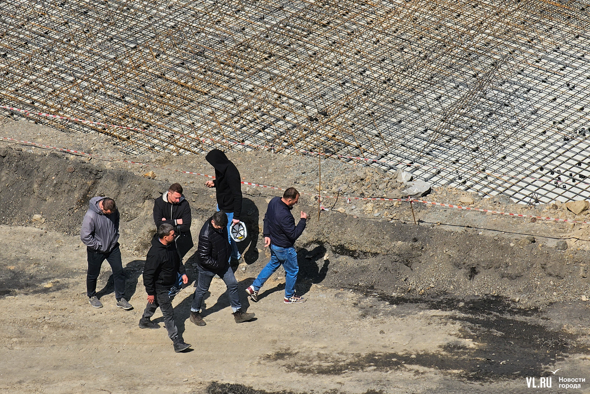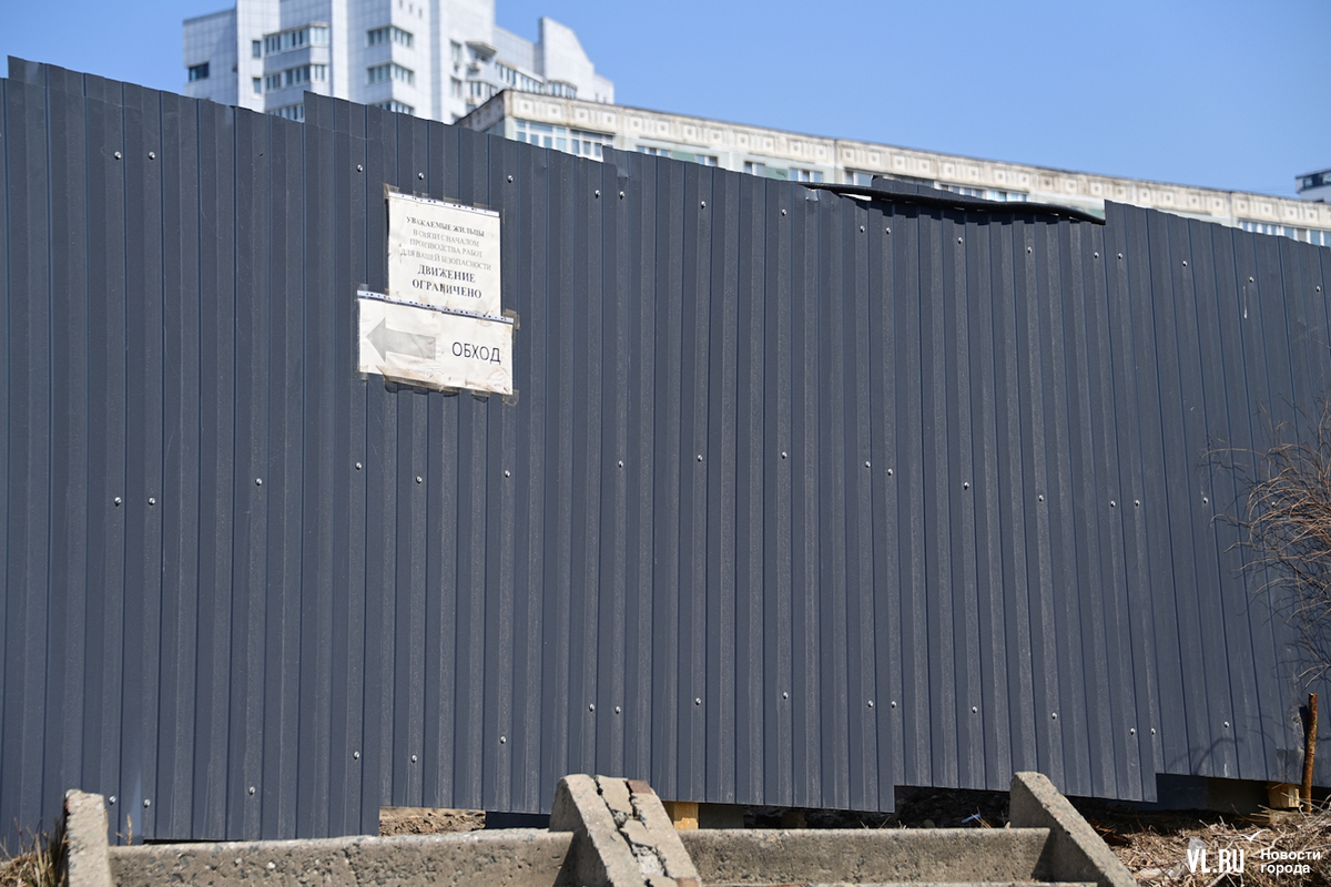Никаких работ на стройплощадке во время визита сотрудника Новостей VL.ru не велось. Происходящее вкратце прокомментировали официальные структуры: