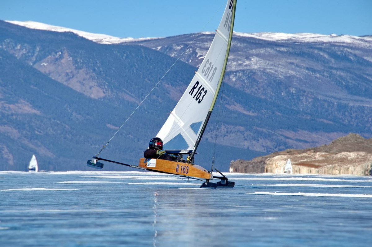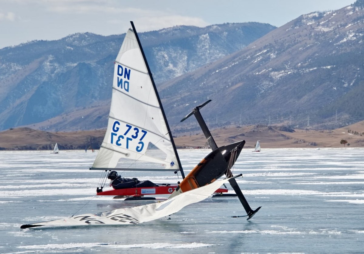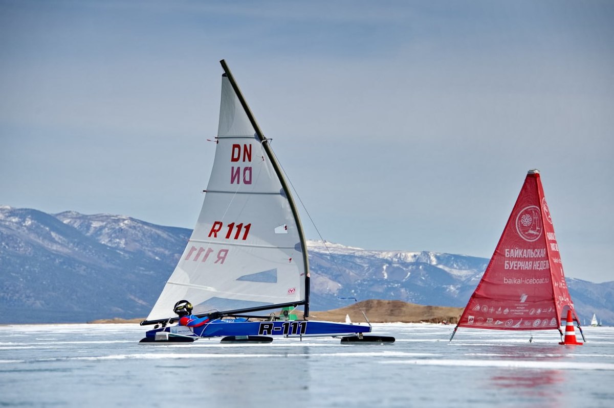 «После ветра трассу накрыло слоем песка, поэтому место гонки пришлось переносить примерно на 2,5 километра от берега, ближе к [острову] Ольхону. Помимо высоких скоростей, опасность представляли и так называемые снежные пироги. Въезжая в такую снежную ловушку, буер в лучшем случае резко теряет скорость, если снег талый. А если «пирог» замерзает – он превращается в трамплин, в который можно влететь на скорости, близкой к 100 км/ч. К слову, в буерах никто не пристёгивается», – отмечает Евгений.