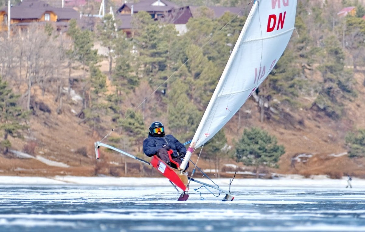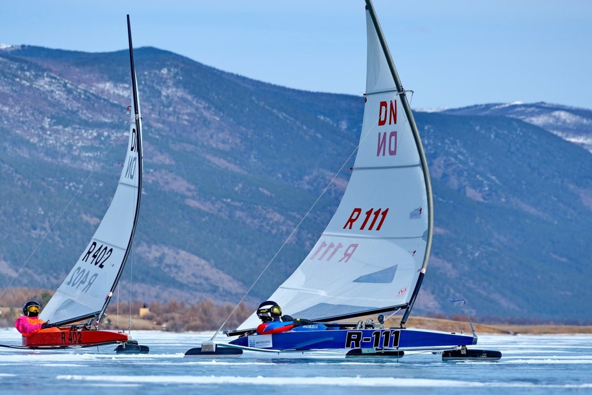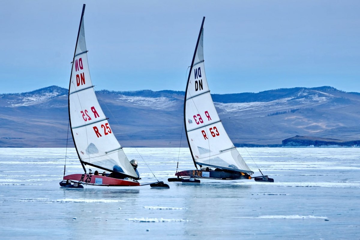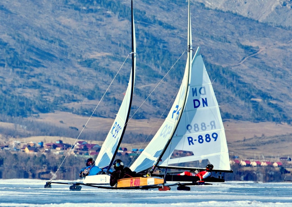 «После ветра трассу накрыло слоем песка, поэтому место гонки пришлось переносить примерно на 2,5 километра от берега, ближе к [острову] Ольхону. Помимо высоких скоростей, опасность представляли и так называемые снежные пироги. Въезжая в такую снежную ловушку, буер в лучшем случае резко теряет скорость, если снег талый. А если «пирог» замерзает – он превращается в трамплин, в который можно влететь на скорости, близкой к 100 км/ч. К слову, в буерах никто не пристёгивается», – отмечает Евгений.