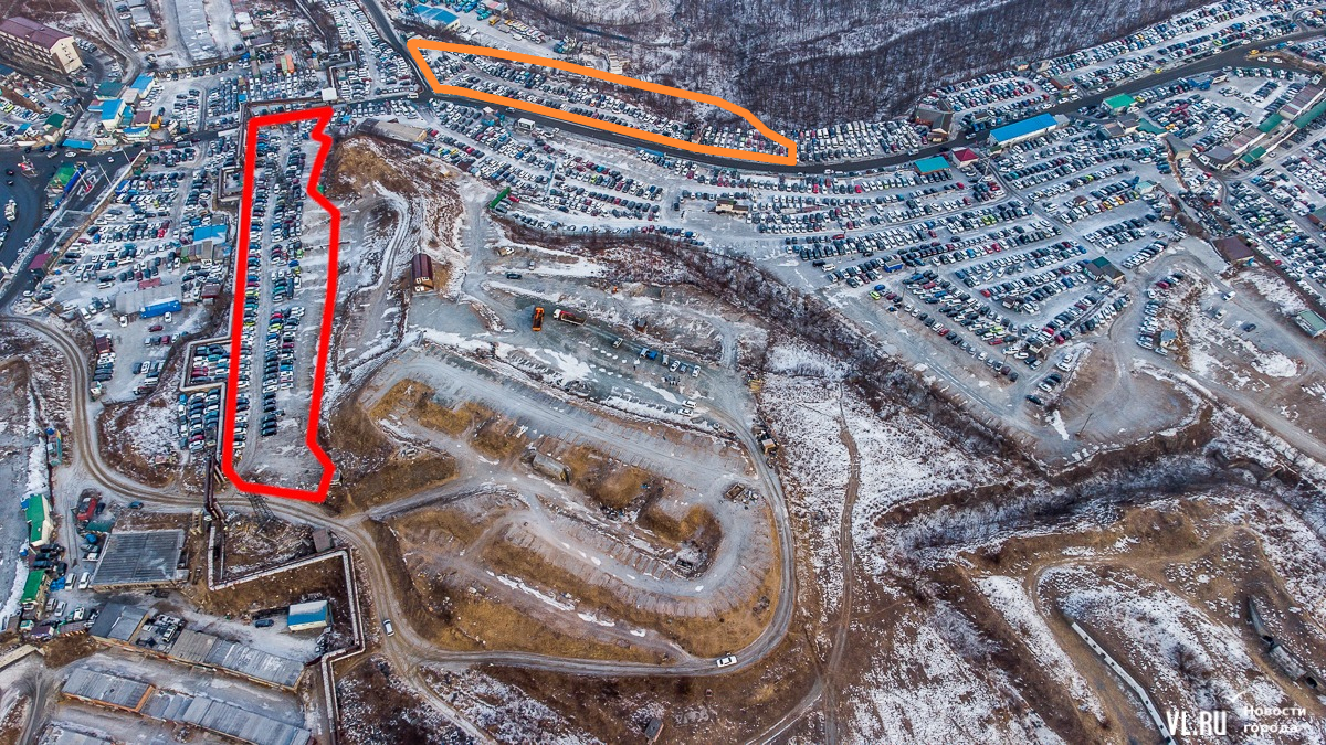 Сейчас на этом и соседних участках идёт торговля автомобилями. А вот основная часть авторынка уже опустела. Несколько стоянок разогнали, потому что они оказались в охранной зоне Сапёрного редута Владивостокской крепости, значительную часть рынка выгнали, поскольку стоянщики незаконно занимали землю военных. К оставшимся площадкам тоже есть вопросы. Например, участок 25:28:010043:2, где машины пока остаются, тоже в охранной зоне и тут тоже объект недвижимости «Союза бокса», причём уже достроенный. Захватывает охранная зона и участок 25:28:010042:55 за автозаправкой. Пока остаются автомобили на большом участке 25:28:040011:105 вдоль дороги, но по нему, как уточнили в прокуратуре, идёт сейчас процесс расторжения договора.
