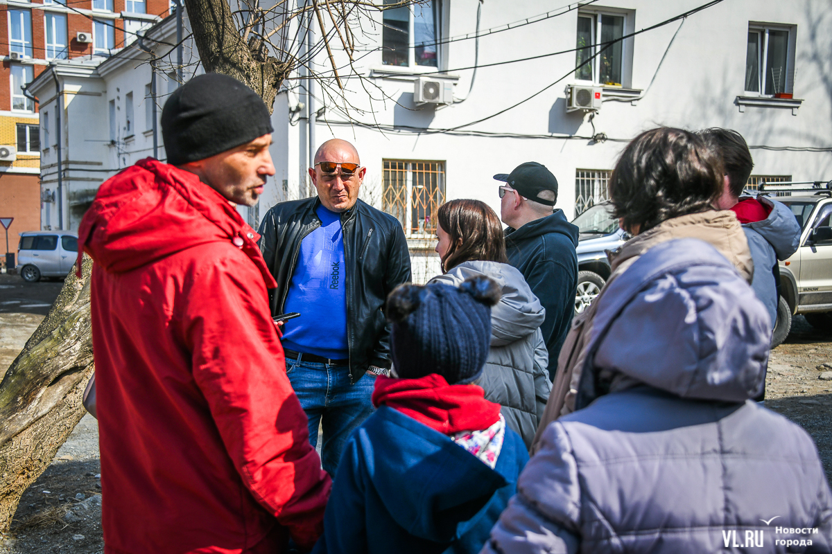 «Мы поехали на Западную, 15, где нам предлагали ознакомиться с проектом, по одной простой причине. С 2014 года мы пытаемся сформировать два земельных участка: переписываемся, предлагаем, просим – всё впустую. И в последнем ответе администрация Владивостока объясняла, что группа компаний «Владстройзаказчик» формирует участок под Героев Хасана, 7 и должна сформировать земельные участки под домами 11 и 13. Я поехал посмотреть – в тех ли границах сформировали участки, в которых мы подавали заявку, приглашали кадастрового инженера. Когда я приехал, мне сказали – вас вообще нет, ваши дома идут под снос. И показали карту, на которой участки, где мы стоим, хотят присоединить к лицею», – говорит председатель совета дома № 13 по Героев Хасана Олег Наумов.