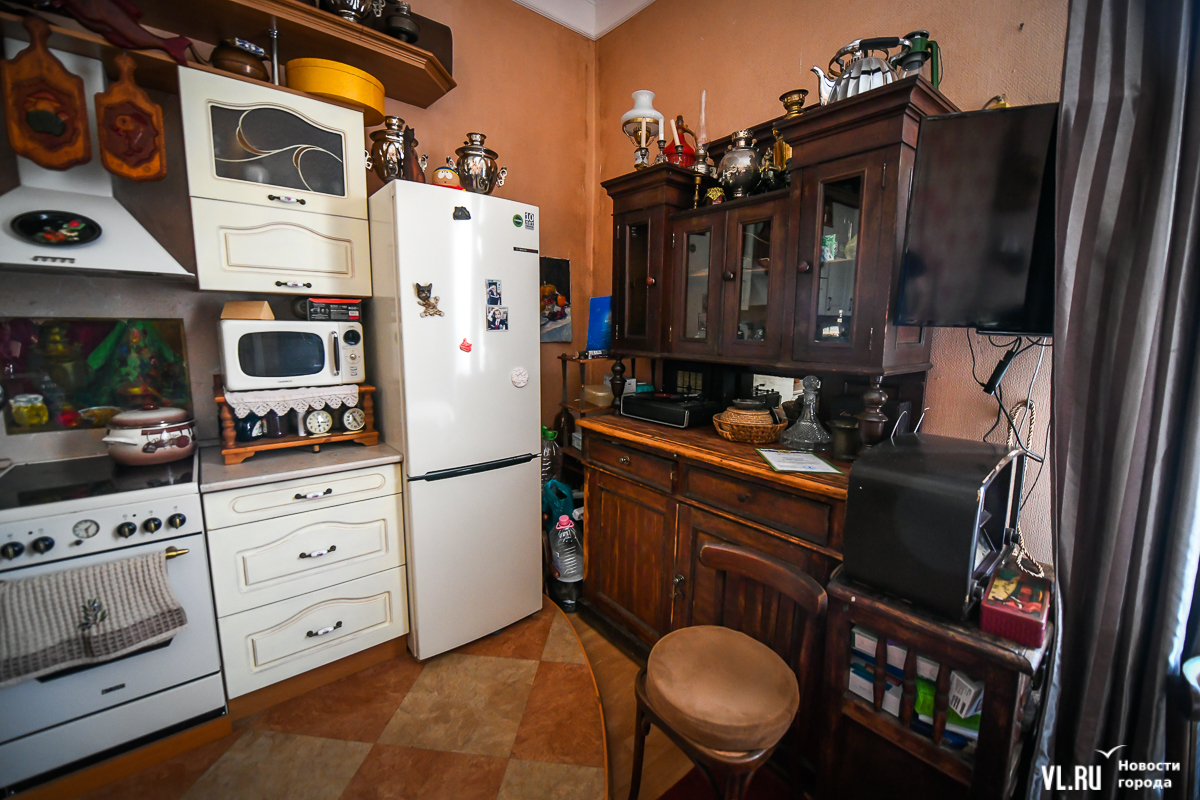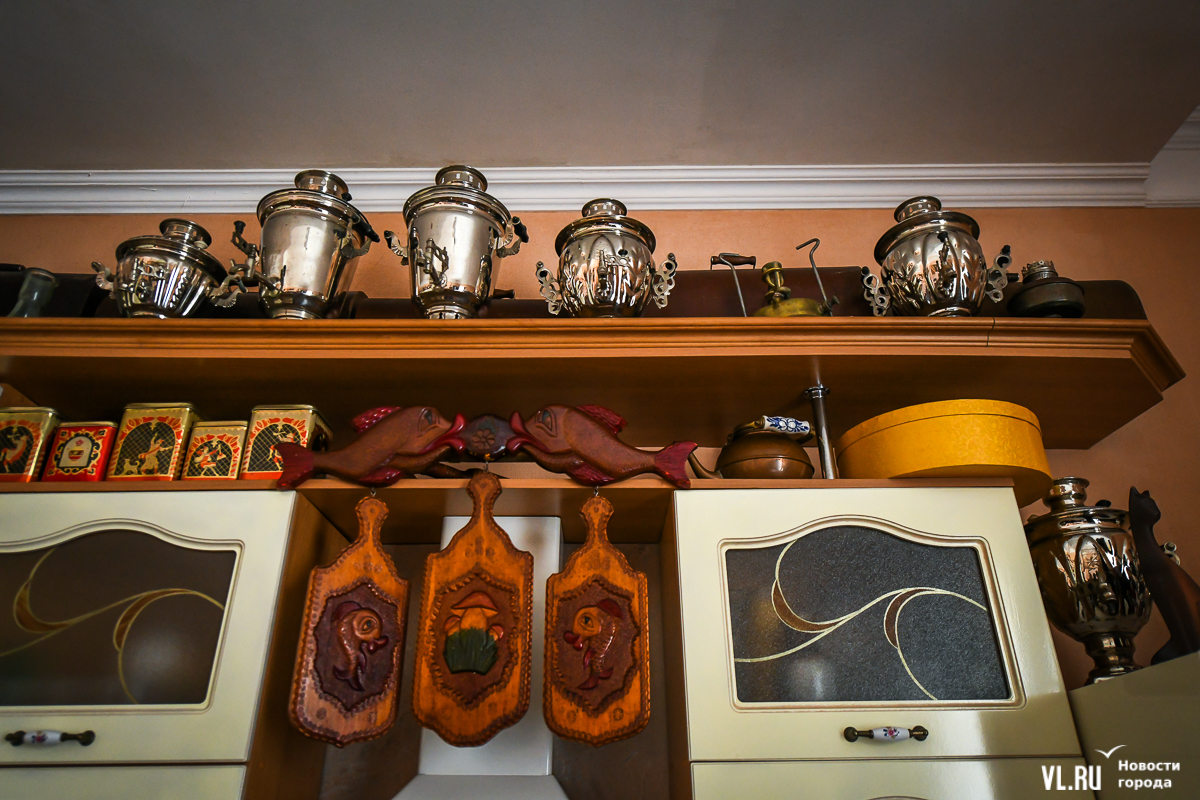 «Получается, сам дом старый, с историей, соответственно, и в доме так, – говорит Виталий. Он спасатель и рассказывает, что они сейчас работают на речках в Уссурийске. – У нас стол старый, стулья старые и вот – видите – сервиз? Это перламутровый фарфор Коростенского завода – мама привезла, когда приезжала».