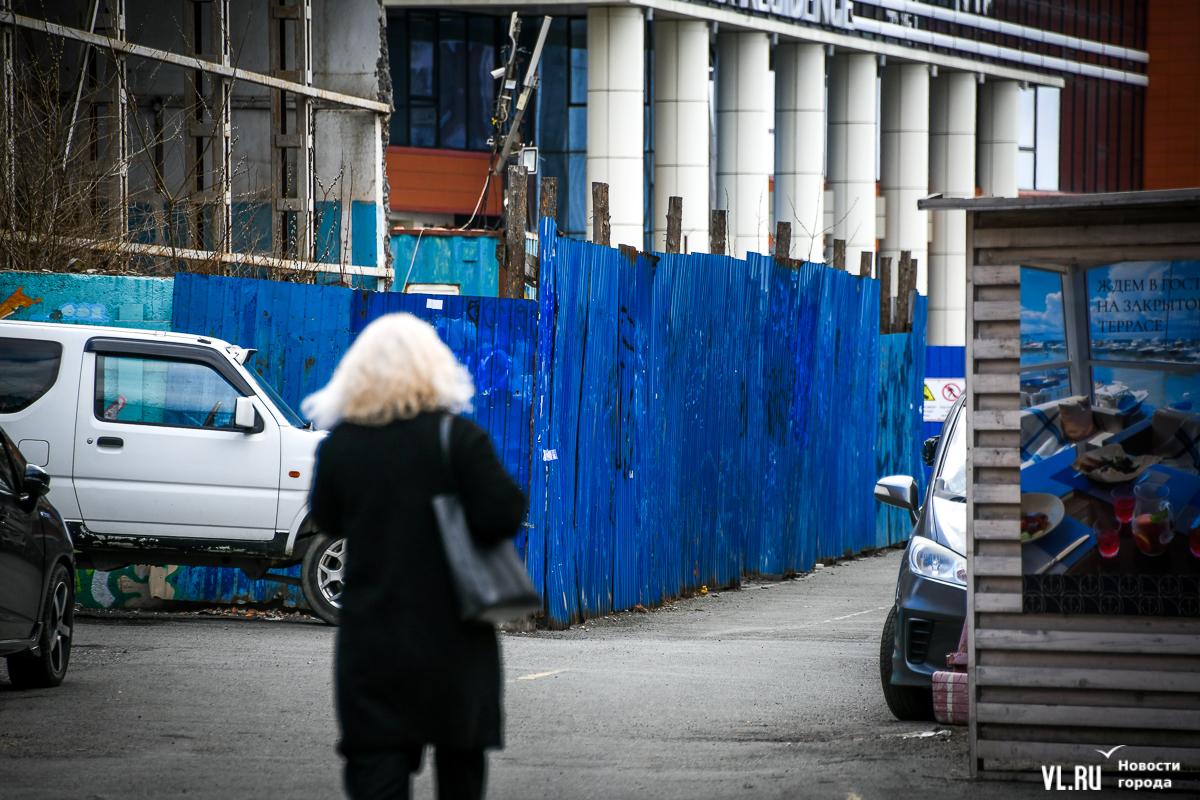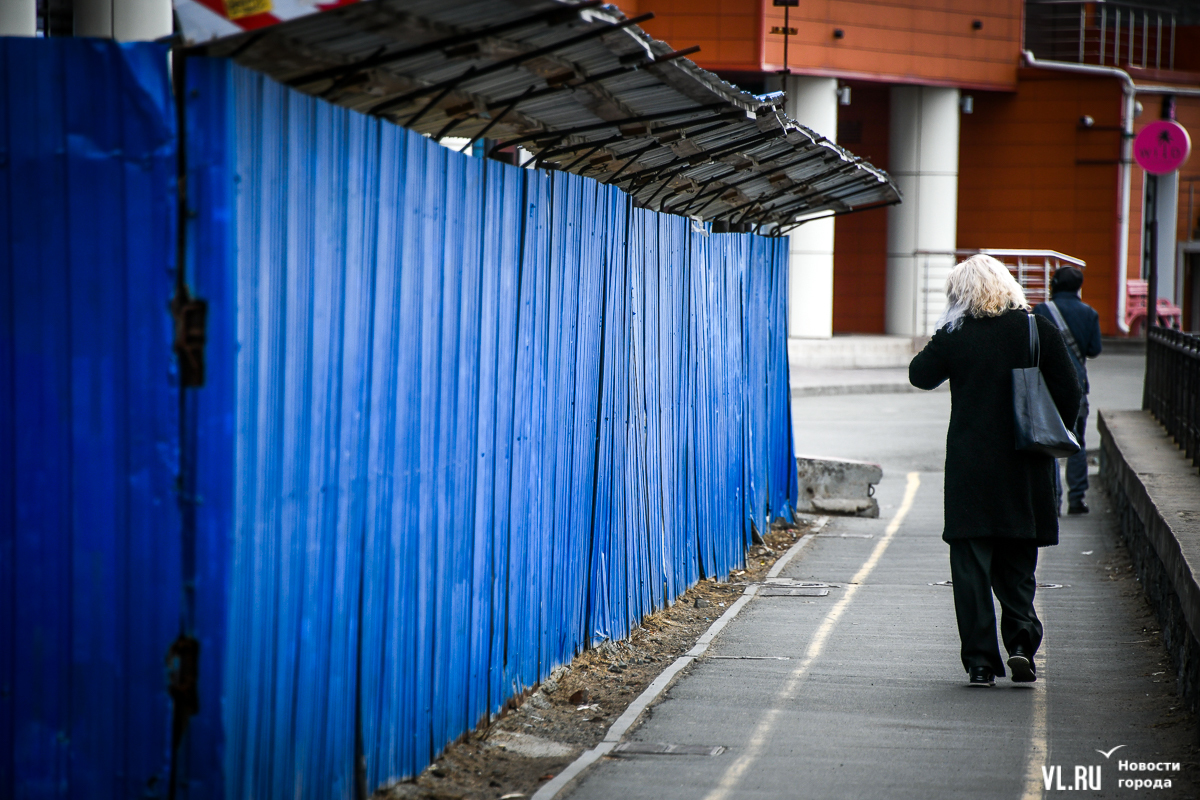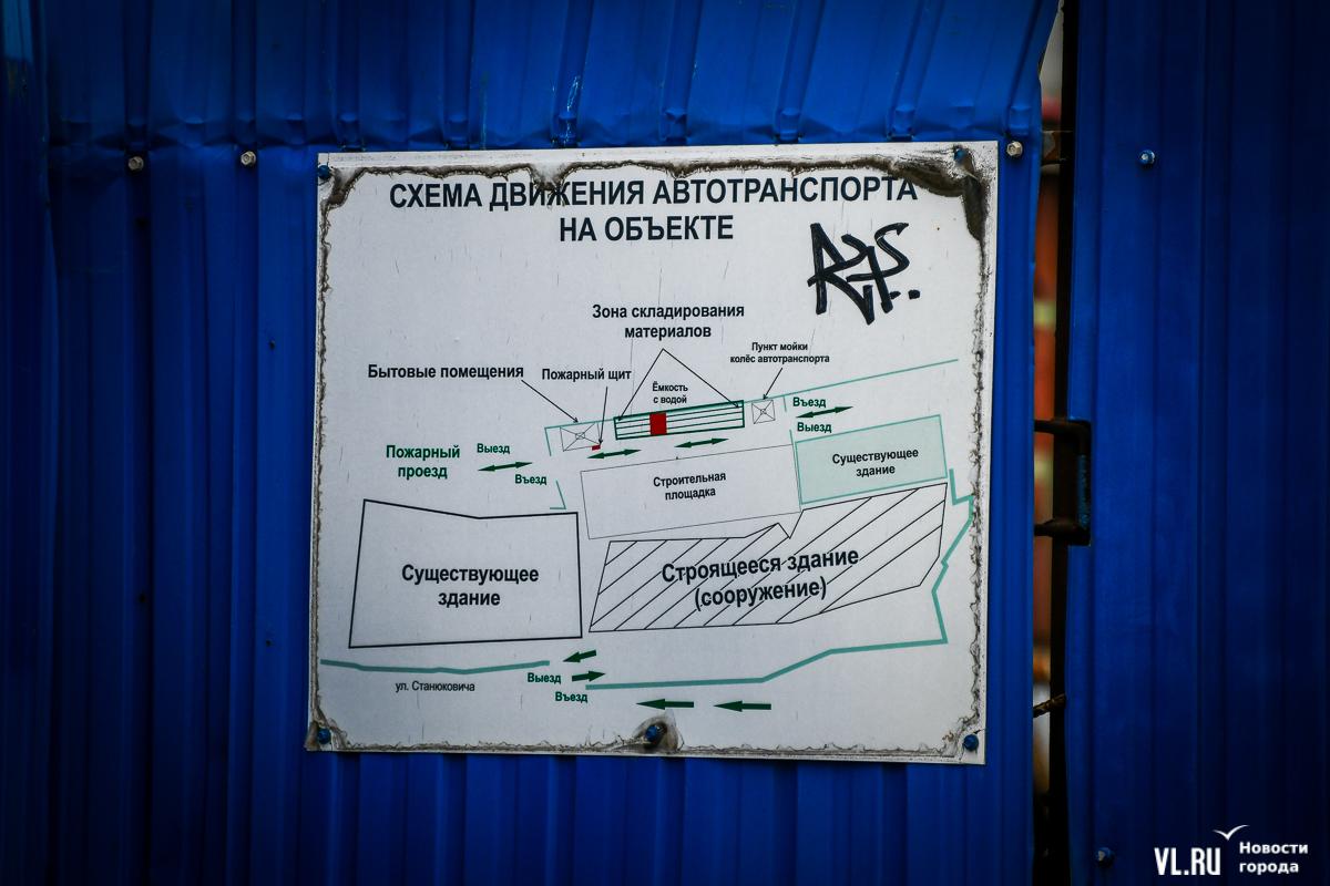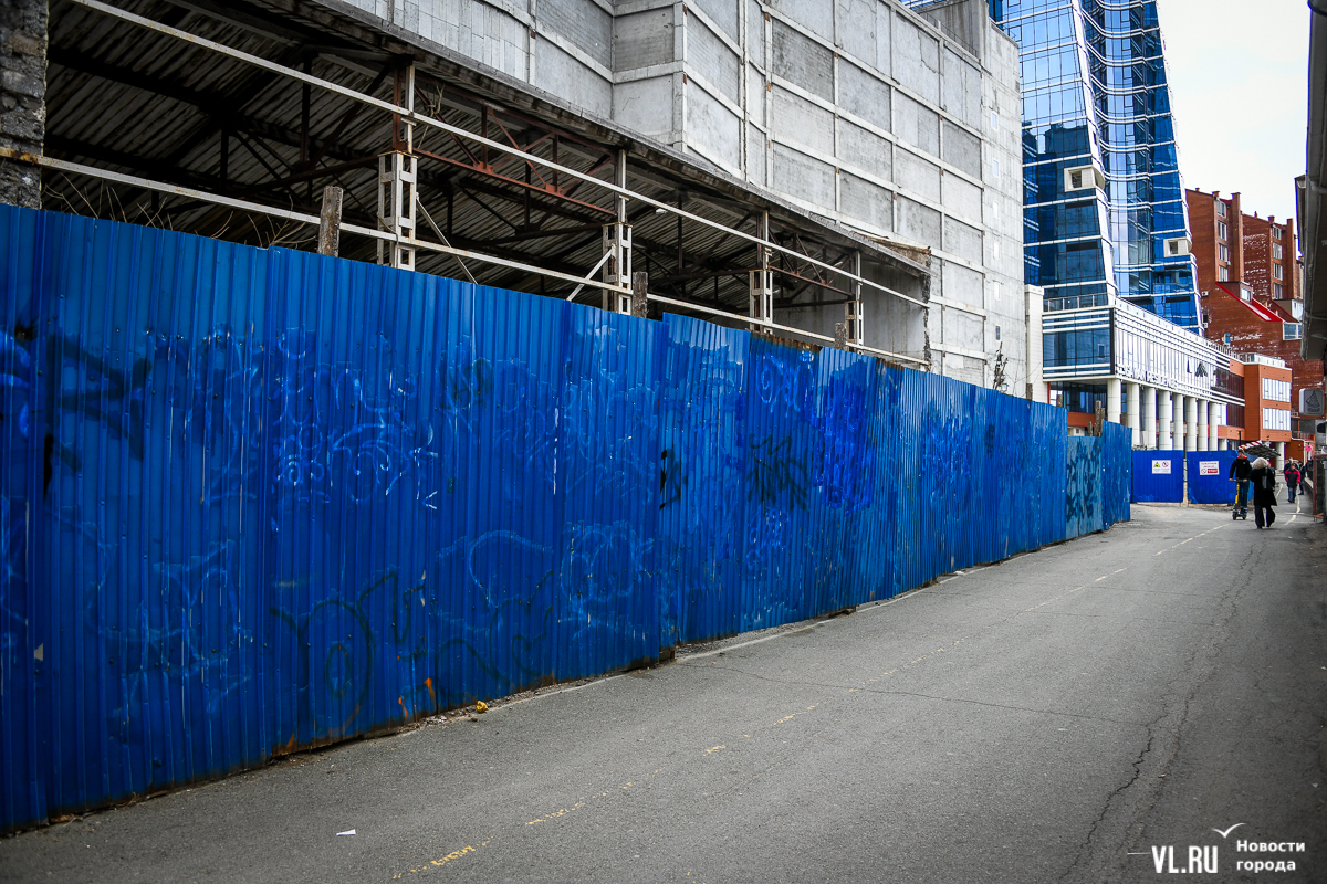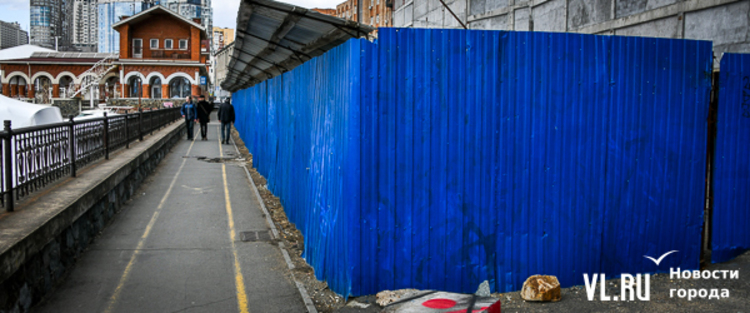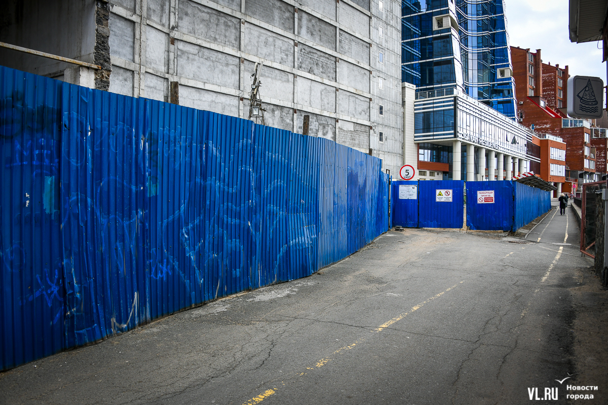 Синий забор на пешеходной Тропе здоровья устанавливали при строительстве ЖК «Гавань Резиденс» на Станюковича как минимум в 2015 году. В 2017 году здесь рухнула часть подпорной стены и дорога, которую восстановили только через полтора года. За это время застройщик, ООО «Гавань резиденс групп», возвёл здесь крытый паркинг, правда, до сих пор не очень понятно – сдали его в эксплуатацию или нет.