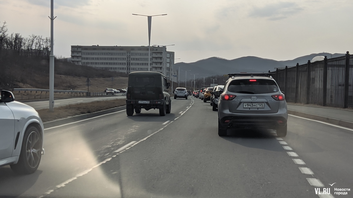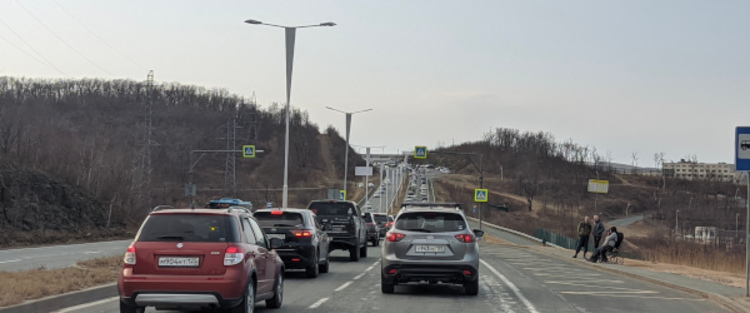 Отметим, что с установлением тёплой погоды подобные пробки на выходных, и особенно вечером в воскресенье, – довольно обычное явление. Отдыхающие в бухтах Ахлёстышева, Аякс, Парис, Новик и других возвращаются в город по единственной магистральной дороге и Русскому мосту. Если при этом на этом участке или в начале Русского моста (со стороны материка) происходит ДТП – люди встают в многочасовые заторы. Объезда на участке от Университетского проспекта до Катерной нет.