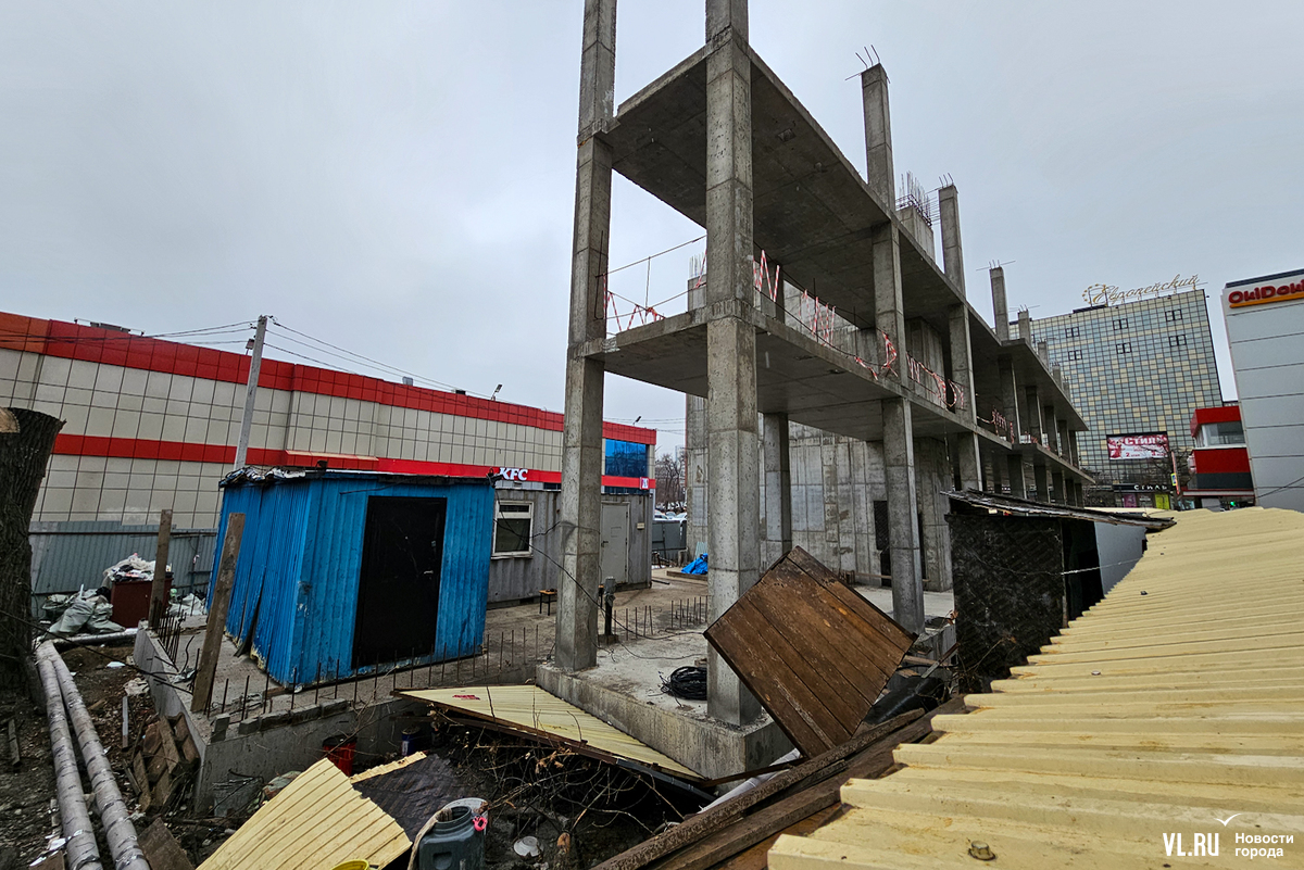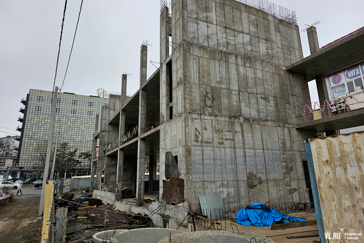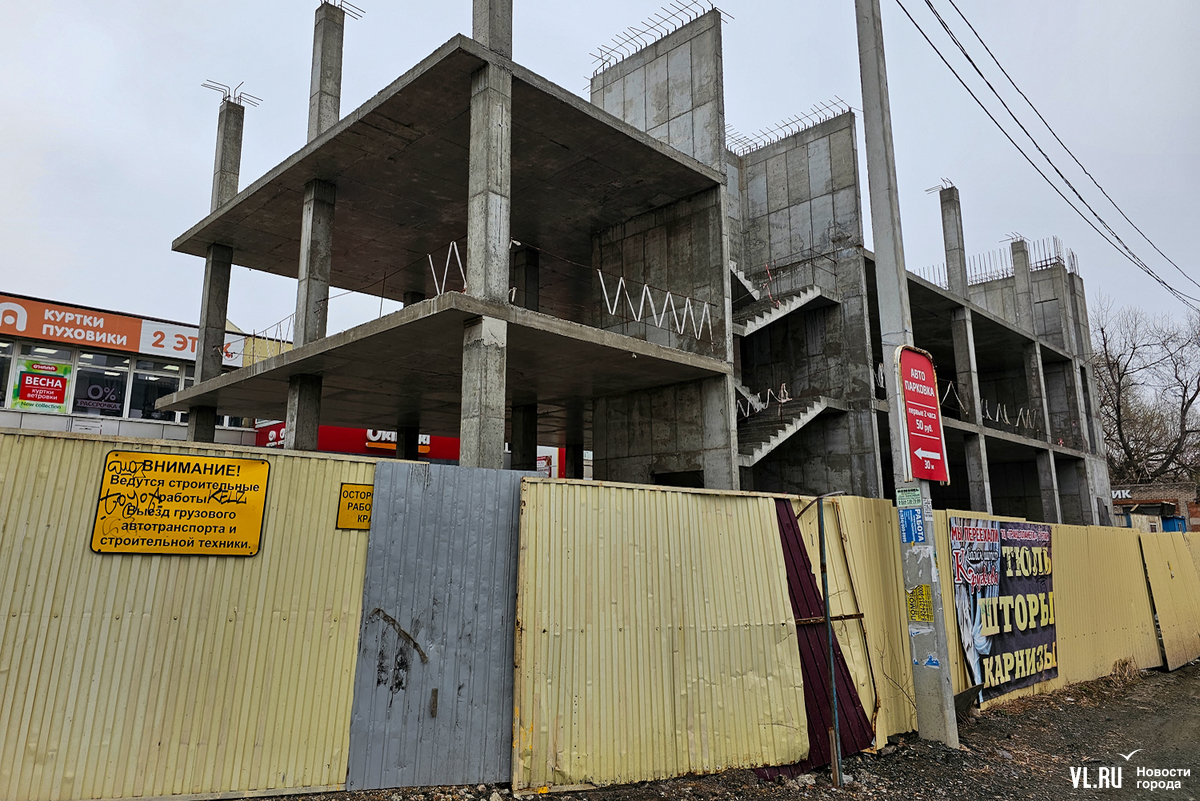 В прошлом году между торговыми центрами «Гранд» и «Универсам» на Второй Речке начали строить ещё один многофункциональный общественно-деловой центр. Разрешение на строительство выдала администрация Владивостока, которая его же и отозвала менее чем через полгода. За это время на огороженном забором участке успели вырыть котлован и залить два с половиной этажа бетонного каркаса. Сейчас стройка стоит, забор постепенно ветшает. Арендатор за новым разрешением не обращался, а расторгать с ним договор аренды у мэрии в планах нет.