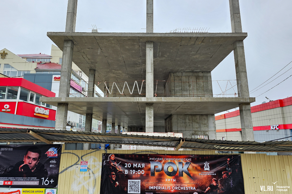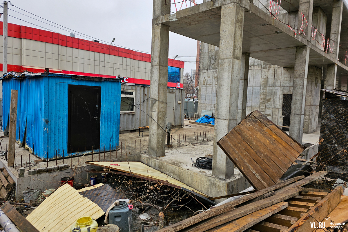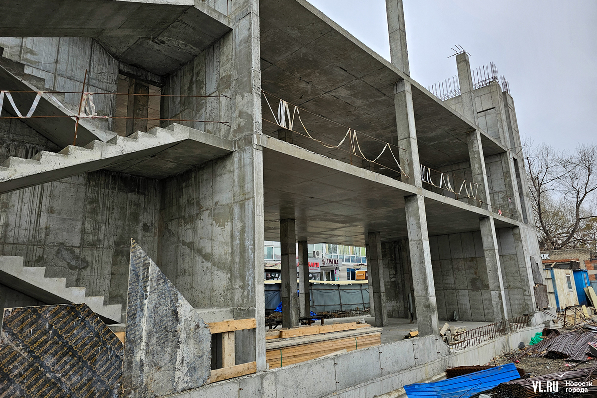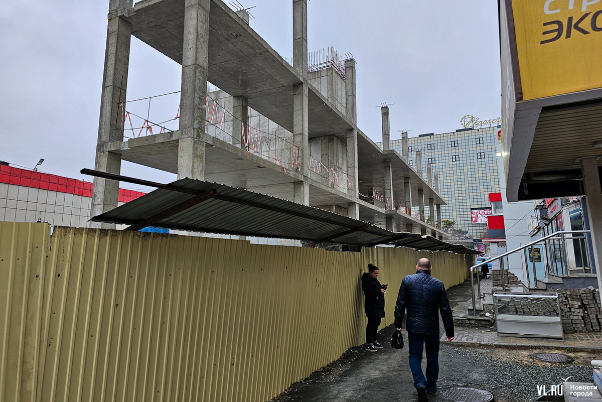 В прошлом году между торговыми центрами «Гранд» и «Универсам» на Второй Речке начали строить ещё один многофункциональный общественно-деловой центр. Разрешение на строительство выдала администрация Владивостока, которая его же и отозвала менее чем через полгода. За это время на огороженном забором участке успели вырыть котлован и залить два с половиной этажа бетонного каркаса. Сейчас стройка стоит, забор постепенно ветшает. Арендатор за новым разрешением не обращался, а расторгать с ним договор аренды у мэрии в планах нет.