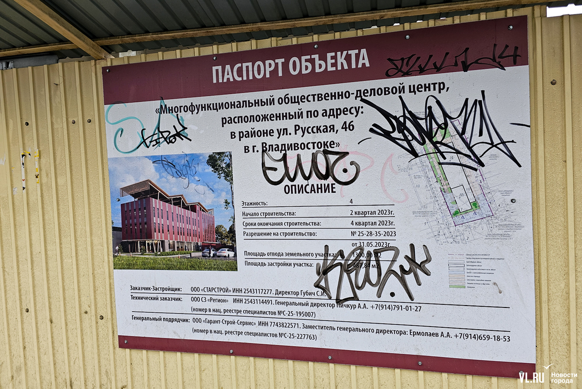 Вероятно, стройка готовилась давно, ведь ещё в 2021 году сюда подводили ветку теплотрассы – возможно, как раз для будущего здания. Первое разрешение на строительство компания получила 1 января 2022 года сроком на год. В мае 2023 года разрешение было выдано снова, оно действовало до 31 января 2024 года, но в октябре администрация Владивостока внезапно его отозвала, как оказалось, по причине нарушения пожарных норм.