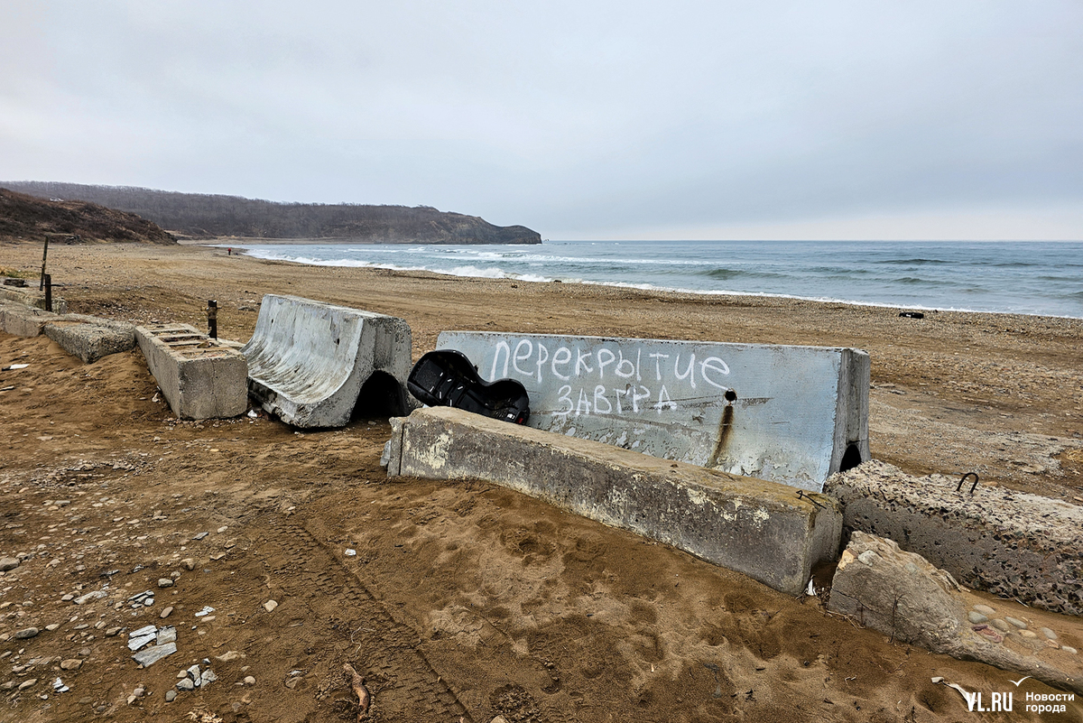 В телеграм-канале «Улов25» сегодня сообщили, что утром на побережье заехали машины, а выехать не смогли. Вероятно, рыбаки, как и муниципальная служба, которая привезла накануне блоки, не знали, что есть ещё одна дорога. Грунтовая, крутая, до неё ехать через весь пляж – но есть.