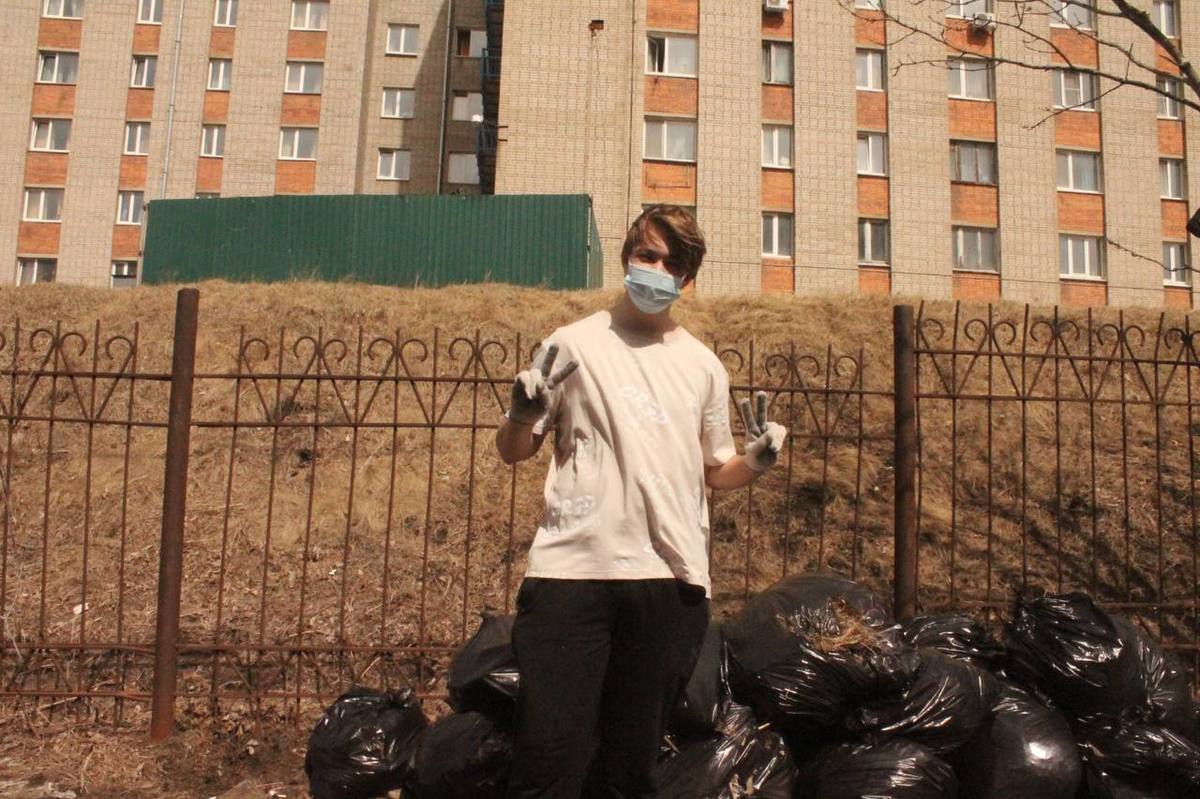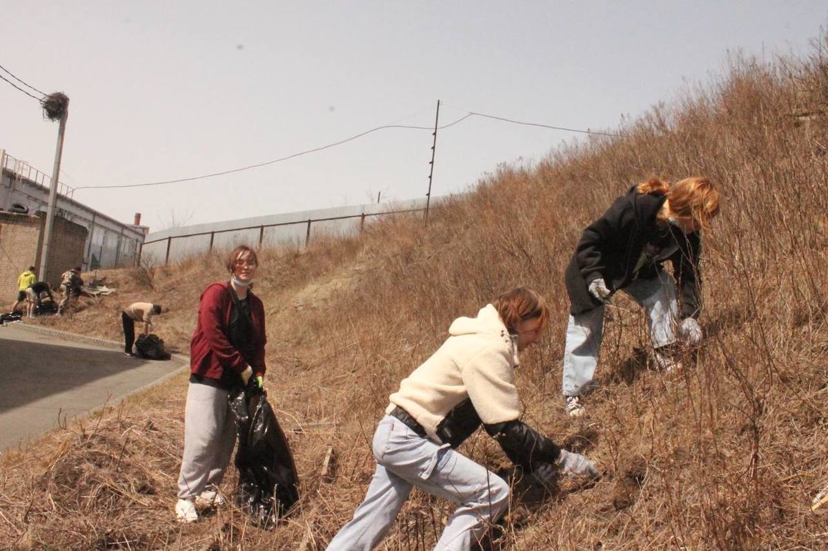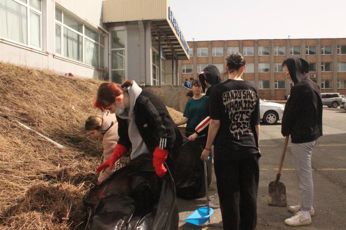 На территории общежития, обнесённой забором, также находятся другие здания – колледж дизайна и сервиса ВВГУ, спорткомплекс «Чемпион», инновационный бизнес-инкубатор ВВГУ. За полтора часа ребята убрались не только на «своей» территории, но и на муниципальной. Мусор помогло вывезти АТУ Первомайского района – за это участники субботника убрали муниципальную аллею.