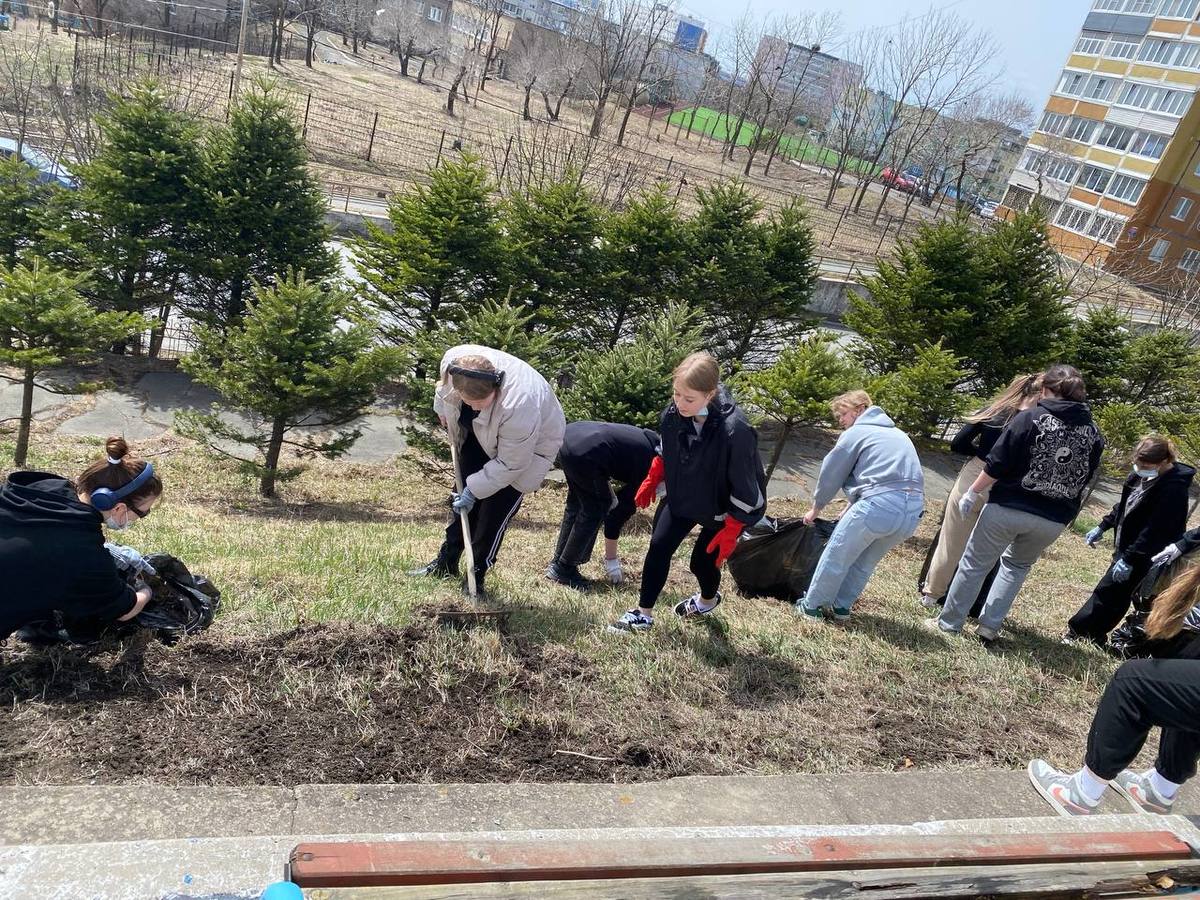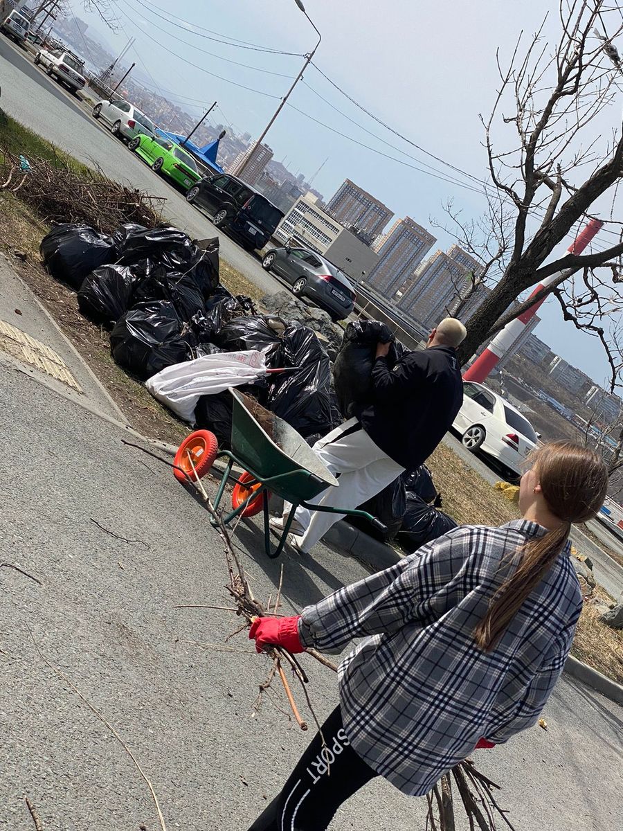 В среду, 17 апреля, более 300 сотрудников и жителей общежития колледжа сервиса и дизайна ВВГУ собрались на субботник в районе улицы Добровольского во Владивостоке. За 1,5 часа с территории общежития (Добровольского, 20-б) участники убрали несколько кубов веток и мусора. Ребят было так много, что помочь с дополнительными граблями и вениками пришлось просить сам колледж и спорткомплекс, а в конце всех ждало любимое студенческое блюдо – пицца.