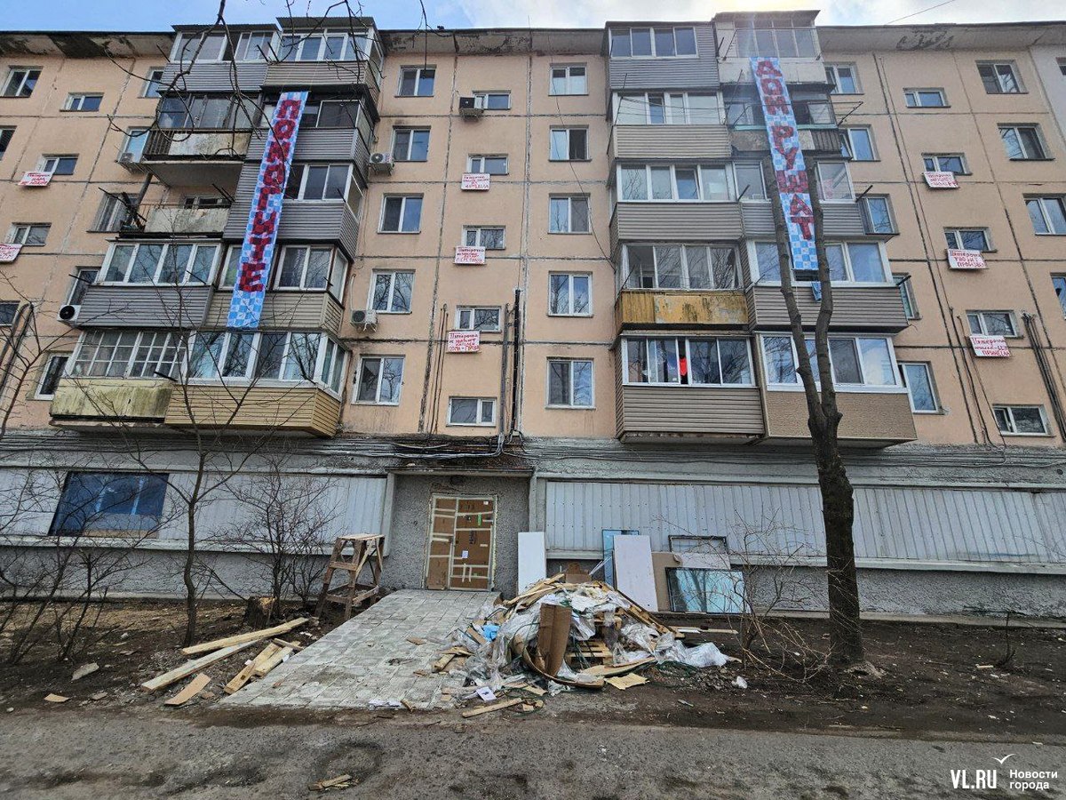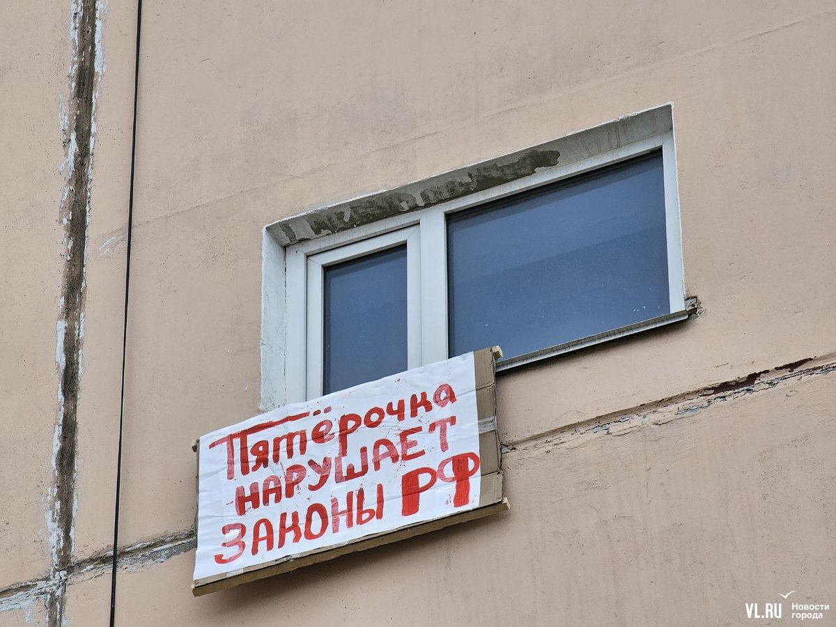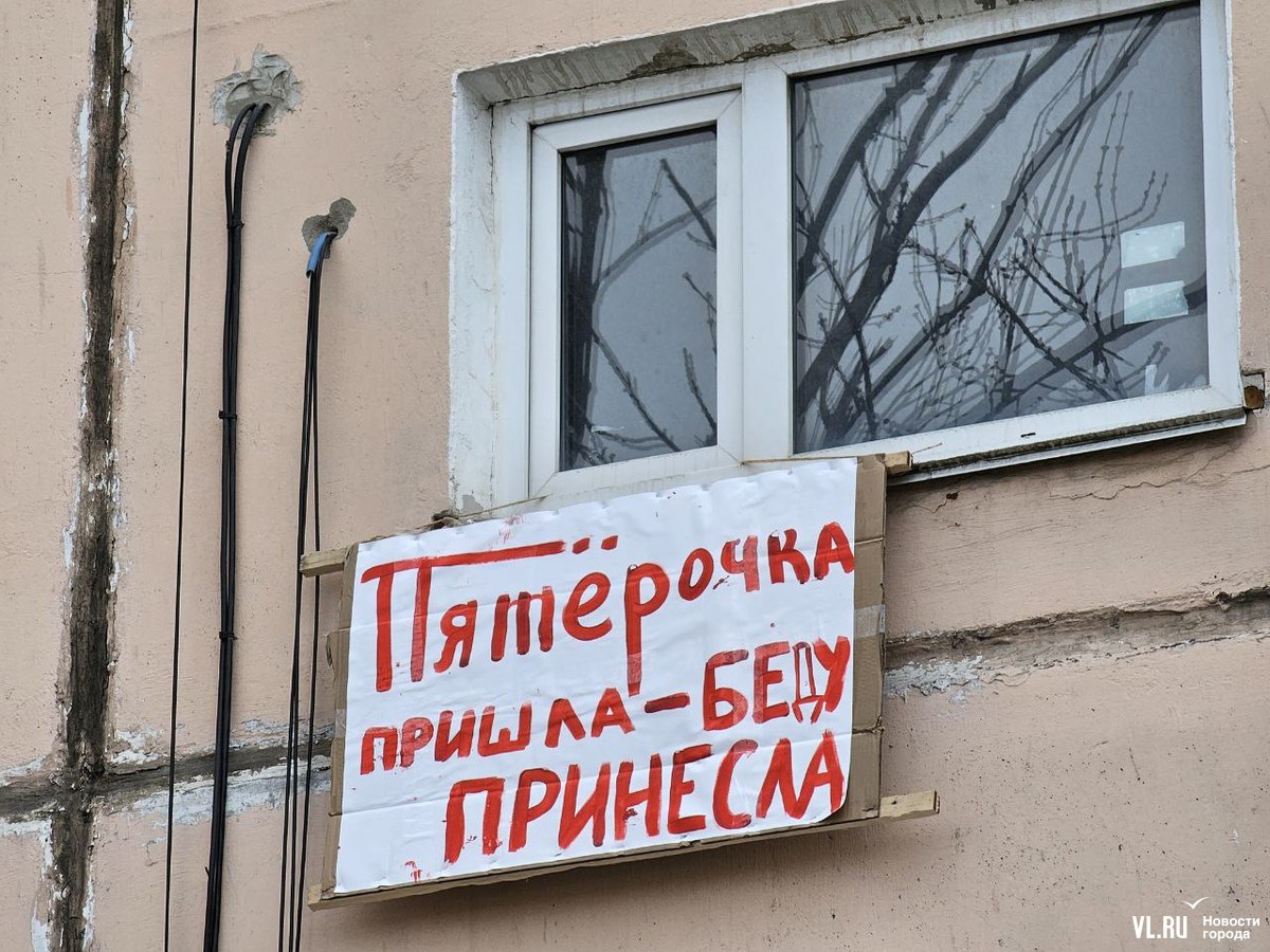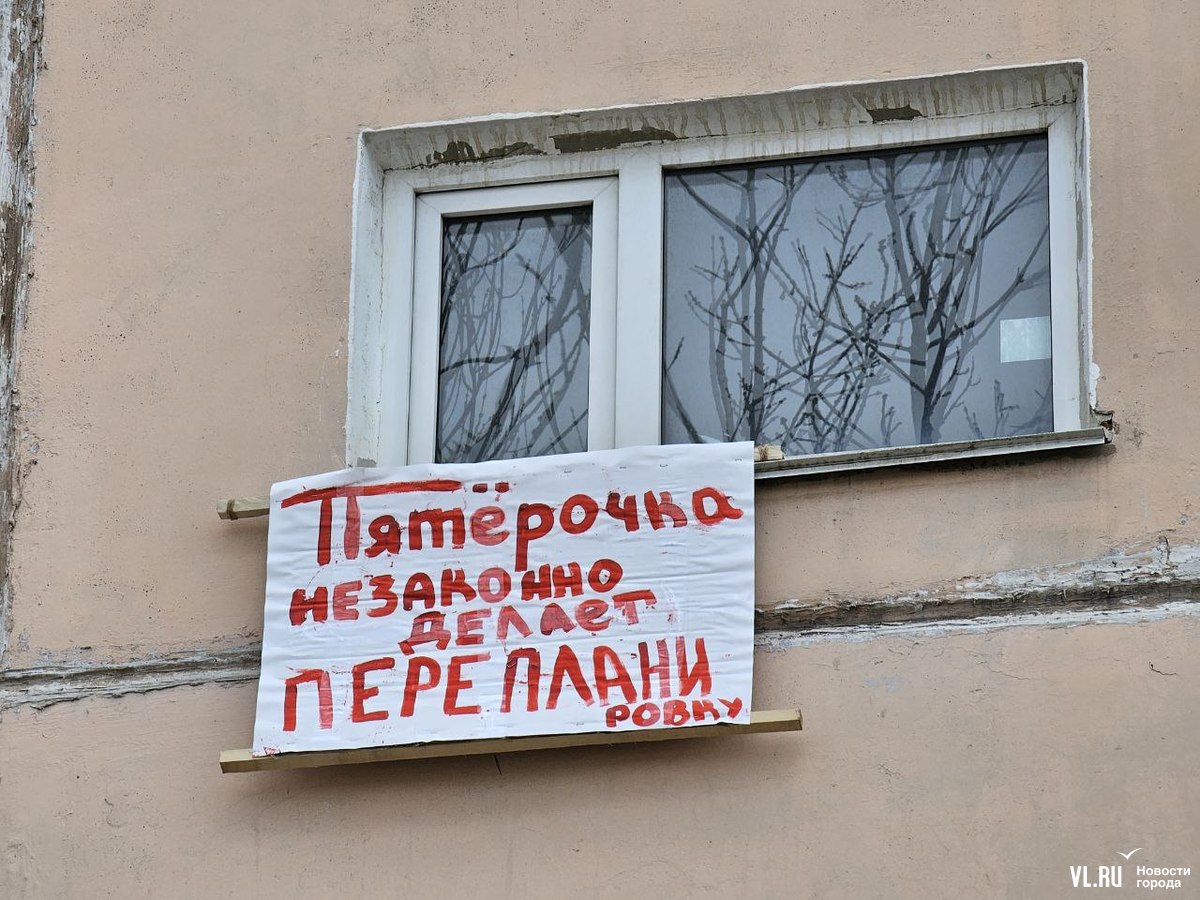 Жители пятиэтажки на Луговой, 58 во Владивостоке вывесили на фасаде дома плакаты против открытия в цокольном этаже магазина «Пятёрочка». По их словам, жильцы отказались согласовать предпринимателям работы, но они всё равно начались, строители якобы снесли несколько стенок, после чего в некоторых квартирах появились трещины. Жилищная инспекция уже проверяла объект и даже зафиксировала несогласованную перепланировку. Но вряд ли это помешает открытию магазина.