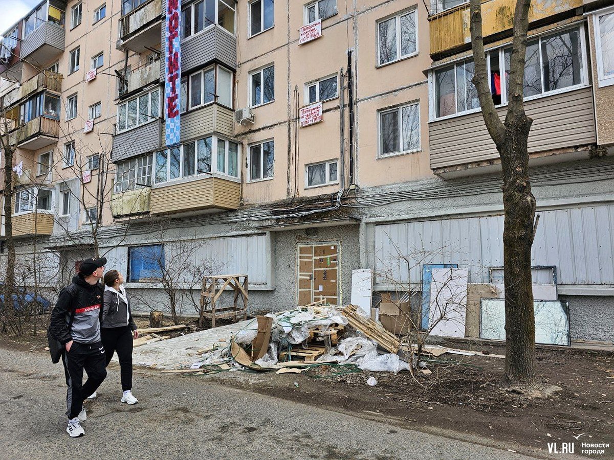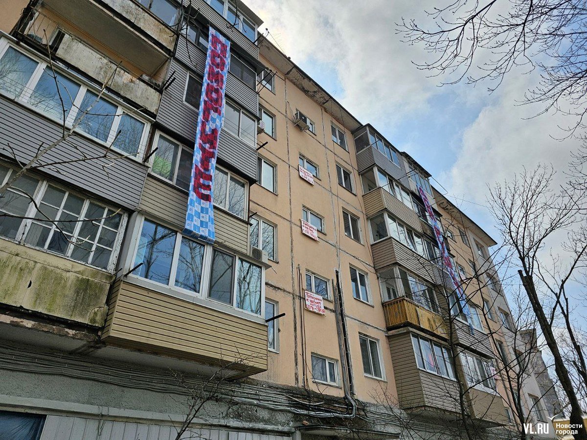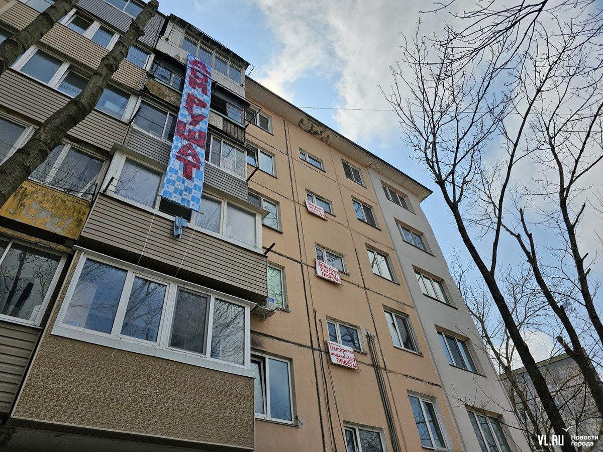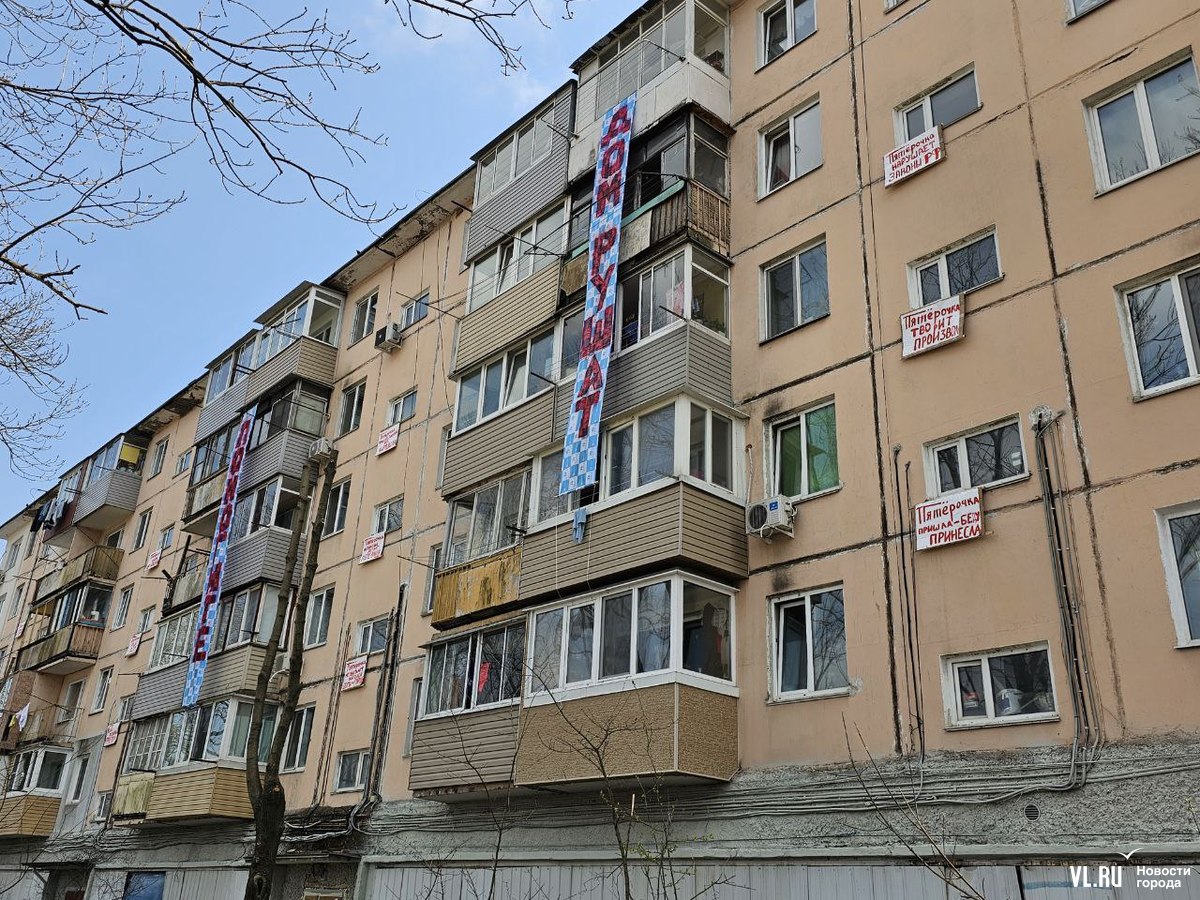 Жители пятиэтажки на Луговой, 58 во Владивостоке вывесили на фасаде дома плакаты против открытия в цокольном этаже магазина «Пятёрочка». По их словам, жильцы отказались согласовать предпринимателям работы, но они всё равно начались, строители якобы снесли несколько стенок, после чего в некоторых квартирах появились трещины. Жилищная инспекция уже проверяла объект и даже зафиксировала несогласованную перепланировку. Но вряд ли это помешает открытию магазина.