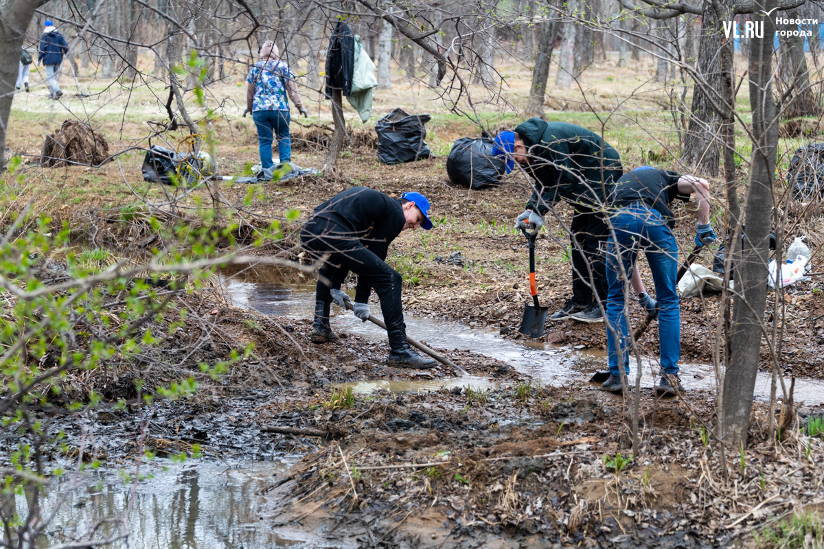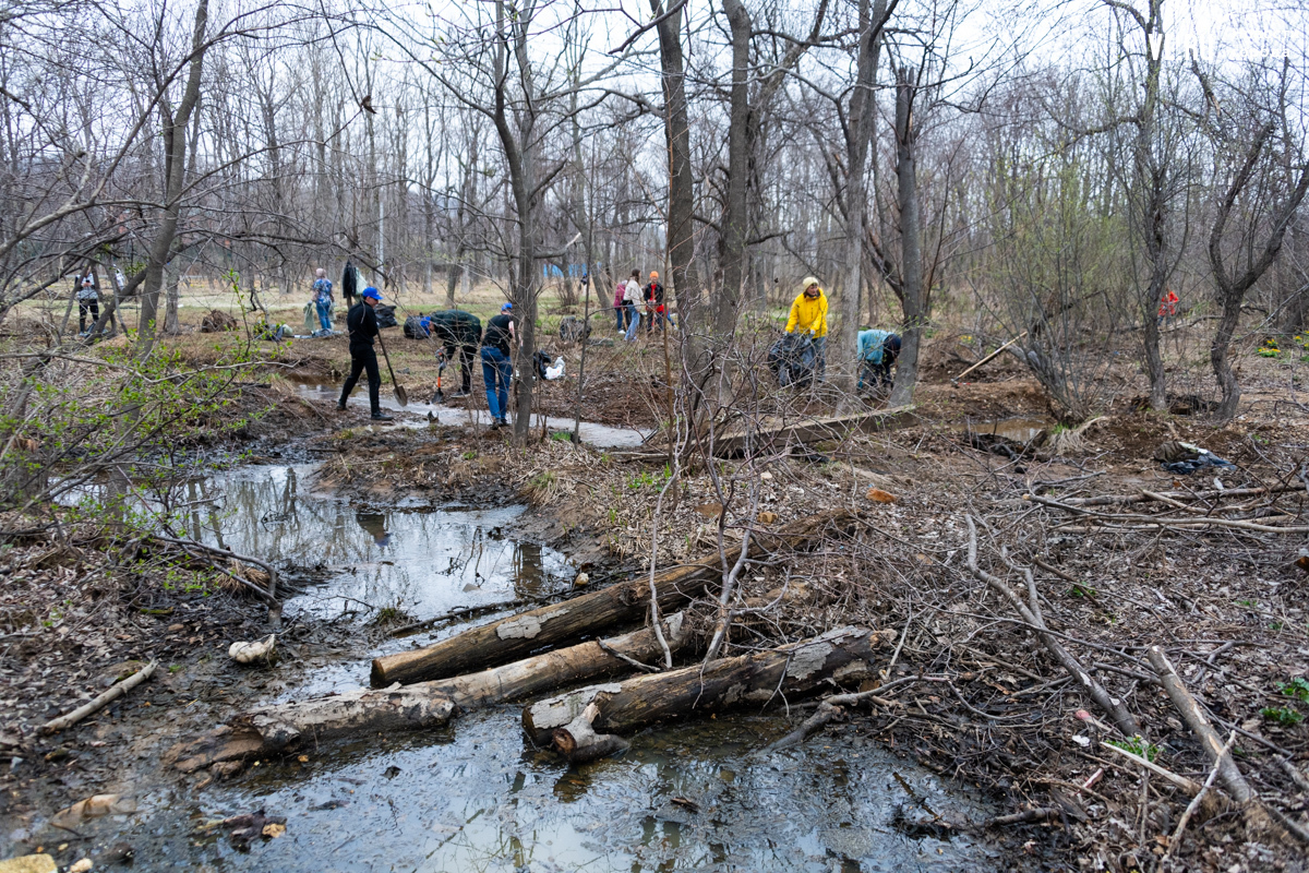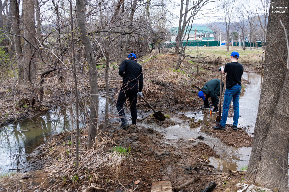 В воскресенье, 21 апреля, студенты-волонтёры и преподаватели Тихоокеанского государственного медицинского университета приняли участие в субботнике на протоке Солёной, где обитают краснокнижные утки-мандаринки. Местные активисты обратились к вузу за помощью, чтобы очистить впадающий в протоку ручей от ила и мусора и дать ему свободно обновлять воду. За сегодняшний день на участке волонтёры убрали валежник и топляк, создающий запруды.