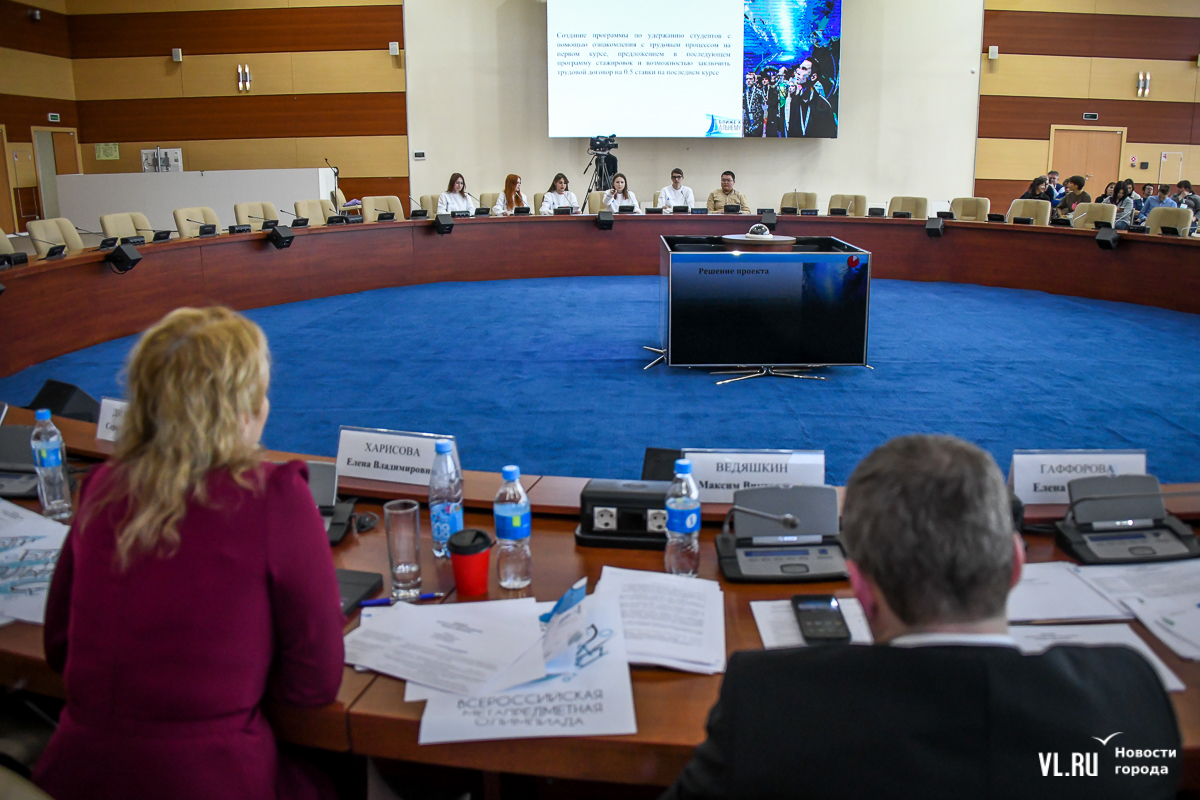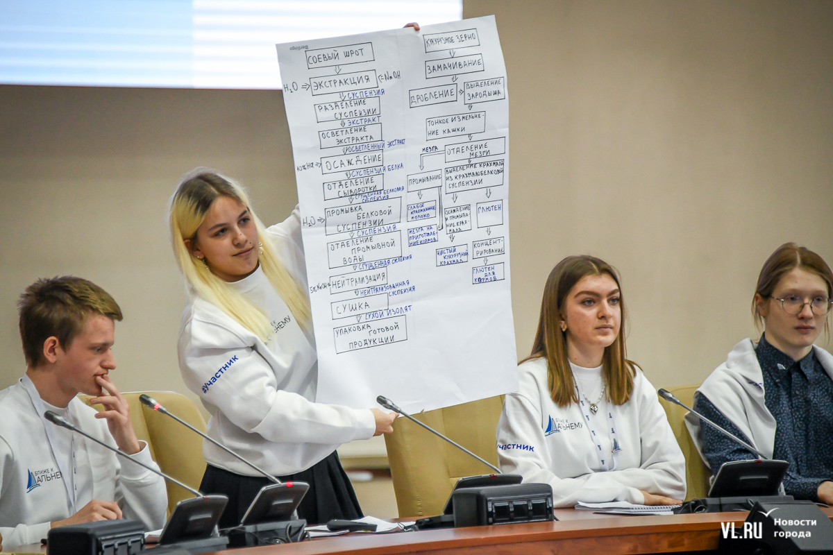 Олимпиада проходит седьмой год подряд – в этот раз участие в ней приняли рекордное количество школьников – почти 700 000 человек. Среди них отобрали 47 финалистов, которых объединили в 8 команд для решения кейсов в сферах сельского хозяйства, территориального управления, туризма и других. Защита проектов, над которыми ребята работали около недели, происходила за круглым столом одного из конференц-залов ДВФУ. Финал выглядел серьёзно – ребята не просто рассказали о том, что сделали в команде за последнюю неделю – они выделяли плюсы и минусы своей идеи, целевую аудиторию и стейкхолдеров (заинтересованные стороны), объяснили, как будет распределяться бюджет при реализации проекта.