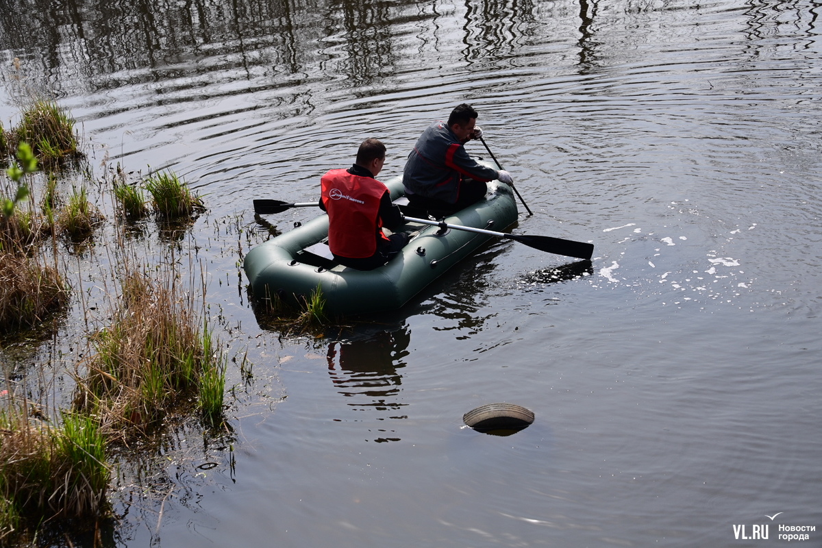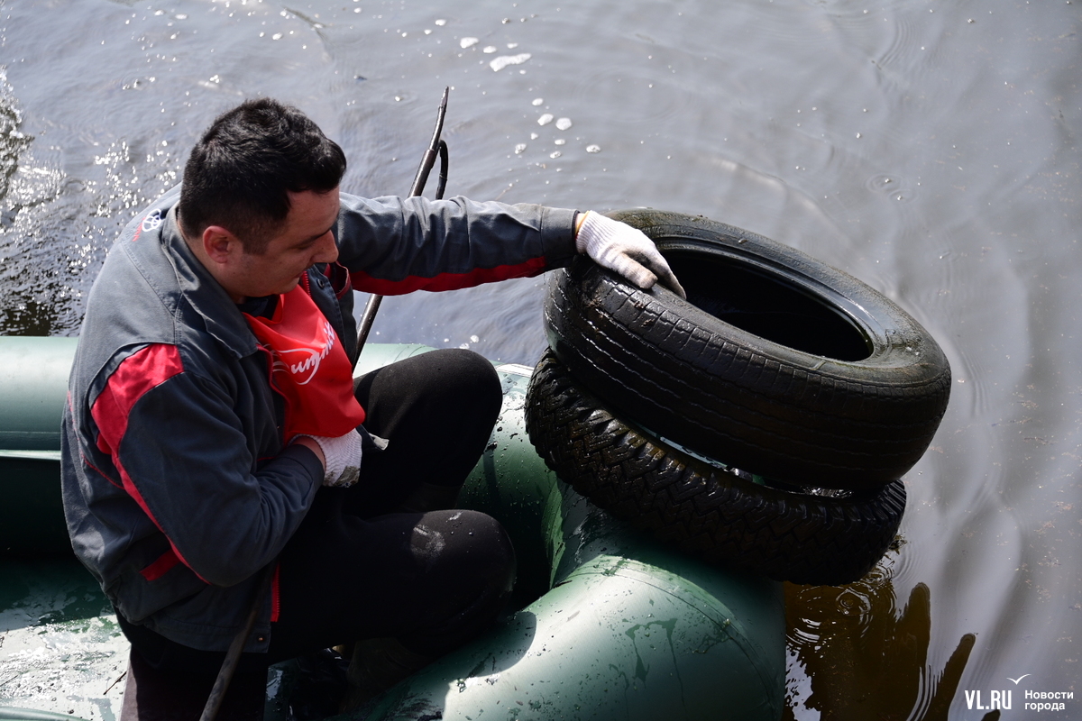 На этот раз наводить порядок приехала компания «Саммит Моторс Владивосток». Одни – надувают резиновую лодку, другие – достают банки с краской. Субботник на протоке Солёной в самом разгаре. В весенние месяцы горожане и даже гости из других регионов приезжают сюда понаблюдать за водоплавающими птицами, но нередко оставляют за собой мусор и разрушения. Любят по вечерам бывать здесь и местные, чтобы распивать спиртные напитки, что приводит к плавающим в воде стеклянным бутылкам. Но главная загадка водоёма – старые шины, которые ежегодно здесь вылавливают десятками.