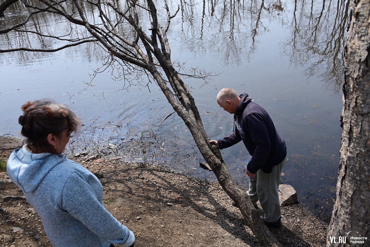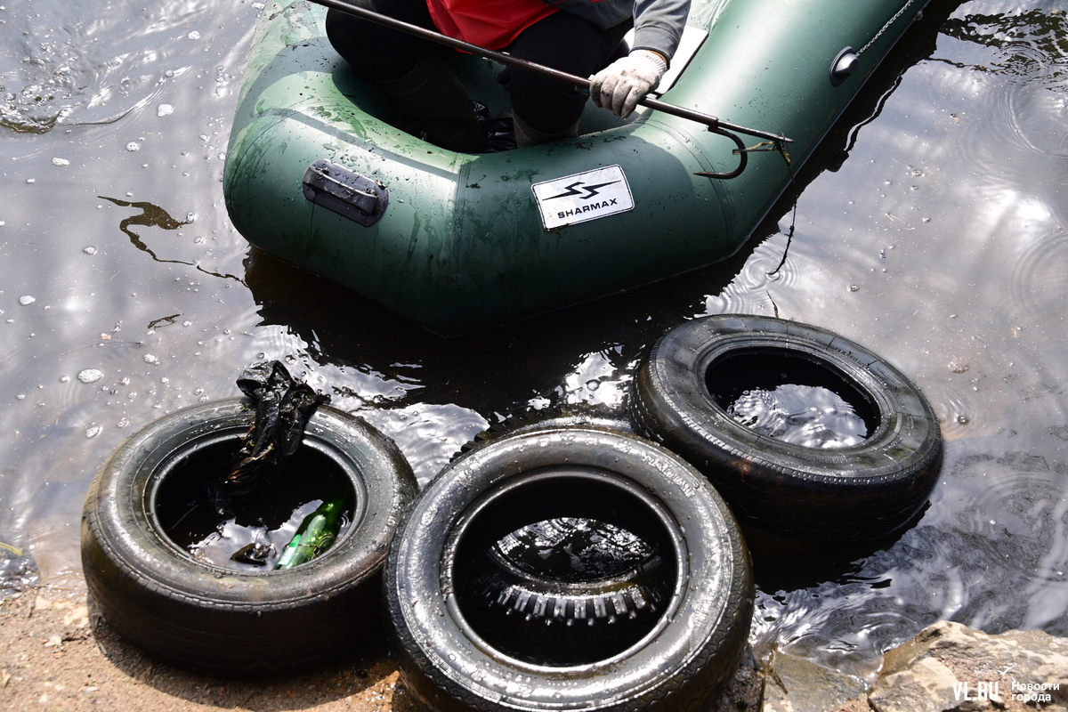 – Мне самой интересно, откуда здесь покрышки появляются. У меня порой складывается впечатление, что они там на дне просто размножаются. Сами по себе. Биологический процесс какой-то идёт. А если серьёзно – то, скорее всего, с гаражей близлежащих. Ну ещё в том году у нас было наводнение – может быть, водой нанесло… Но ведь каждый раз одно и то же! Мы пять лет вылавливаем эти старые покрышки, и каждый год они появляются. В этом вот мы уже собрали с Приречного леса и с района Сахарного ручья где-то штук 25 или 30, и жители тоже собирали в лесу. Количество не меняется, не уменьшается, сразу скажу. Прям стабильное количество – 50-100 шин мы ежегодно из водоёма вылавливаем. Не знаю, что с этим делать, – говорит Елена Холявко, председатель ТОС «Спутник Владивостока».