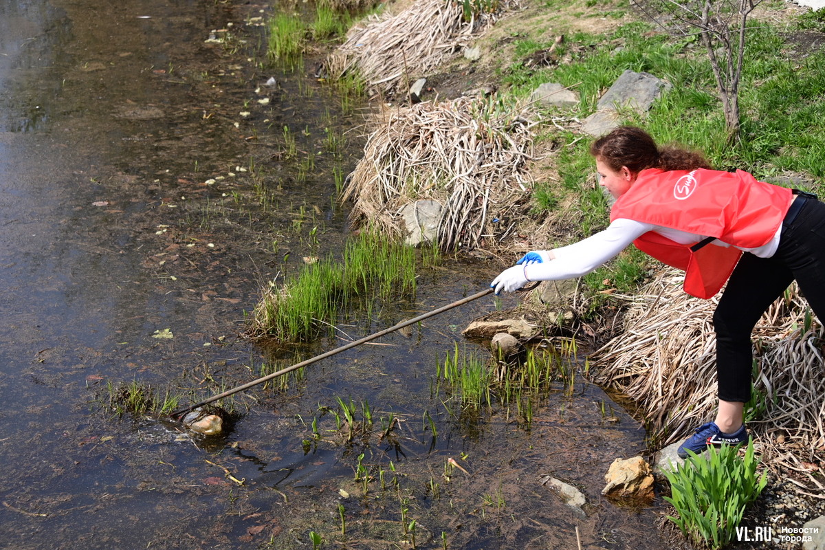 Очередной субботник в районе протоки Солёной с её краснокнижными утками-мандаринками состоялся во Владивостоке в пятницу, 26 апреля. Каждый год водоём оказывается завален шинами и прочим мусором, а благоустройство разрушают неизвестные граждане. Жители надеются на установку видеонаблюдения или хотя бы на более частые визиты участкового, который мог бы приструнить вандалов.