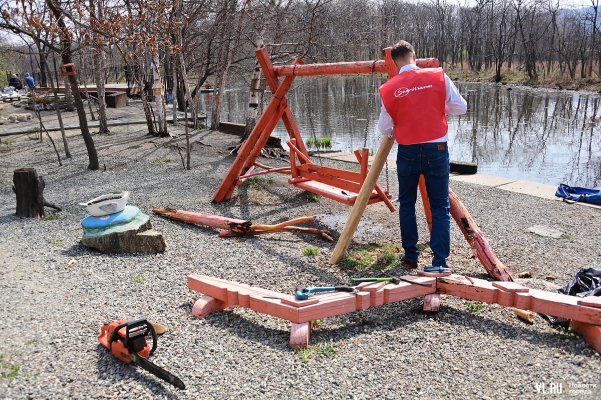 – Мы сюда приезжаем четвёртый год, и в целом здесь стало гораздо чище. Но опять шин много в озере – обычно мы где-то целый кузов хайлакса (Toyota Hilux. – Прим. ред.) шин вытаскиваем, потом сдаём их и утилизируем. Также мы заранее забирали лавочку, починили, сейчас установим. Покрасим элементы благоустройства, починим качели и установим красочный стенд, посвящённый обитателям Солёной протоки, – рассказала Анастасия Пушуева, ведущий специалист отдела рекламы и маркетинга компании «Summit Motors Владивосток».