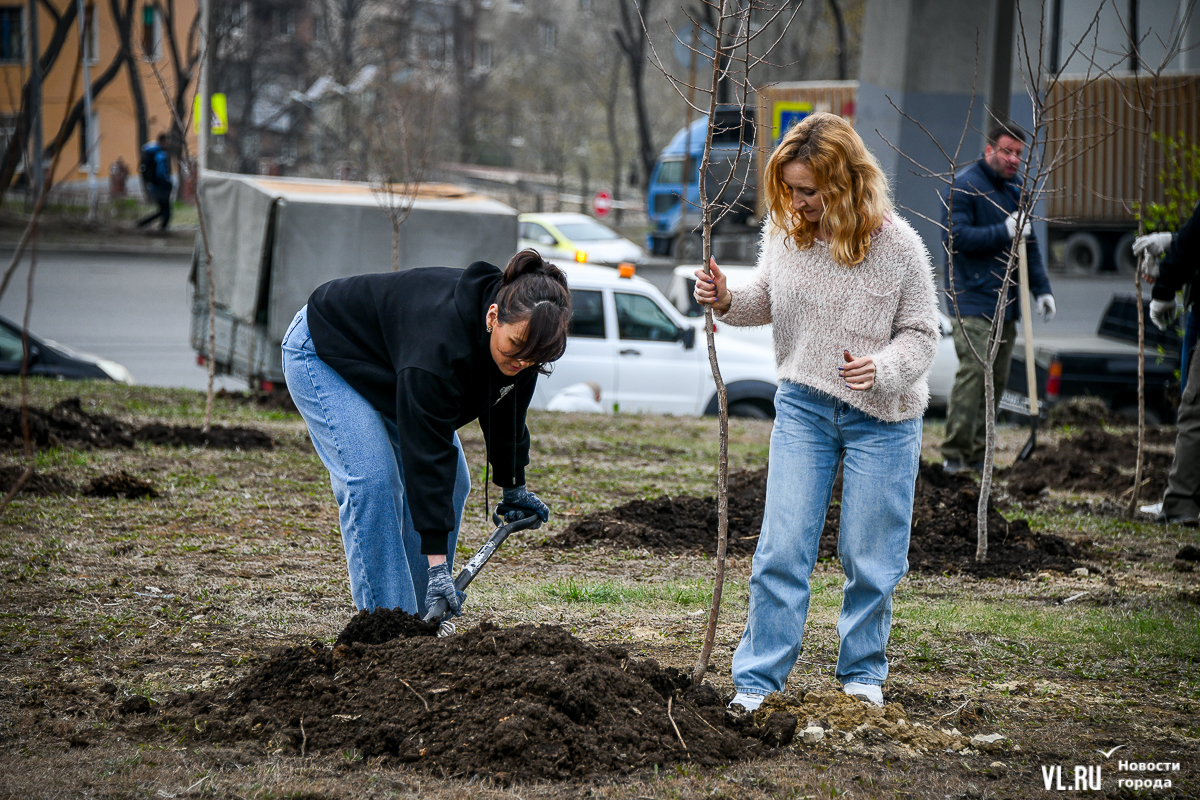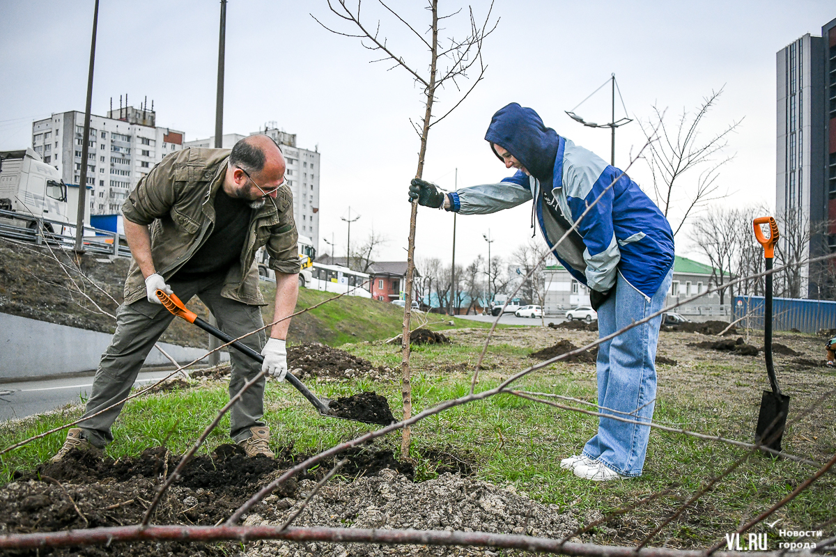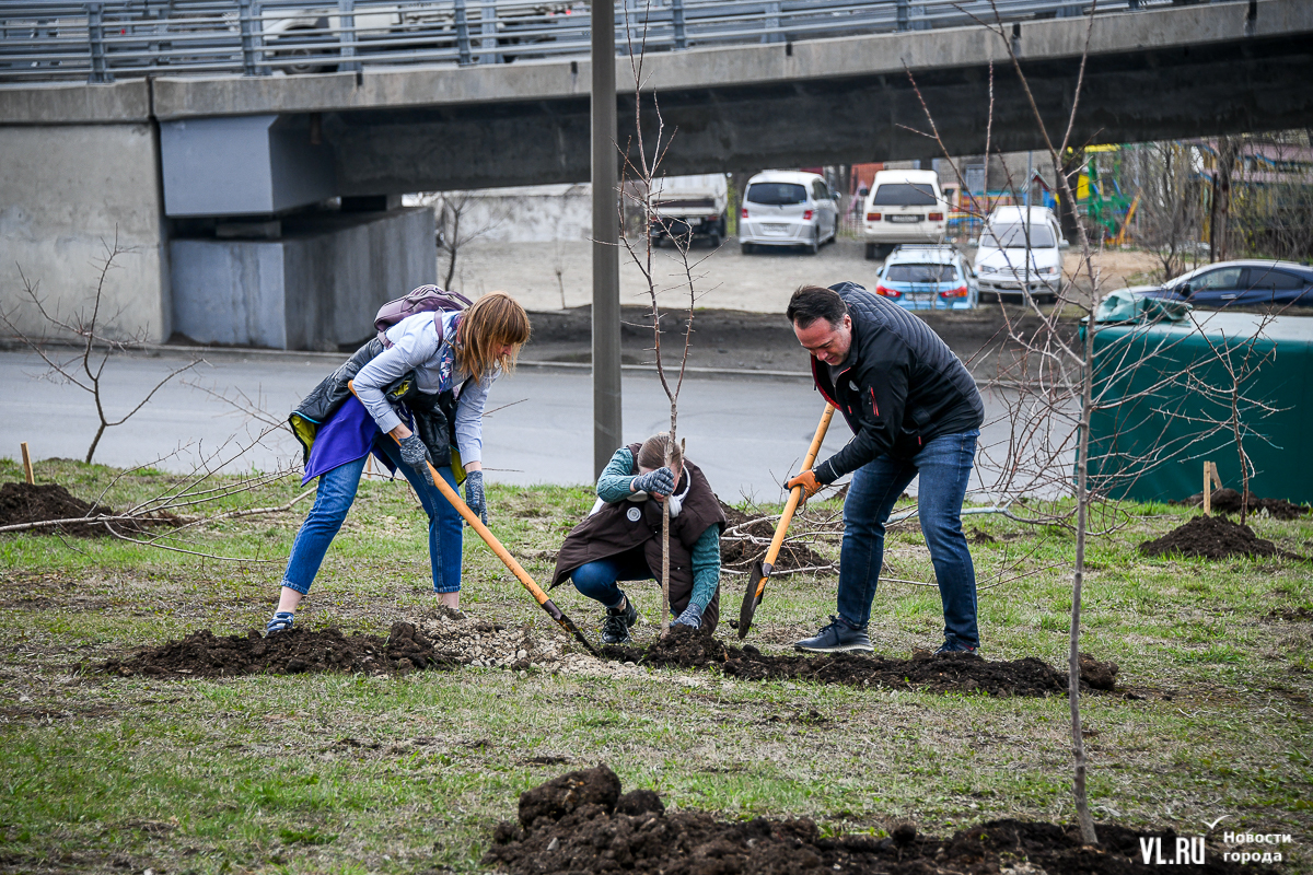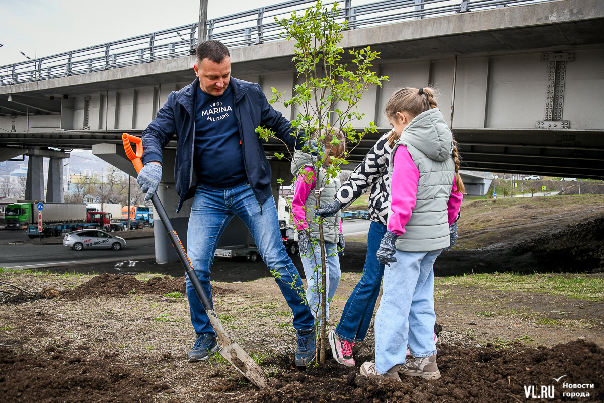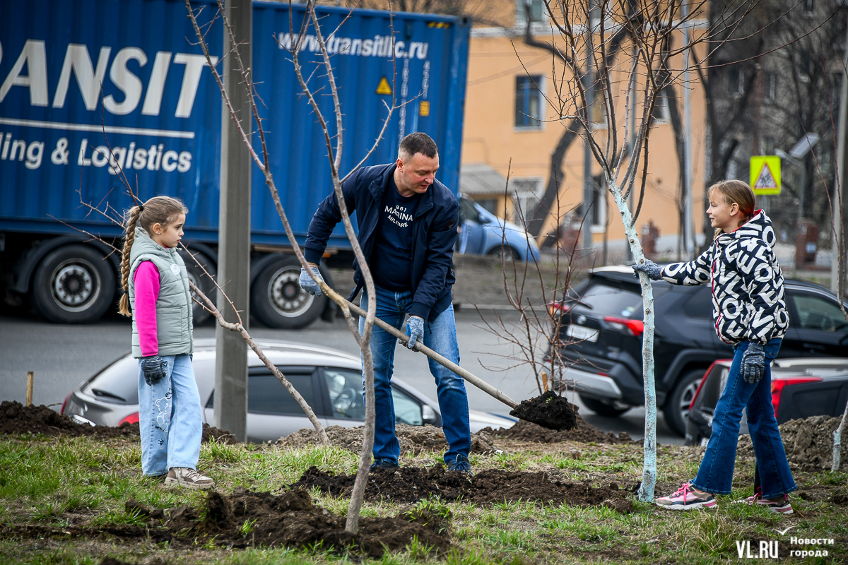 В 8 утра в субботу, 27 апреля, неподалёку от Мариинского театра развернулась масштабная акция по высадке деревьев на пустыре в рамках Дня озеленения. Основными участниками стали многодетные семьи, но принять участие могли все желающие. Своё дерево посадил сегодня и глава города, а всего за утро тут появилось 180 саженцев из приморских питомников. Теперь здесь должны вырасти абрикосы, сливы, форзиции и символ Владивостока рододендрон. А озеленительные акции пройдут сегодня в разных местах города.