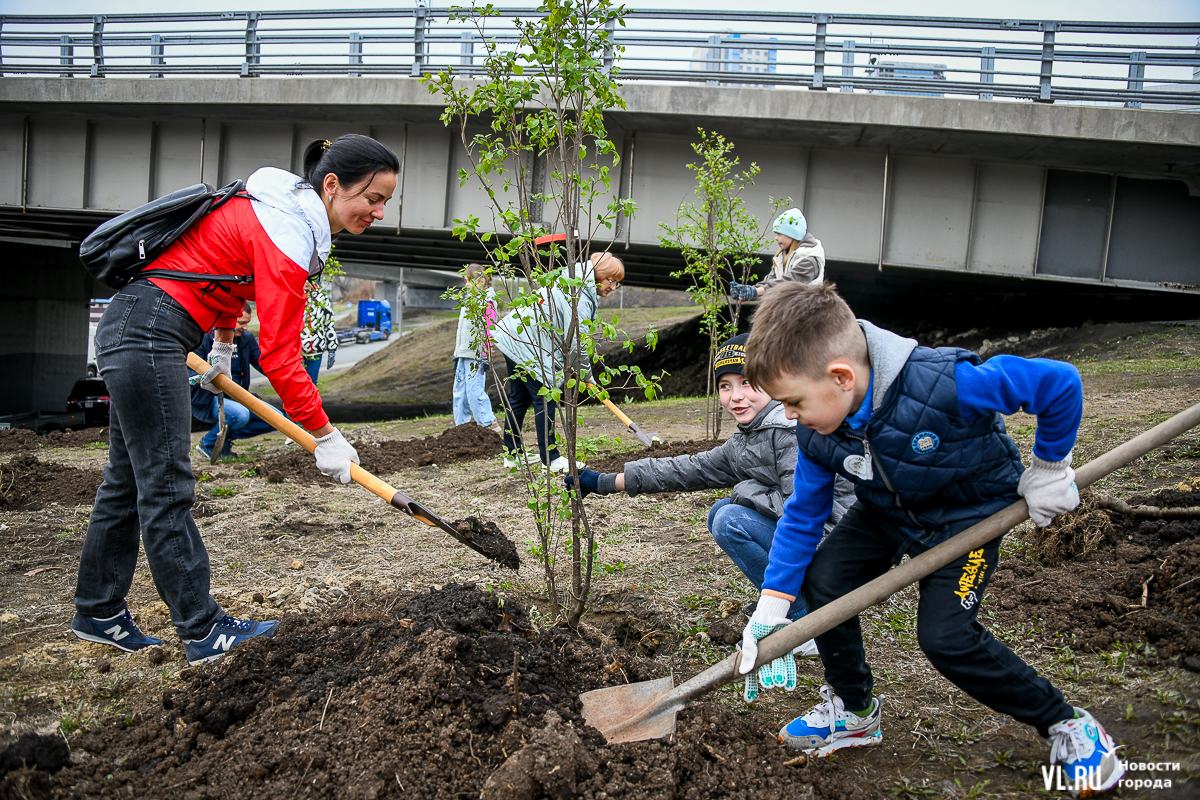 «Такую акцию мы проводим не первый раз, два года назад высаживали хвойные растения, потом долго искали красивое и примечательное место, чтобы повторить. Сегодня мы высаживаем очень много цветущих деревьев. Нужно немного подождать, и когда пройдёт время, здесь появится сад, который будет радовать горожан, – рассказала руководитель АНО «Многодетное Приморье» Наталья Ковальчук, – Всегда казалось, что здесь какой-то пустырь и чего-то не хватает, мост построили, а зелени мало».