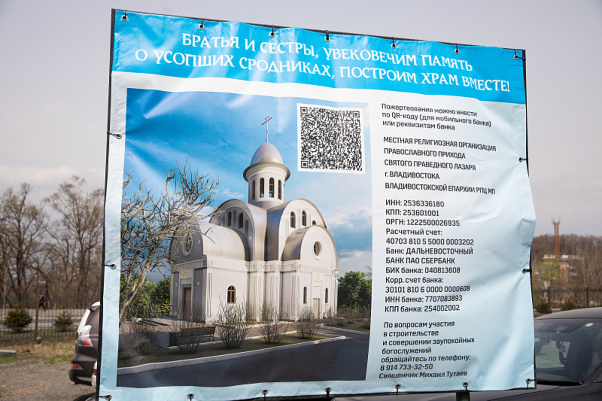 Год назад на пустыре возле колумбария на Лесном кладбище заложили памятную плиту и установили крест на месте, где будет построен храм Святого праведного Лазаря. Сегодня власти Владивостока сообщили, что строительство планируют начать в ближайшее время – уже готова проектная документация и получено разрешение на проведение работ. Вскоре будет сформирована строительная площадка. Храм одновременно сможет принимать до 90 человек.