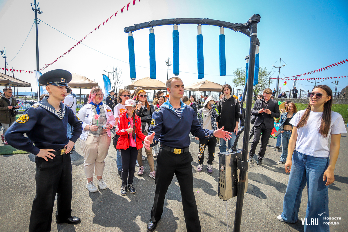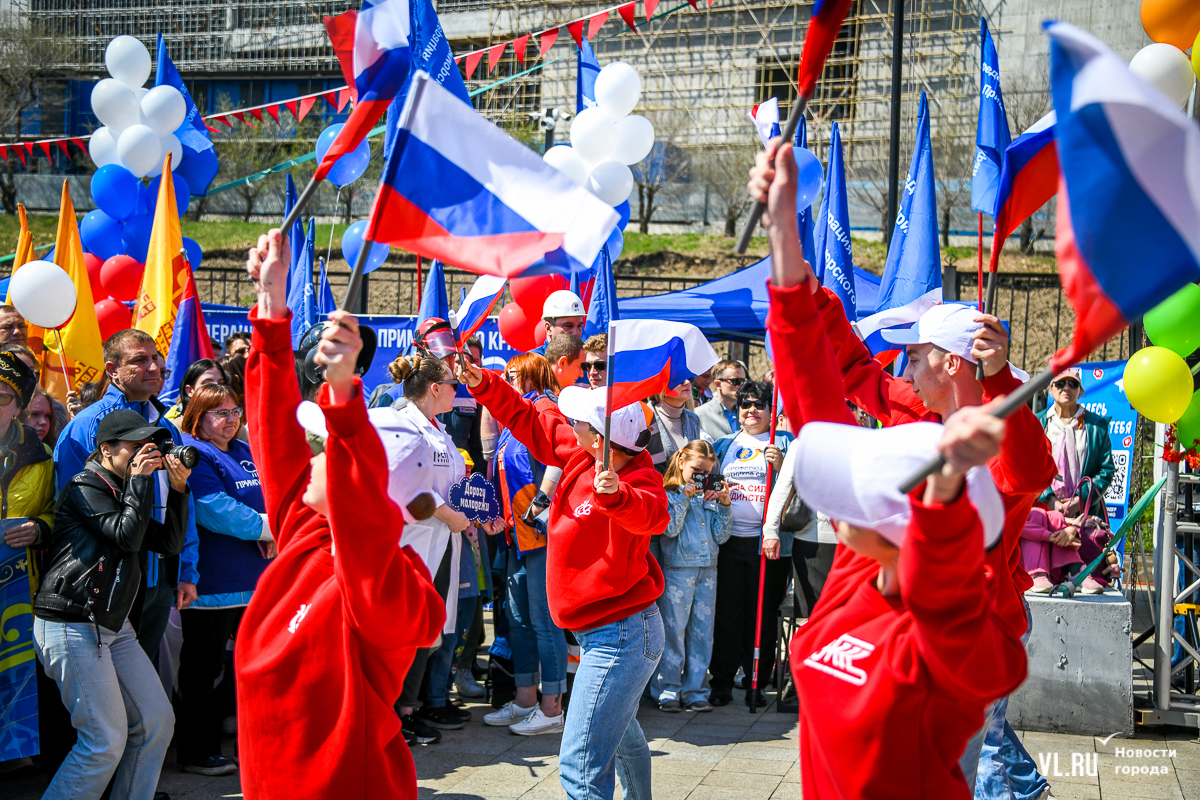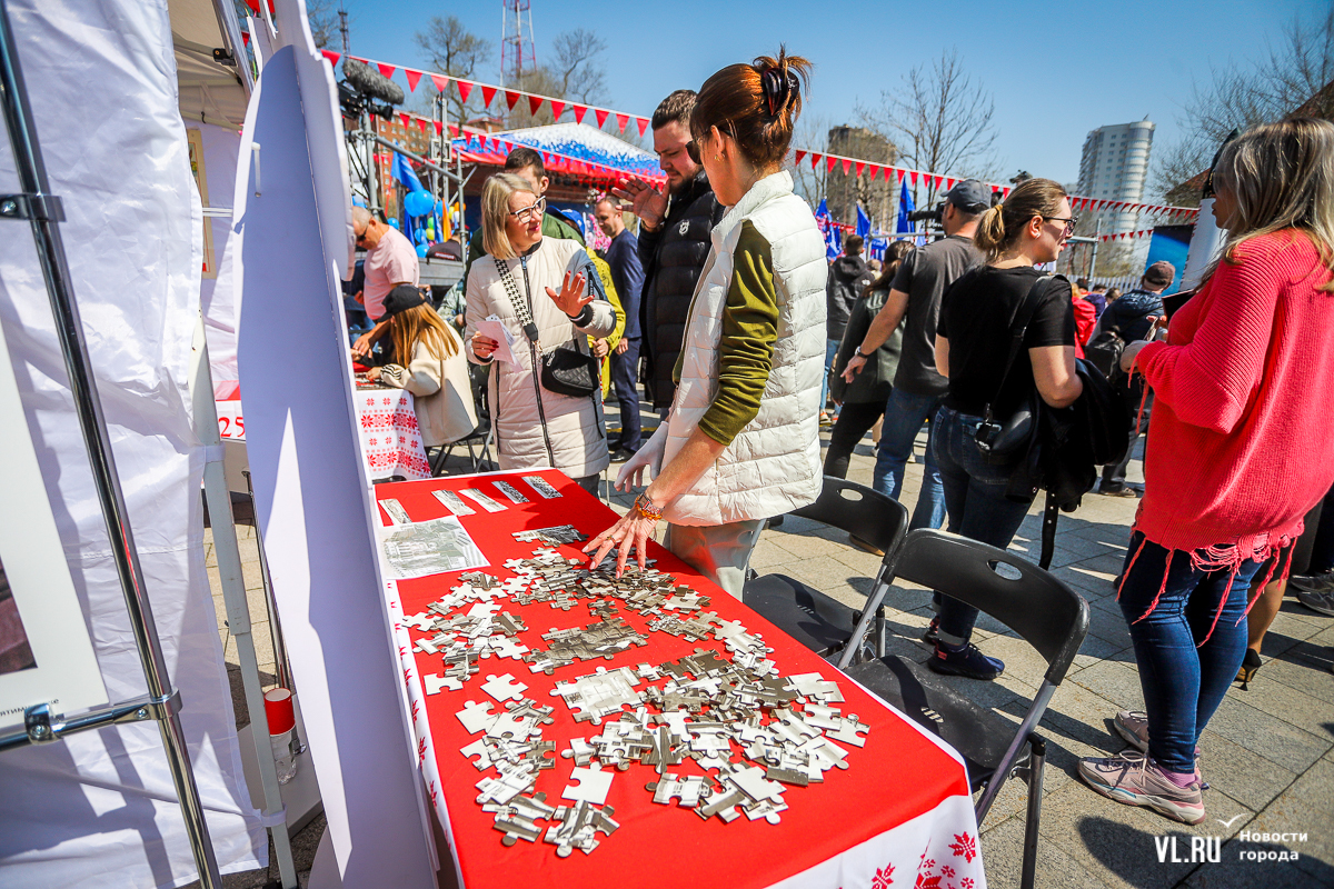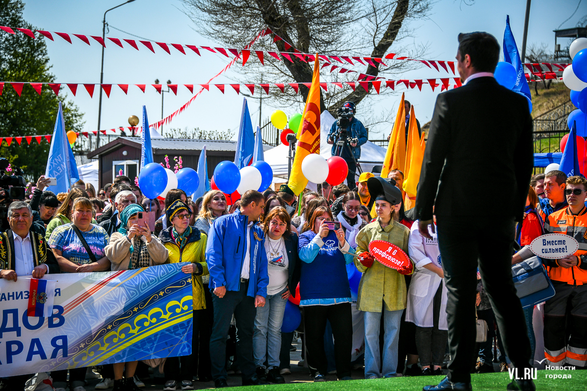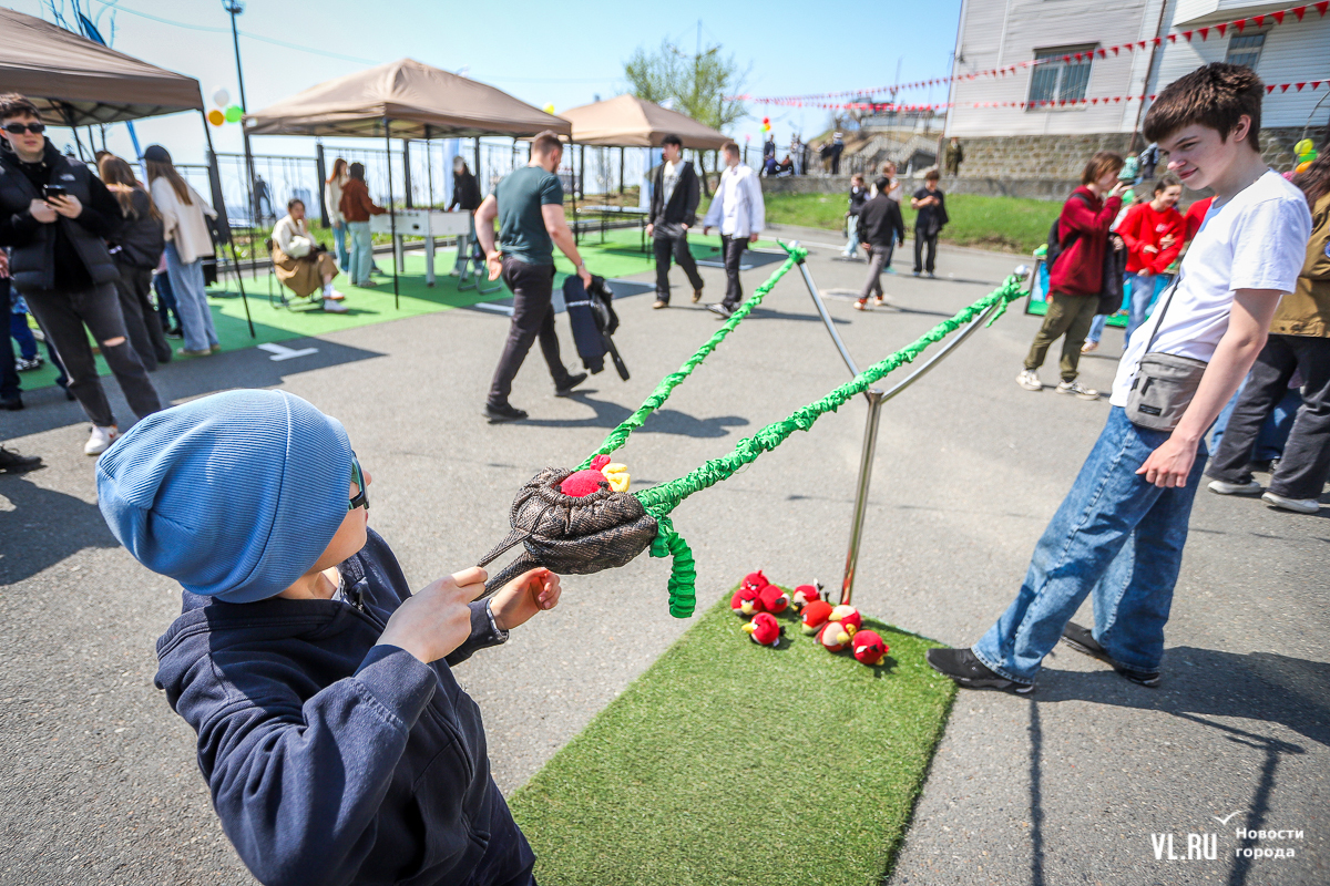 Основной площадкой празднования 1 Мая во Владивостоке сегодня стал парк «Россия – Моя история». Для гостей приготовили несколько фотозон в советском стиле, стендов с историей праздника, концерт, ГТО и деревянный посад, оставшийся после Масленицы. А в молодёжном пространстве рядом с парком можно было сыграть в настольные игры, разработанные по приморским мотивам.