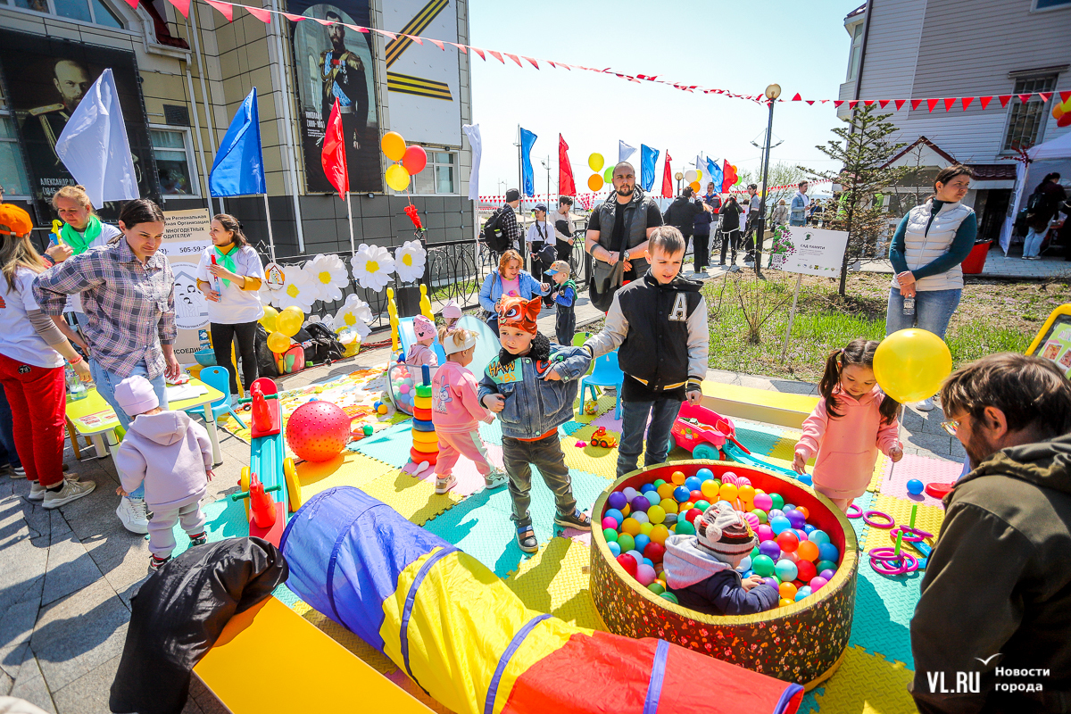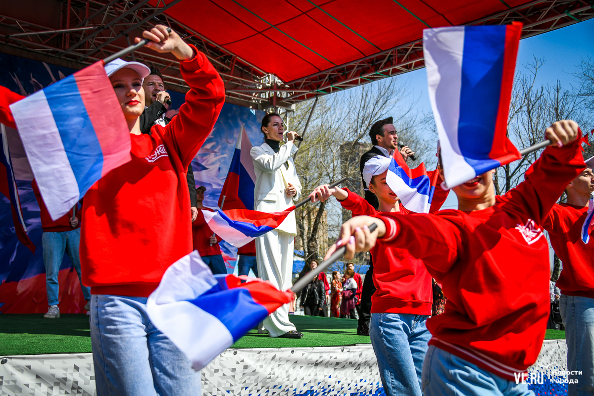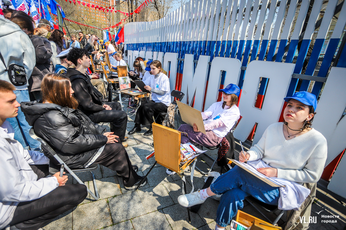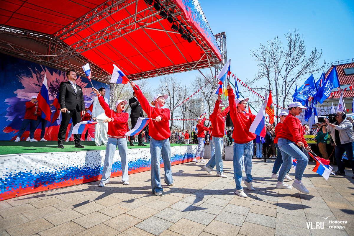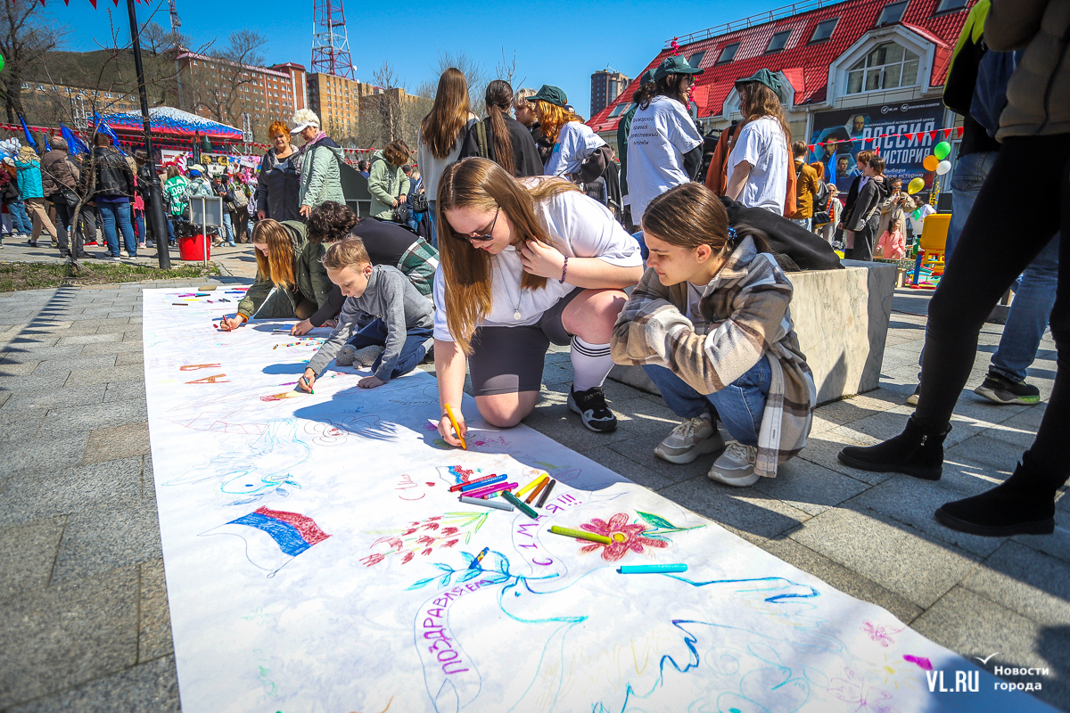 Основной площадкой празднования 1 Мая во Владивостоке сегодня стал парк «Россия – Моя история». Для гостей приготовили несколько фотозон в советском стиле, стендов с историей праздника, концерт, ГТО и деревянный посад, оставшийся после Масленицы. А в молодёжном пространстве рядом с парком можно было сыграть в настольные игры, разработанные по приморским мотивам.