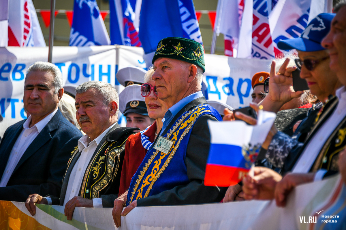 К началу праздника в парк пришли обычные горожане, представители политических партий, работники ДЭК, РЖД, МЧС, Примгидромета, учреждений культуры и социальной сферы, дорожники, рыбаки, фермеры, казаки и бойцы студотрядов. Торжественная часть проходила у главного входа, со стороны Гоголя. На сцену поднялся губернатор Приморья Олег Кожемяко и обратился к гостям.