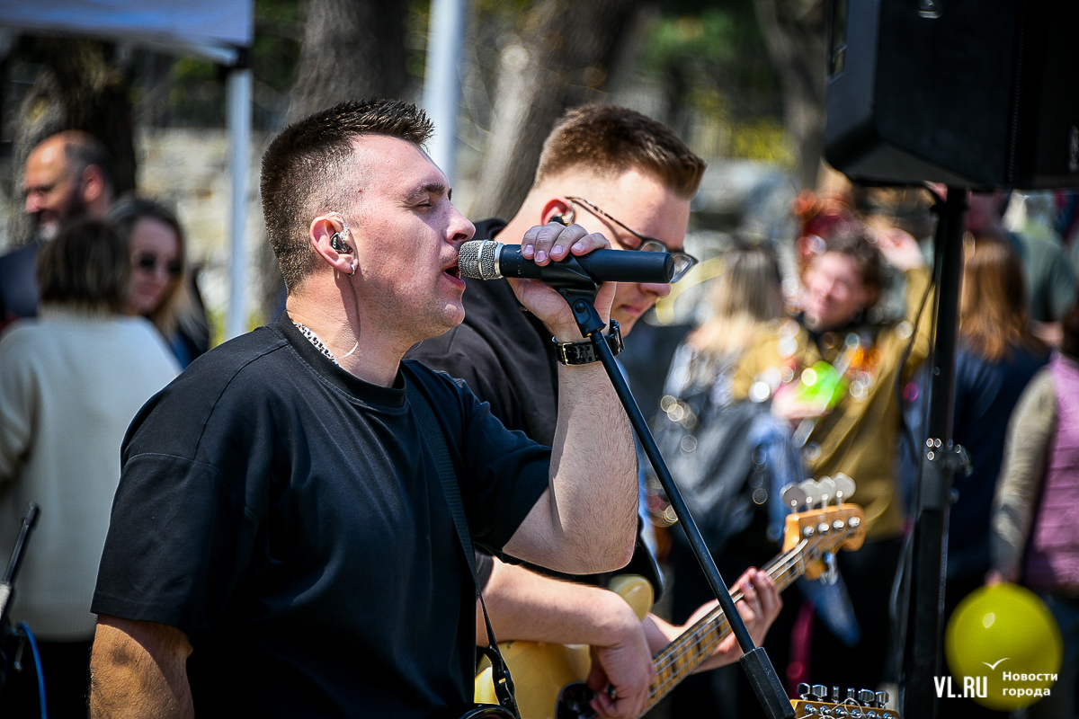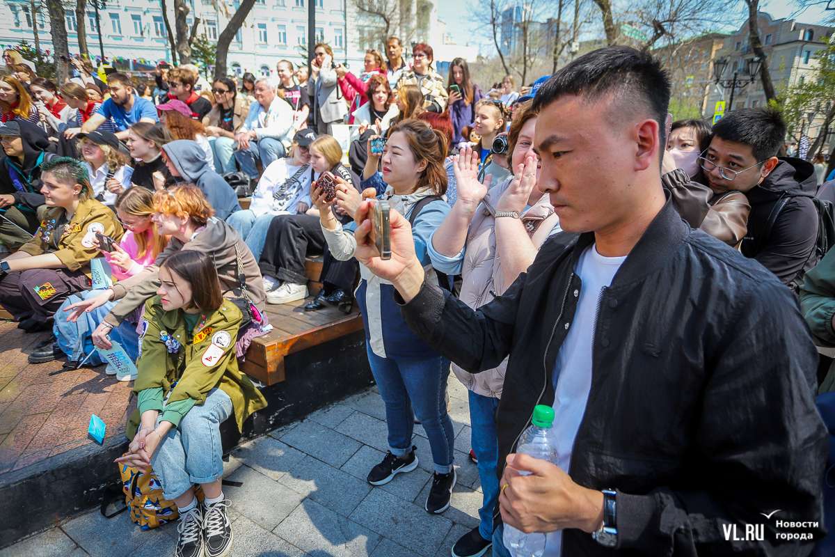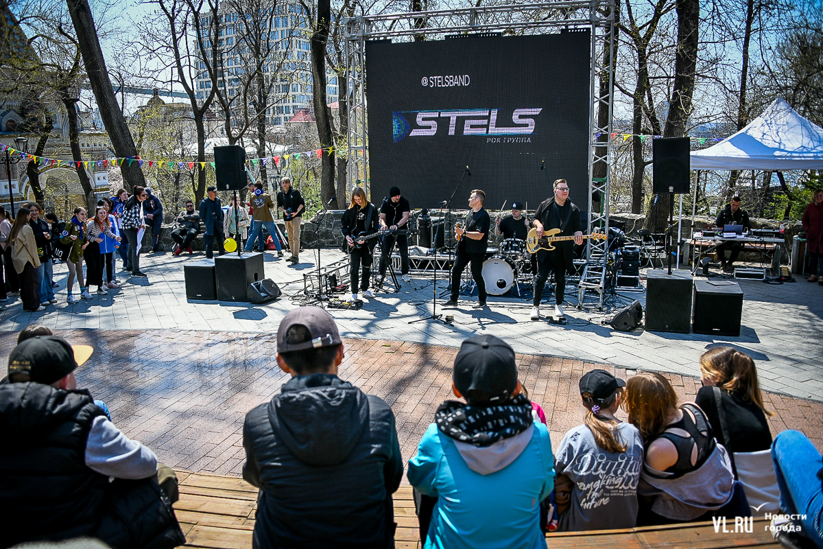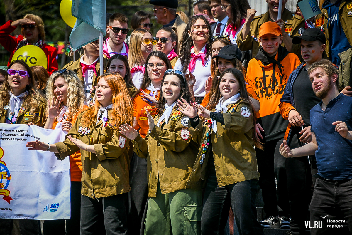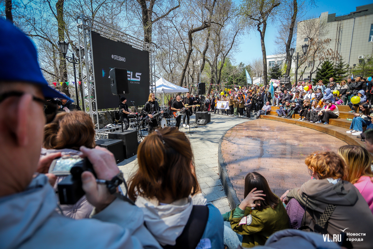 Празднование Первомая началось с выступлений студенческих отрядов – они пели популярные среди членов РСО песни, чередуя их с громкими возгласами «Мир! Труд! Май». Чуть позже на сцену вышла группа Stels – ребята в течение всего дня будут развлекать горожан каверами на известные песни. Рядом со сценой уже не протолкнуться – все подпевают хитам группы «Звери».