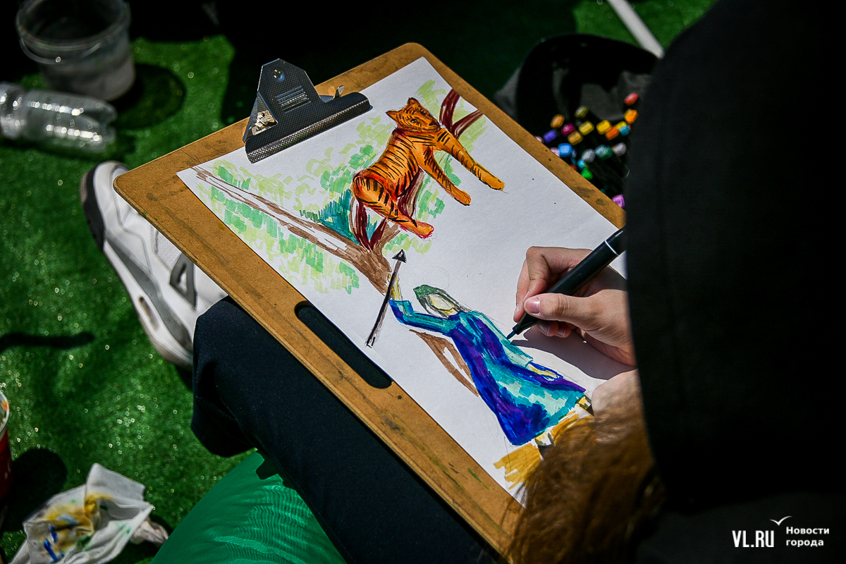 «Мы рисуем голубей в честь мира – это голуби мира. Нам раздали рисунки, и мы пытаемся их перерисовать», – объяснила юная художница Лиза.