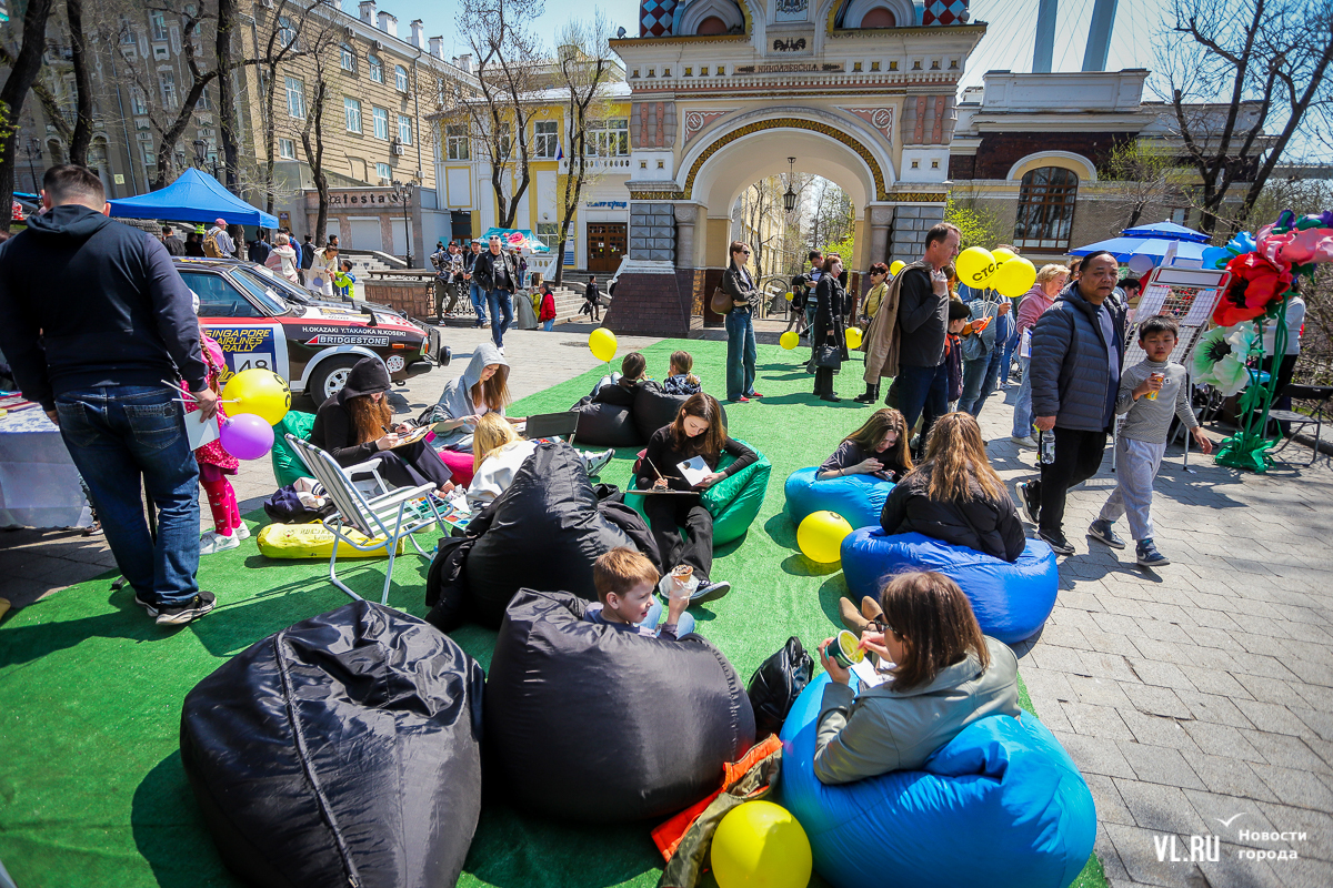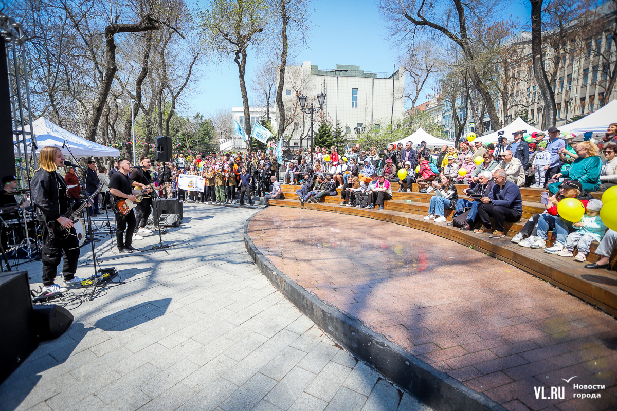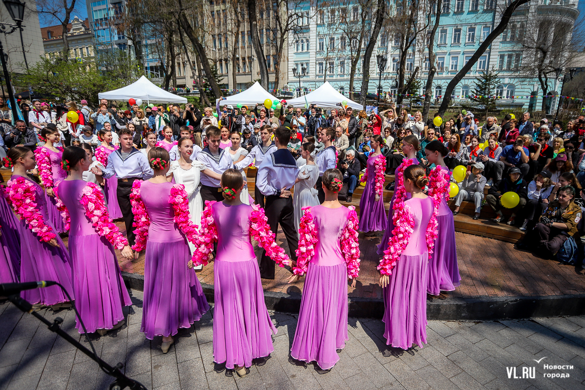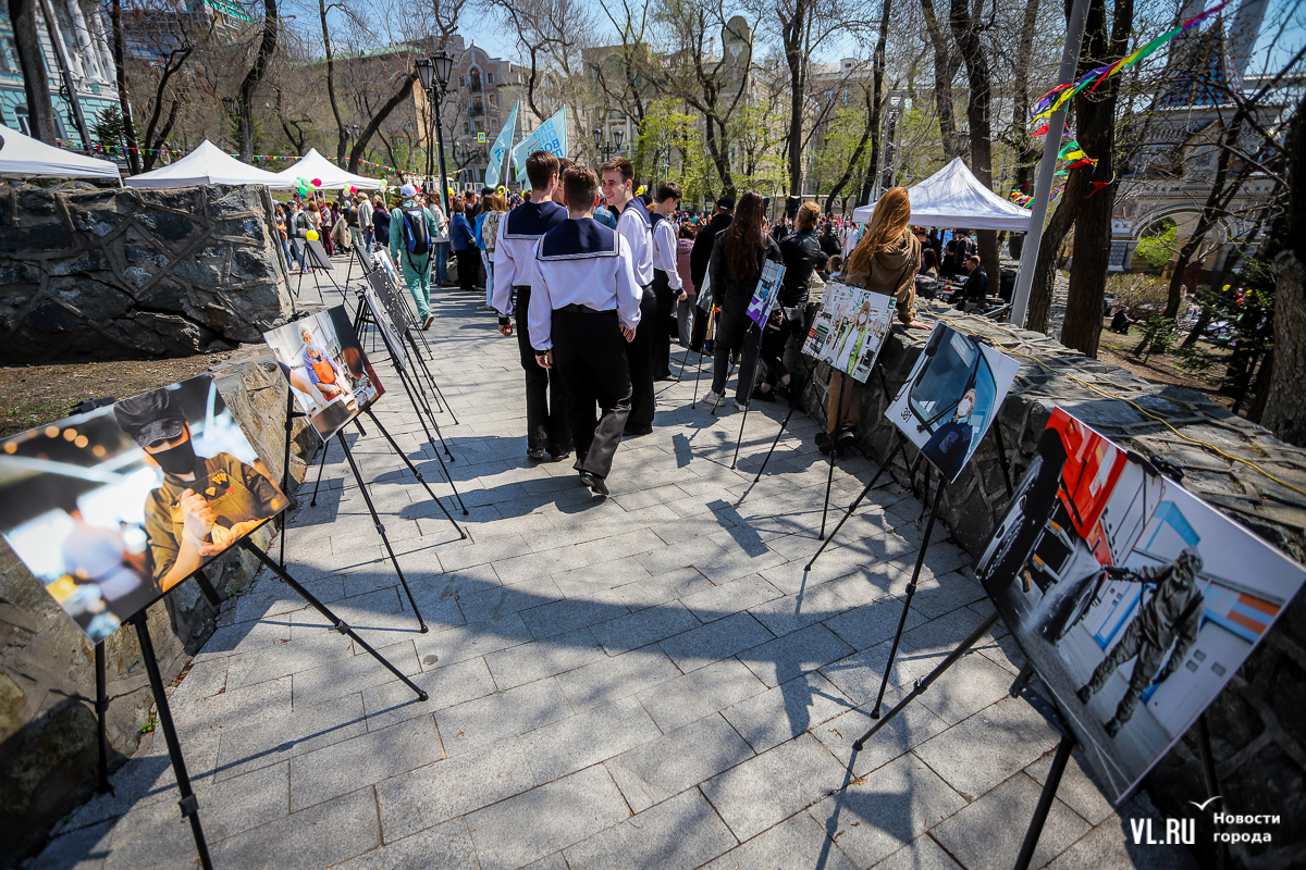В Адмиральском сквере сегодня празднуют 1 Мая. Со сцены доносятся «Мир! Труд! Май!» и песни студенческих отрядов. Дети и взрослые мастерят открытки с голубями и раскрашивают скворечники. Вокруг фонтана выстроились слесари, водители автобусов, врачи – они смотрят на горожан с фотографий выставки «Человек труда». Можно поучаствовать в спортивном ориентировании, нарисовать голубя рядом с Триумфальной аркой или просто прогуляться по скверу с воздушным шаром и мороженым в руках.