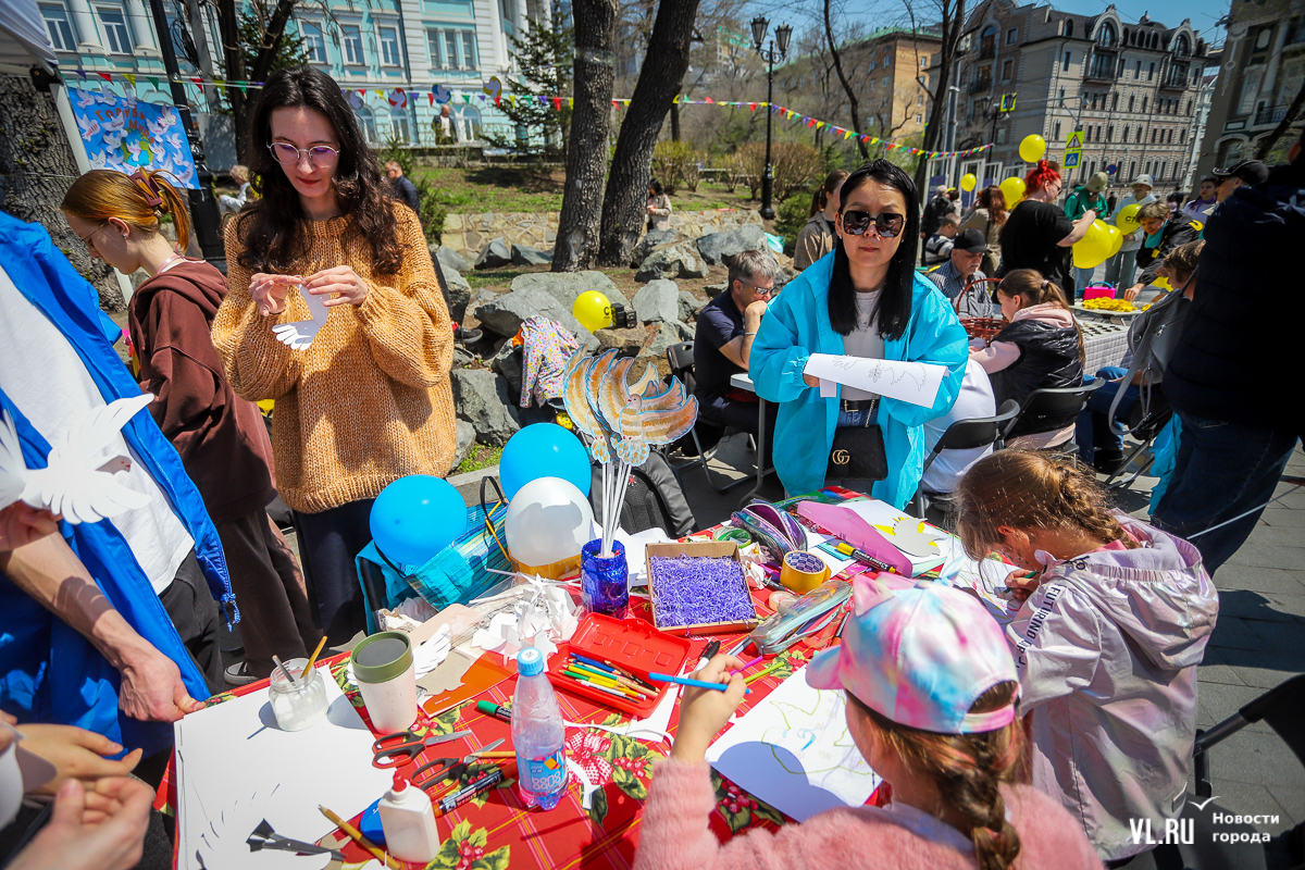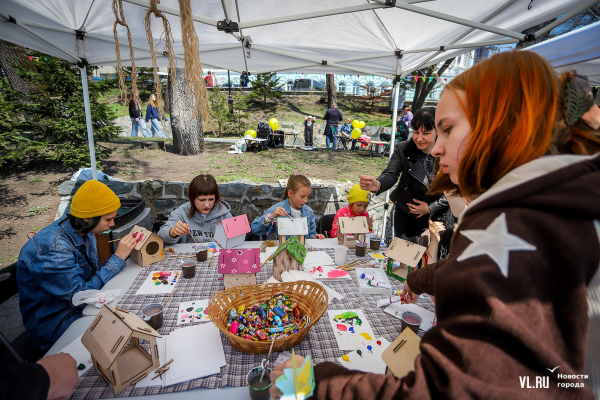 Желающих сделать открытку, скворечник или бумажного голубя тоже хватает – перед столами даже формируются небольшие очереди.