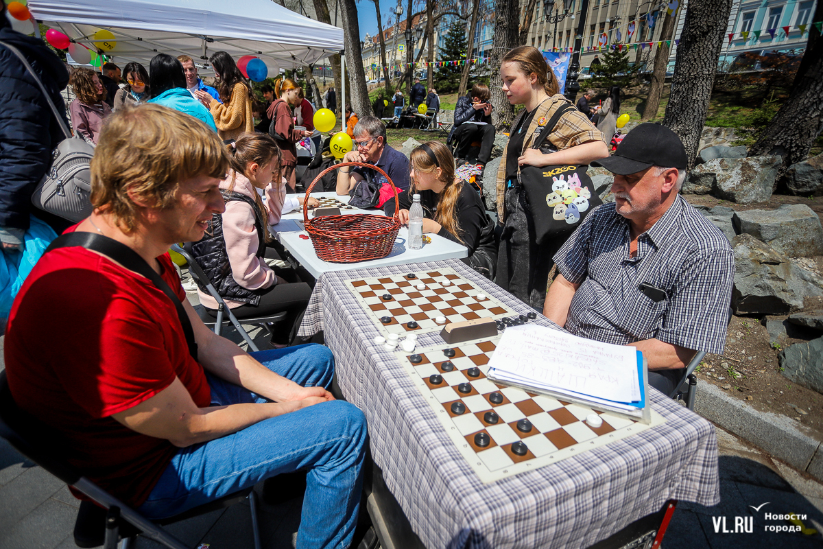 Неподалёку от фотовыставки можно сразиться в поединке на шахматной доске, сыграть в шашки, забрать один или целую охапку жёлтых шаров с названием известного телеканала или принять участие в спортивном ориентировании.