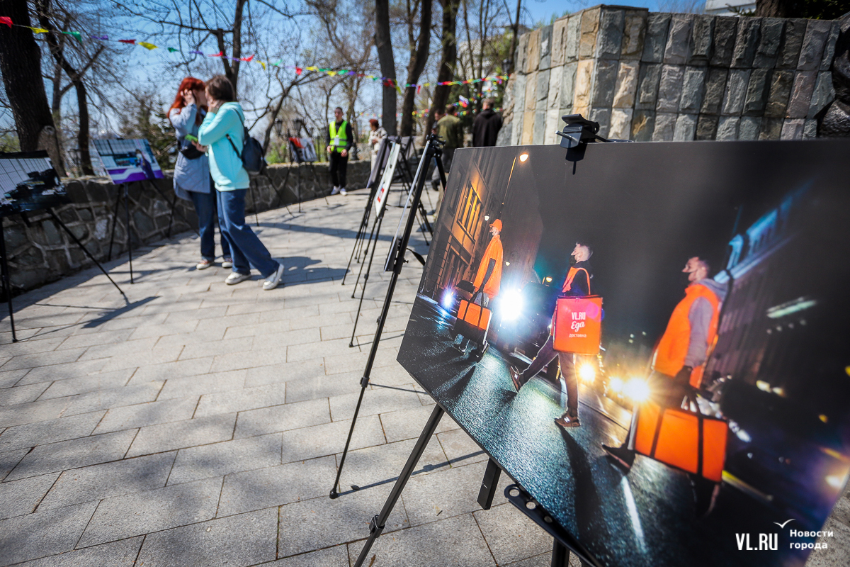 Прогуливаясь мимо столов с мастер-классами, сложно не заметить выстроенные вокруг фонтана фотографии. С них на посетителей мероприятия смотрят водители автобусов, доставщики, сварщики и учителя – все они являются частью выставки «Человек труда».