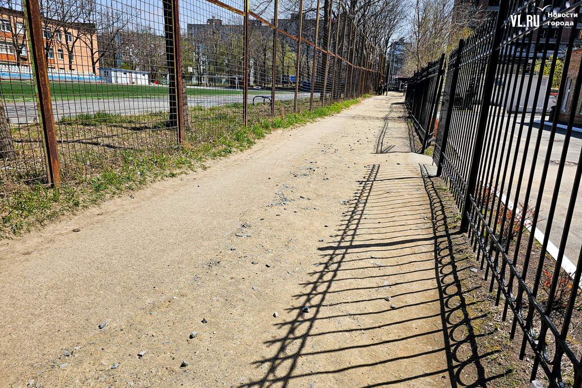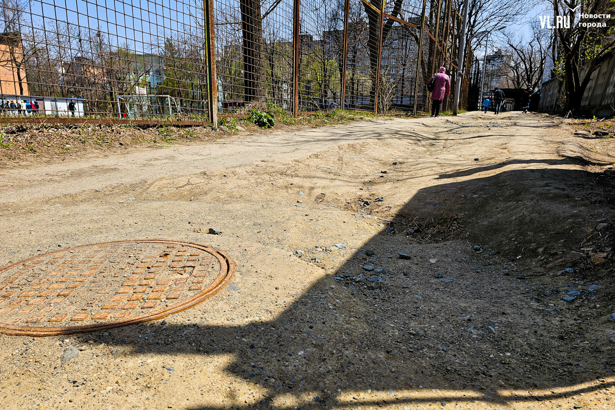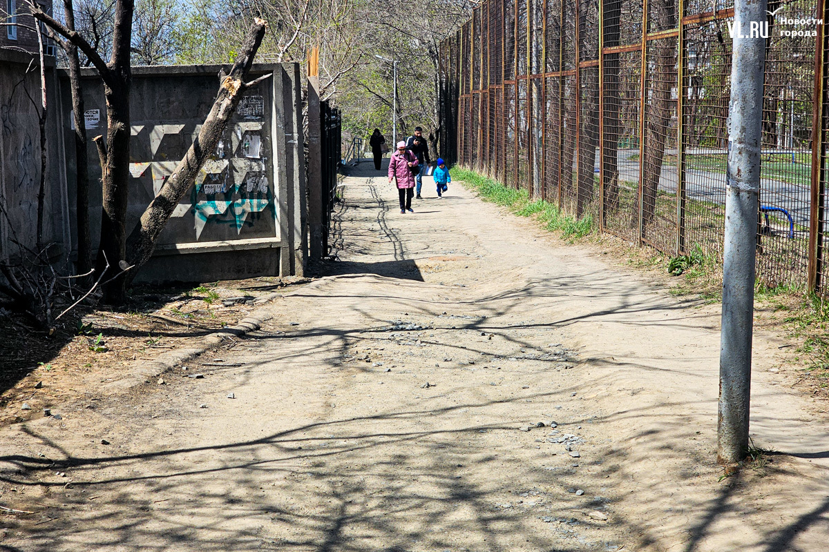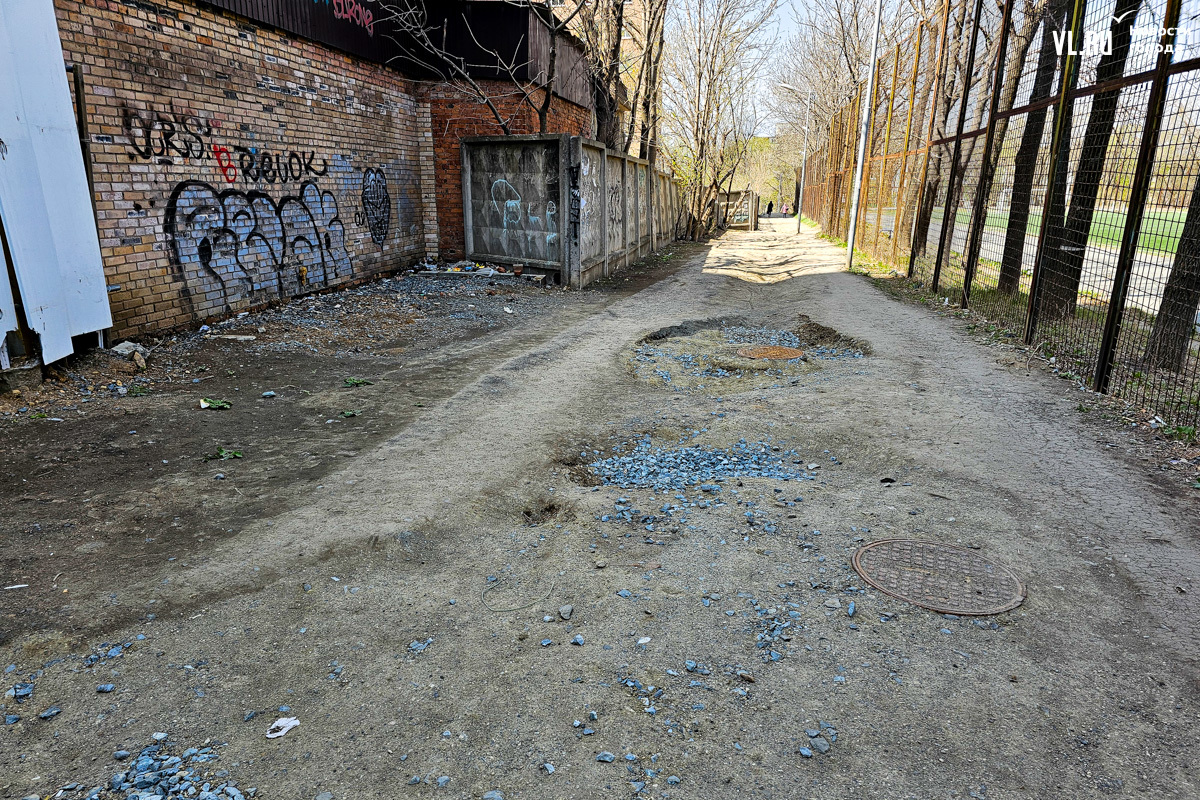 Удобный и короткий проход вдоль школы № 23 внезапно закрыли в январе. Здесь ООО «СЗ «ВладСтройГруп» тянуло ветку ливневой канализации для строящегося ЖК Legenda. Местным жителям пришлось обходить школу вокруг, делая лишние полкилометра. С наступлением весны открылась и другая проблема. Грунт, которым подрядчики закидали траншею, стал проседать и сильно пылить. А во время осадков здесь образуется одна большая грязевая лужа. Благоустраивать проход никто не спешит.